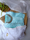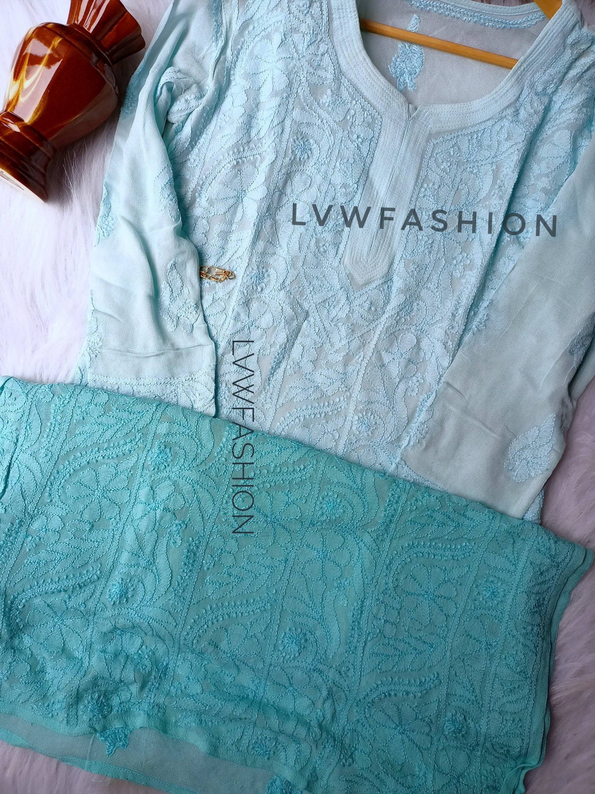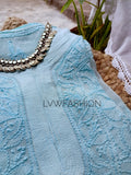 Trivia : Chikankari is an Art of delicate handwork of Lucknow. It is a handcrafted process where the wooden blocks are manually carved in various designs, and the natural stew for printing is prepared, and printed on the cloth. The chikankari craftsmen then use ten ary of the needlecraft embroidery, and perform the needlework artistically. There are 32 stitches of chikankari broadly classified into Raised stitch, Embossed and Flat