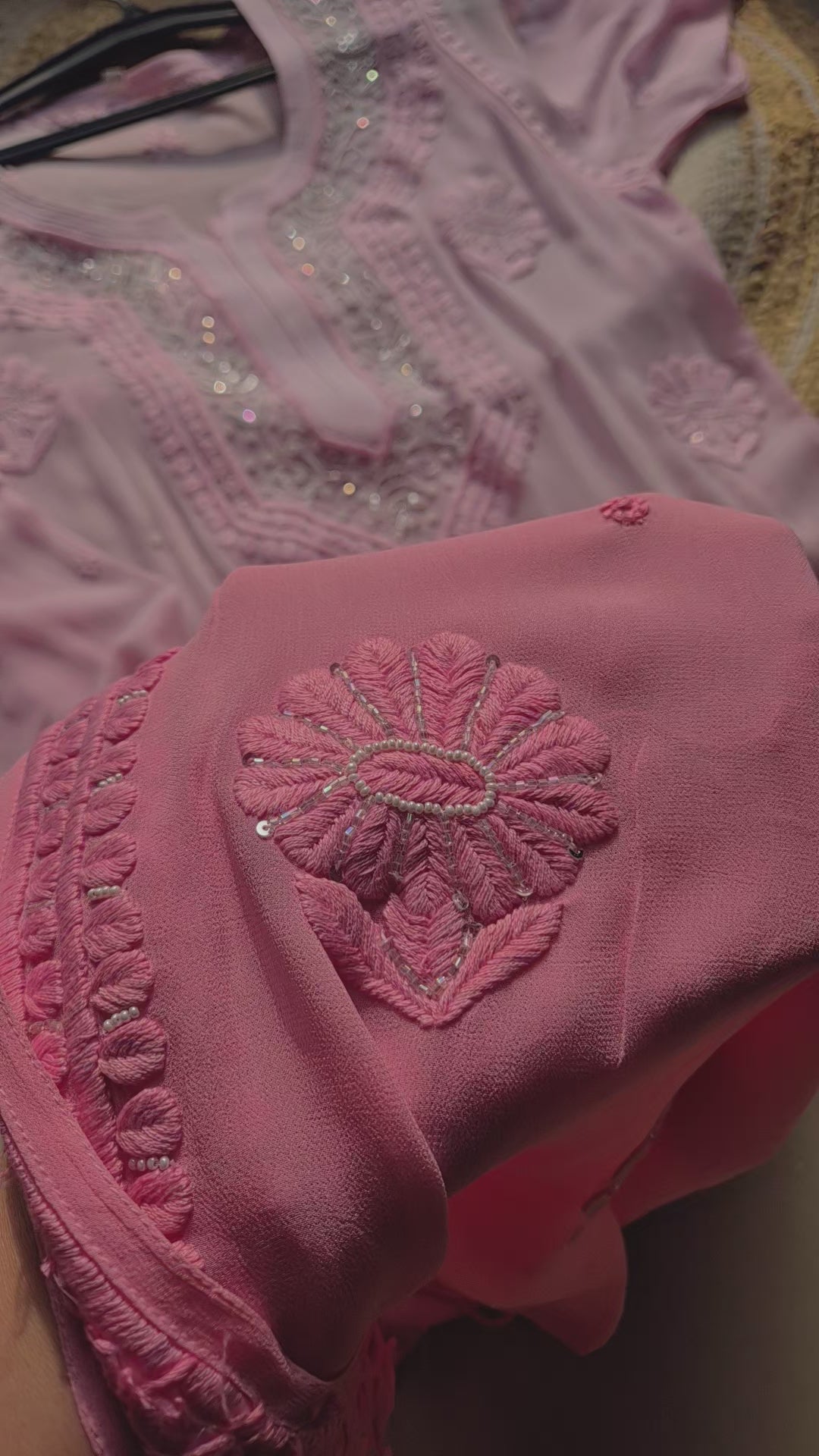 Pink Ombre Beautiful Noori Premium Georgette Chikankari Kurta Cutdana Embroidery