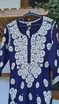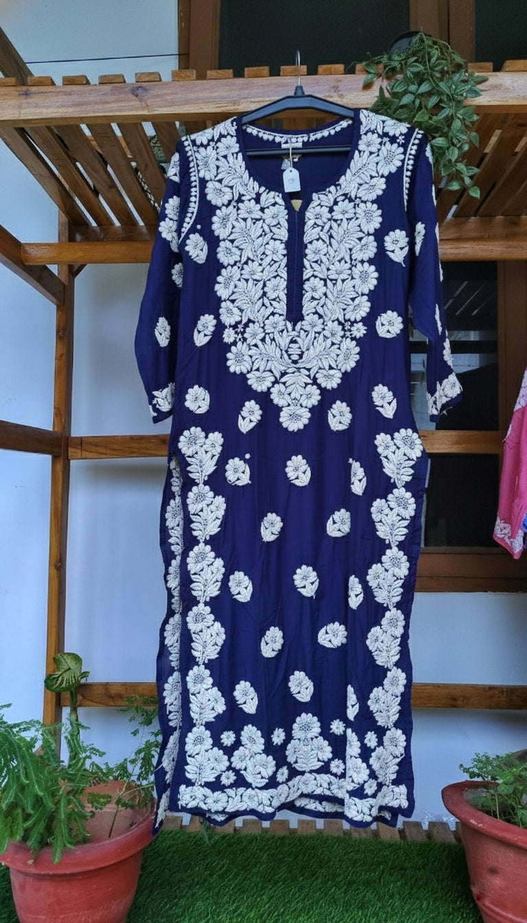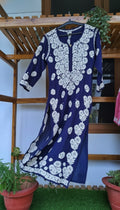 Navy Blue Pure Handcrafted Premium Silk Chikankari Luxurious Long Kurta