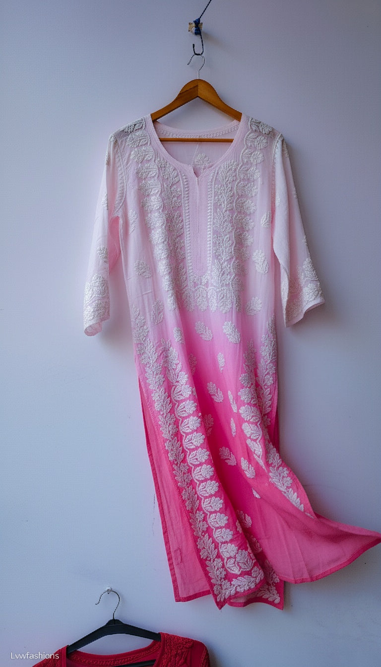Ombre love Shanaya Premium Georgette Chikankari Long Kurta Neck Daman Embroidery
