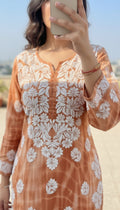 Powder Brown Pure Handcrafted Premium Silk Chikankari Luxurious Long Kurta