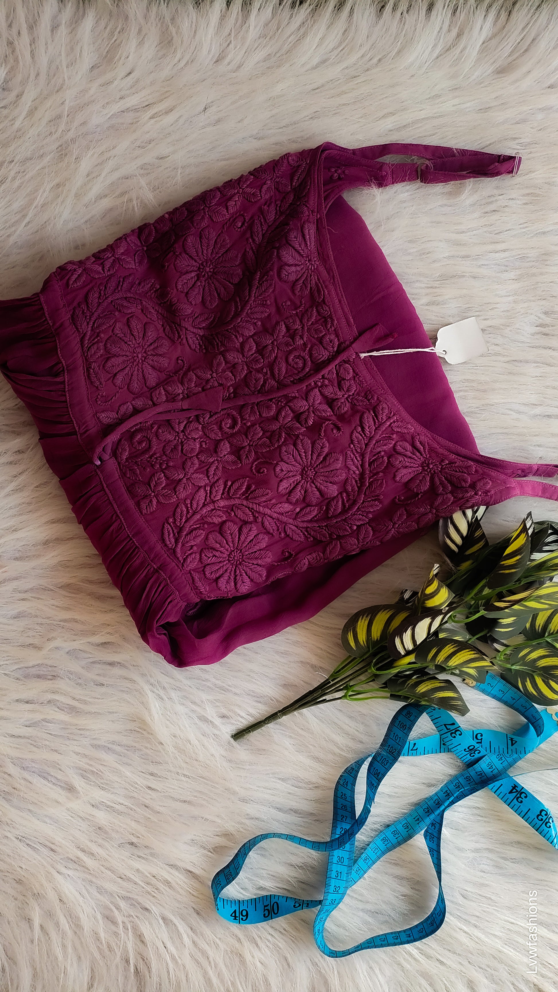 Dark scarlet Premium Georgette Chikankari Tulip Tunic