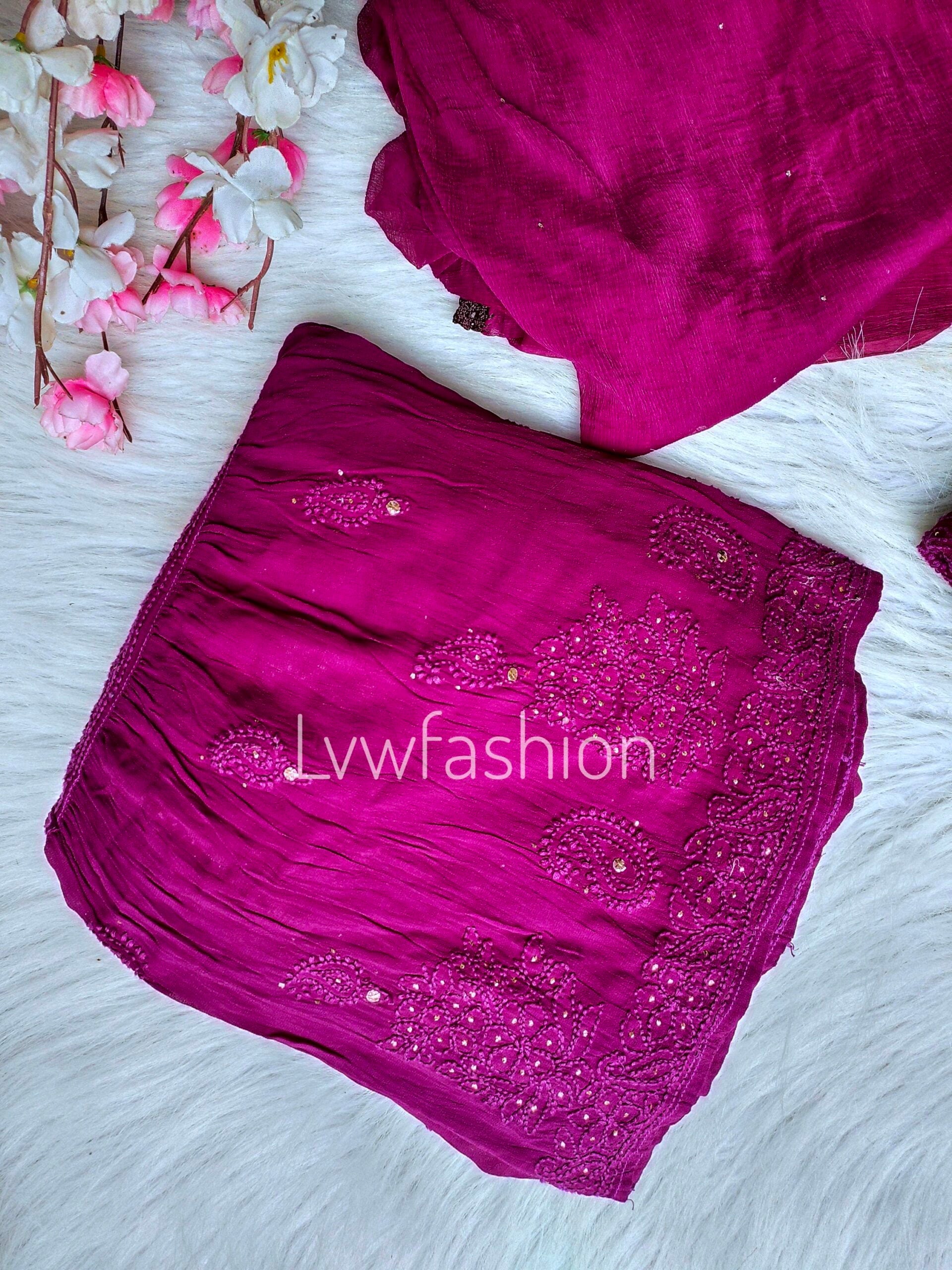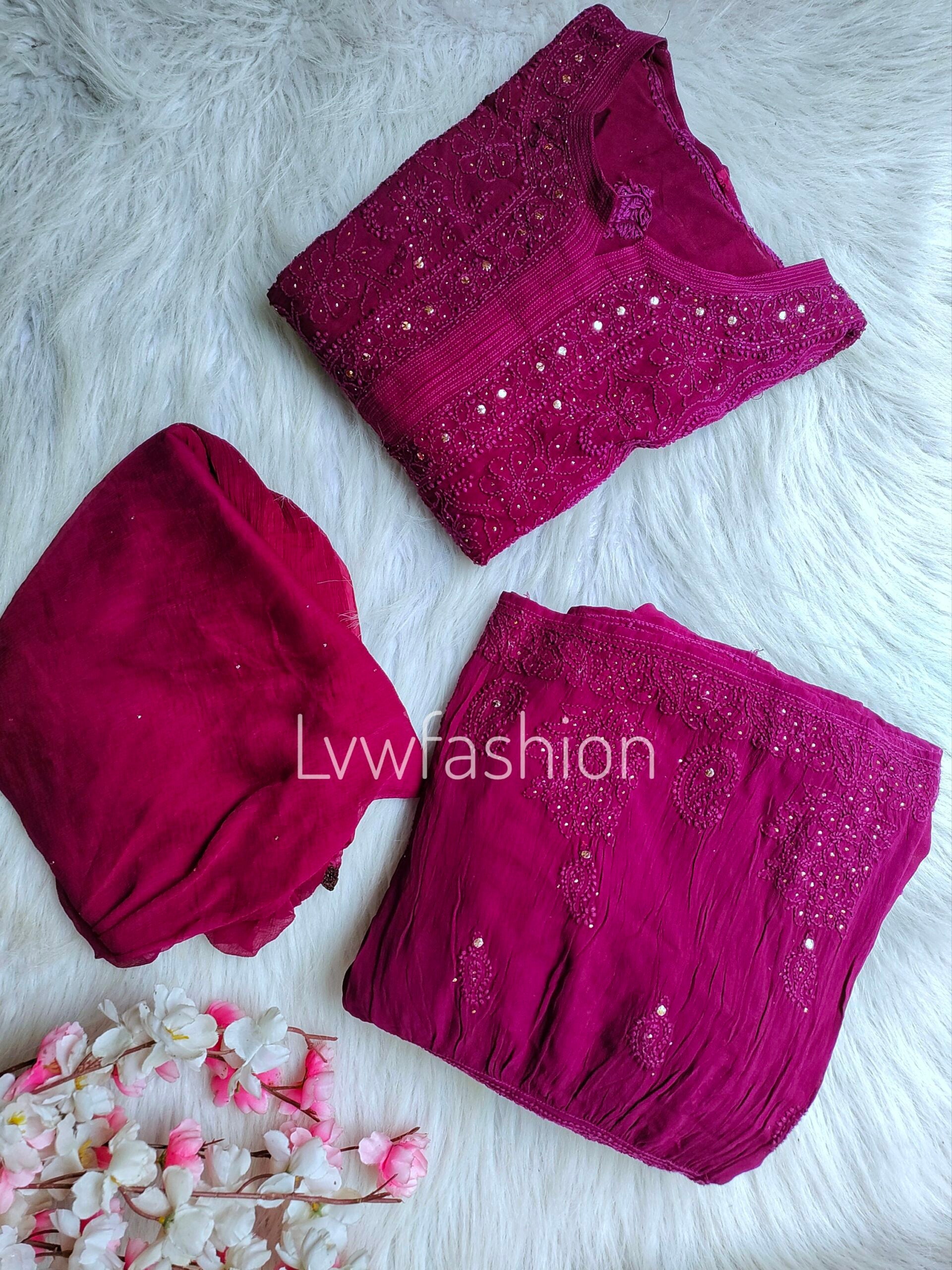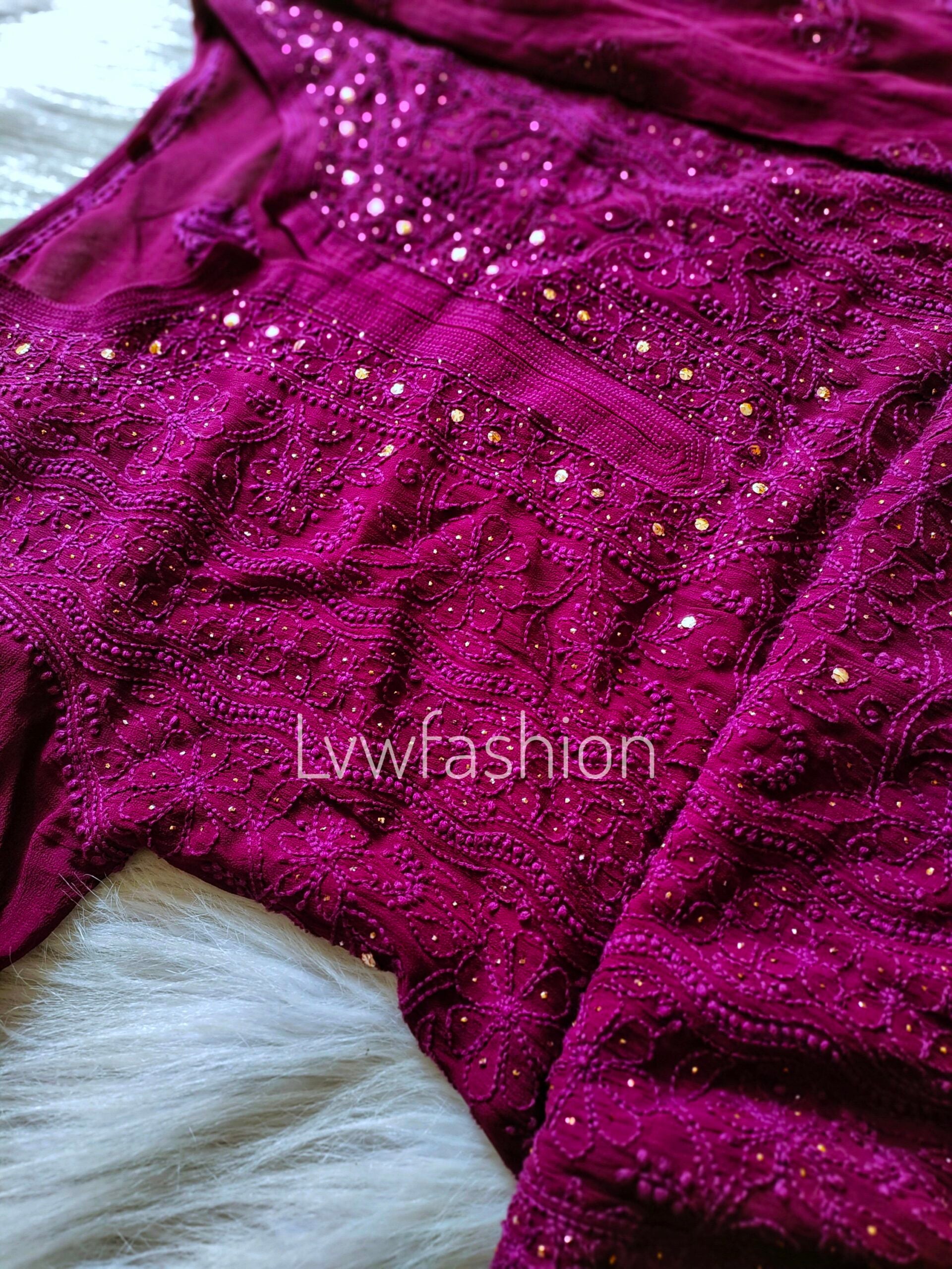 Dark scarlet Wine Premium Georgette Luxurious Gharara Set