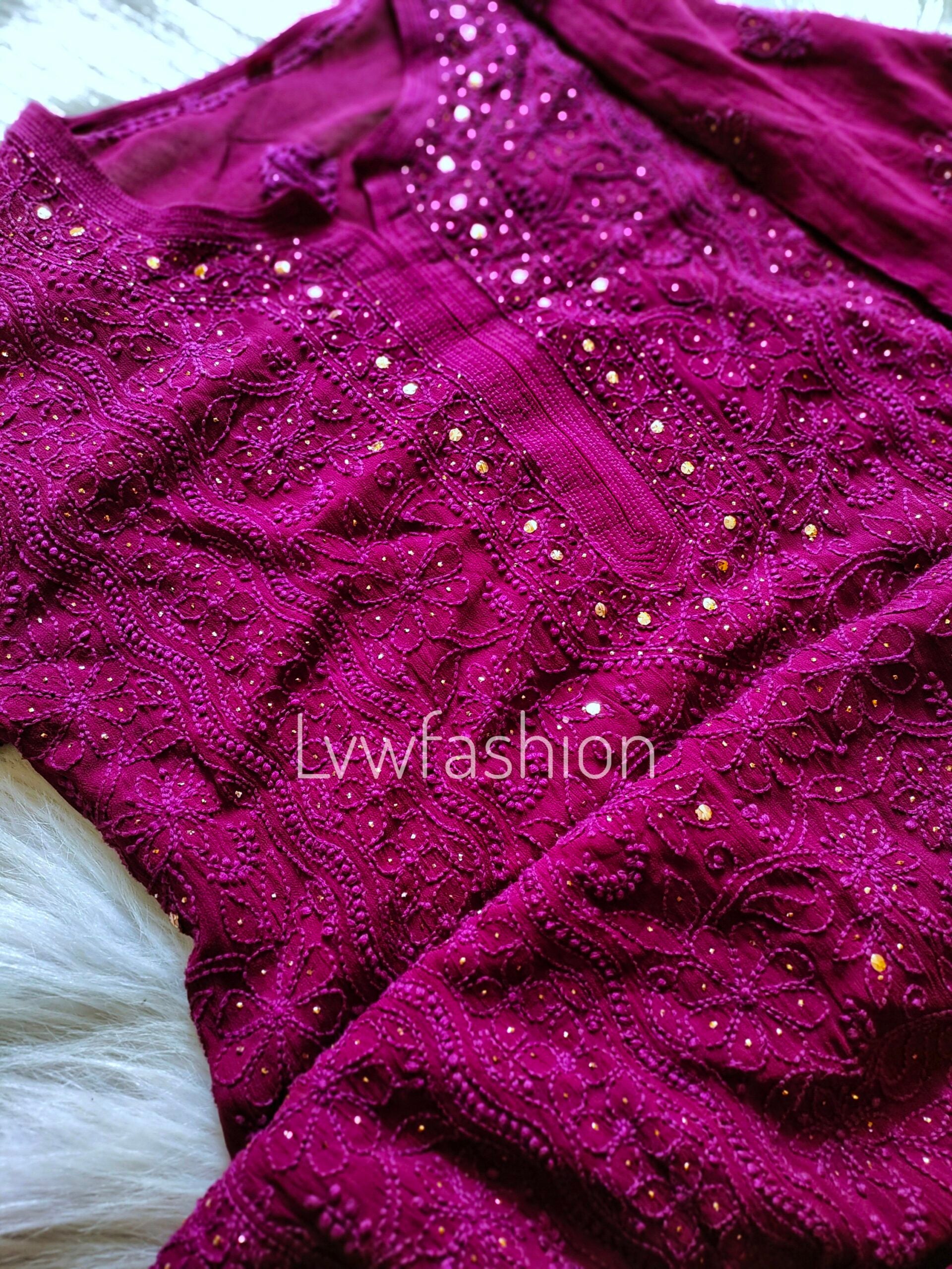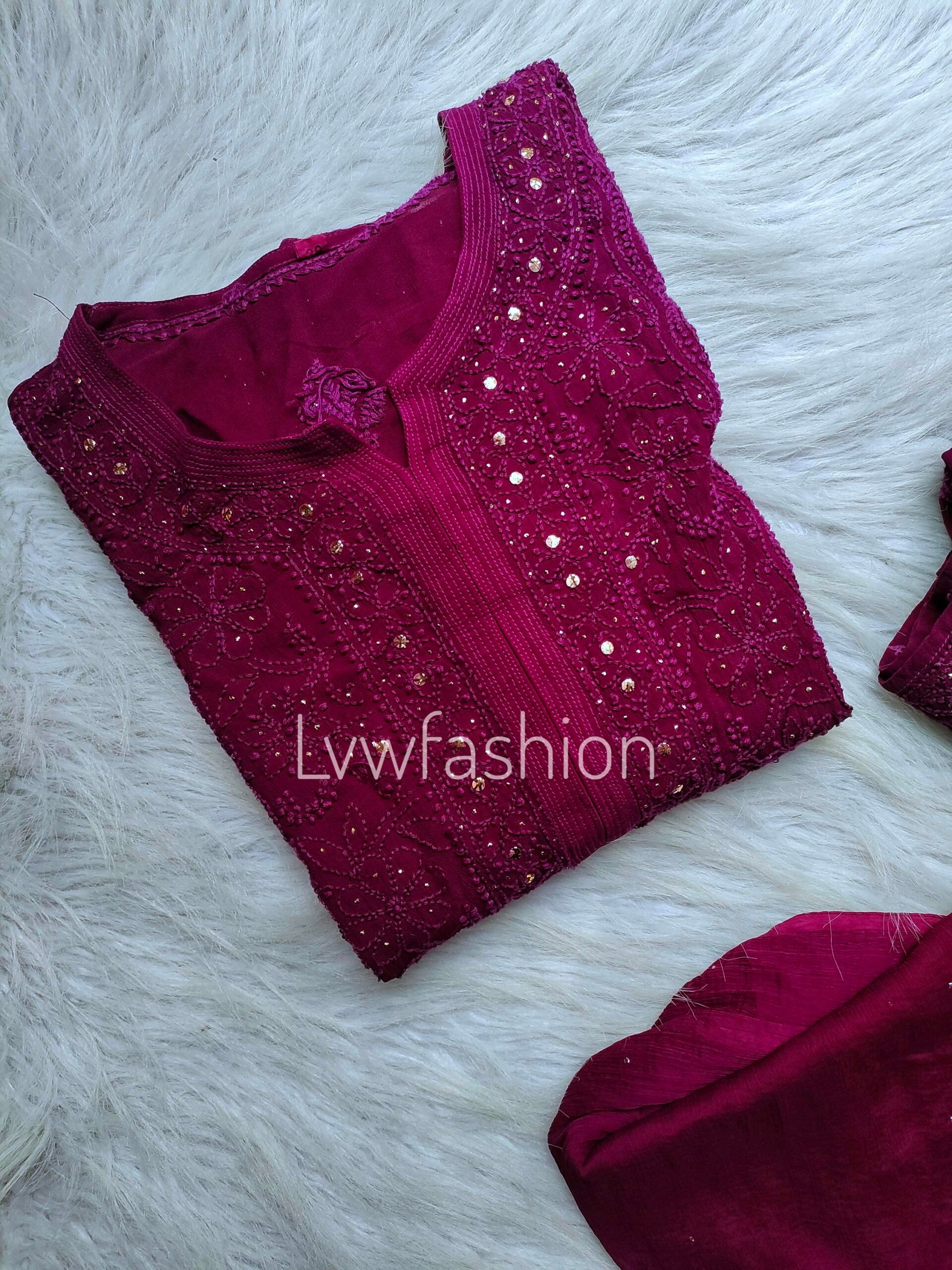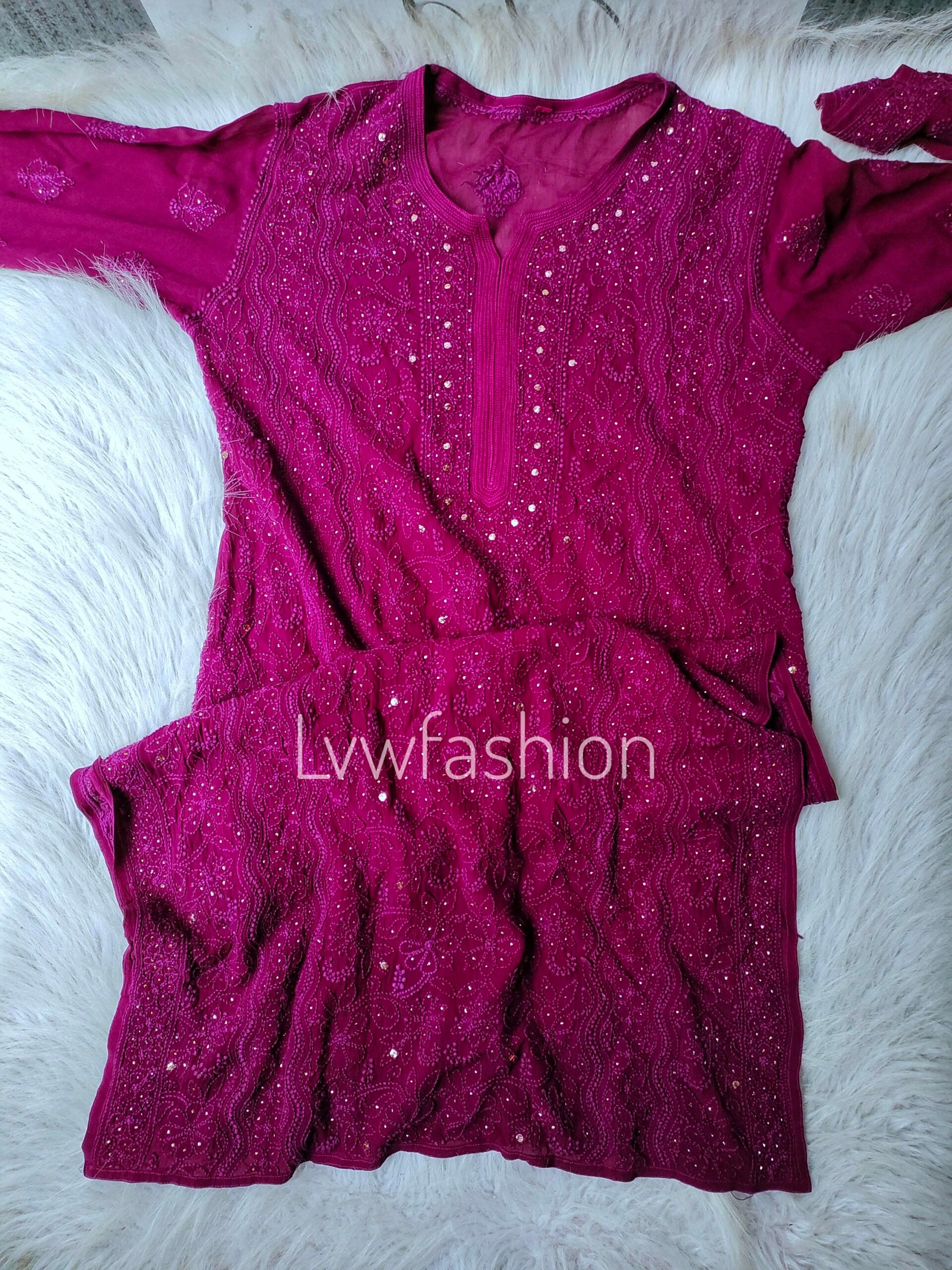 Dark scarlet Wine Premium Georgette Luxurious Gharara Set
