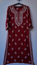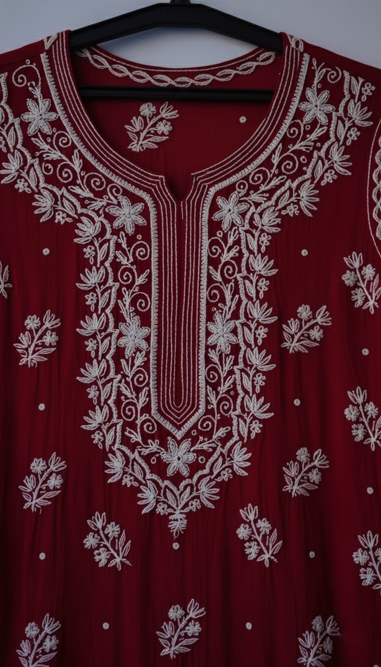 Deep Maroon Beautiful Noori Premium Georgette Chikankari Kurta Cutdana Embroidery