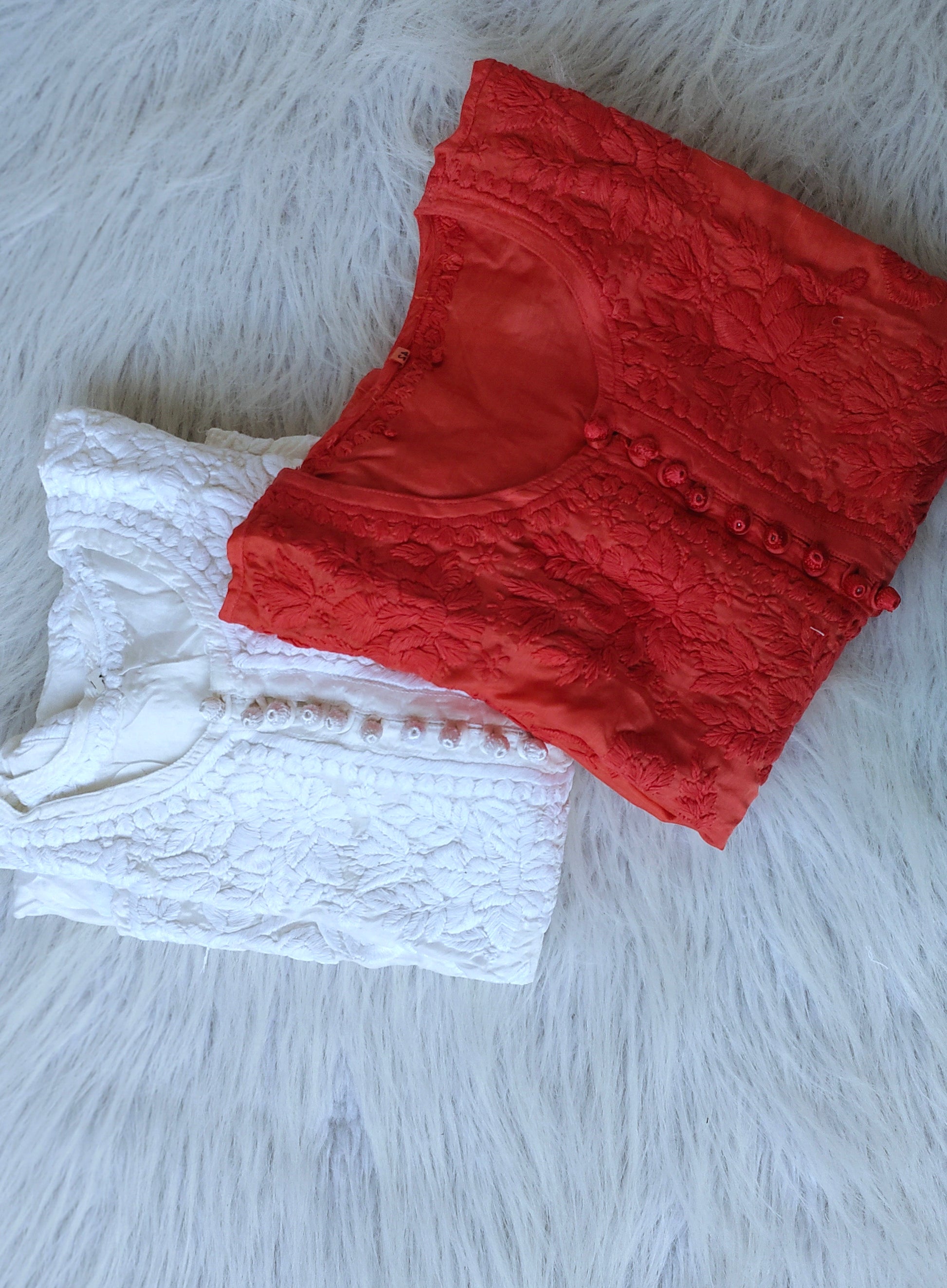 Dove Slik Premium Muslin Soft Chikankari Kurtas