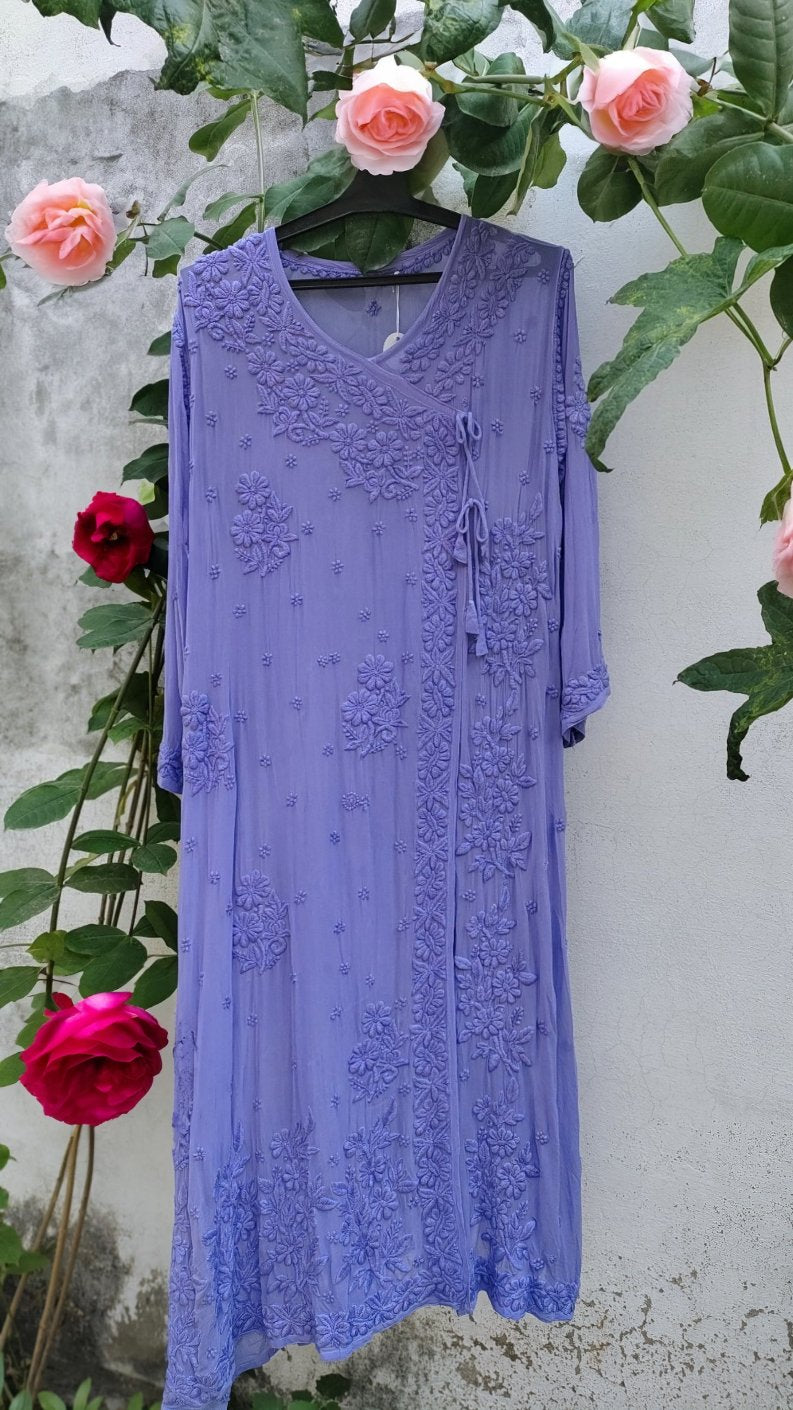 Duaa Lavender Love Luxurious Look Chikankari Angrakha