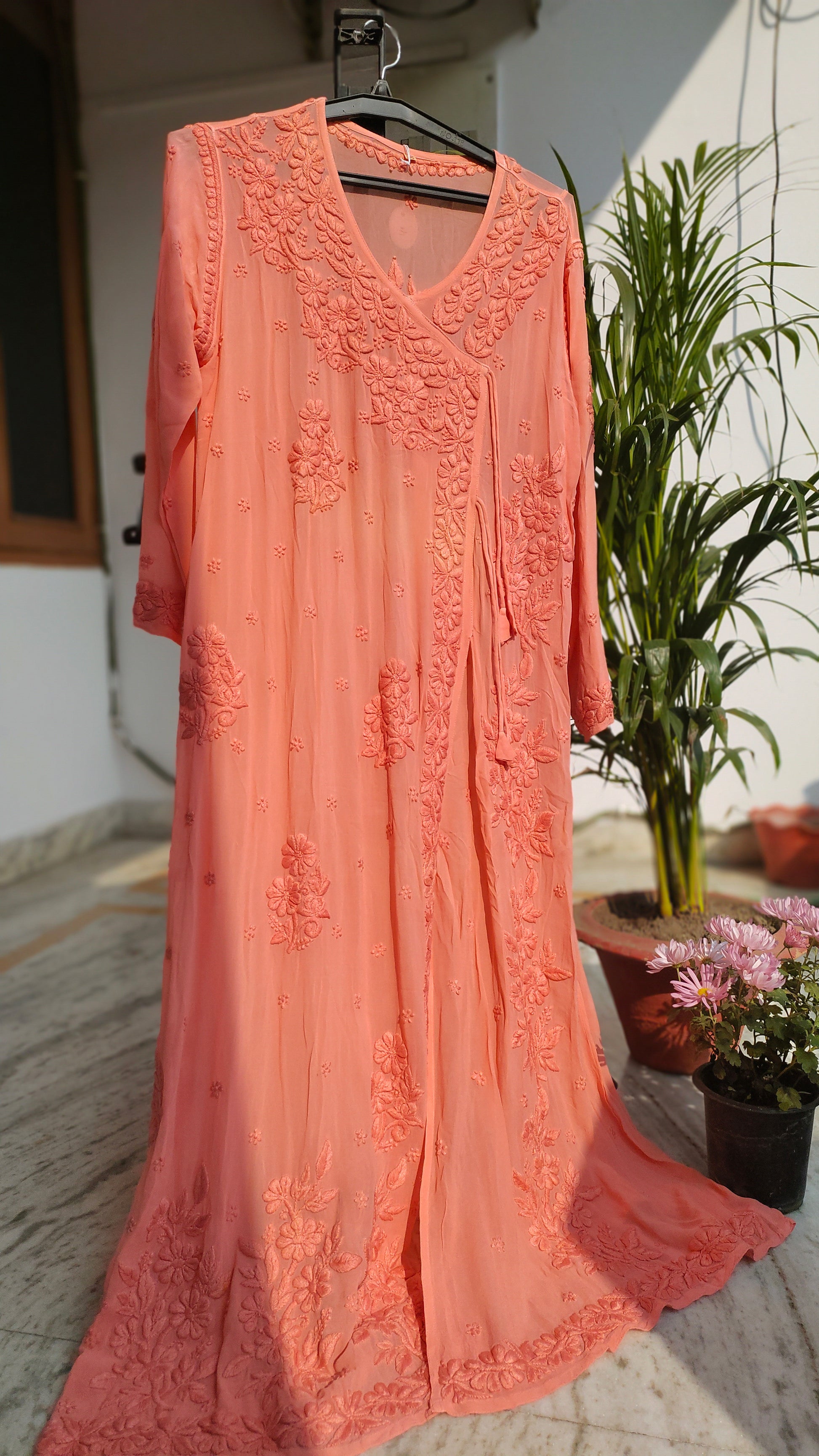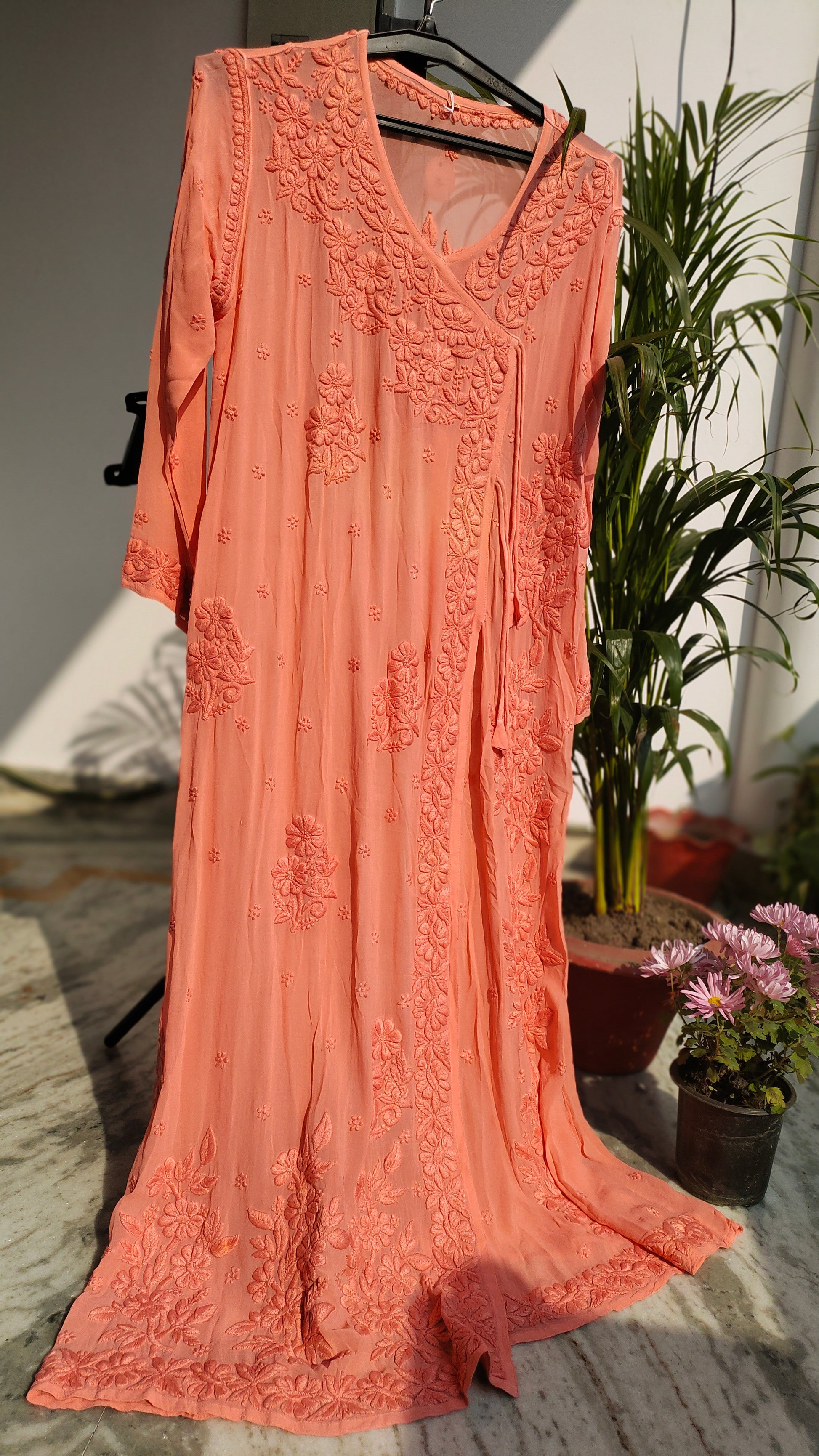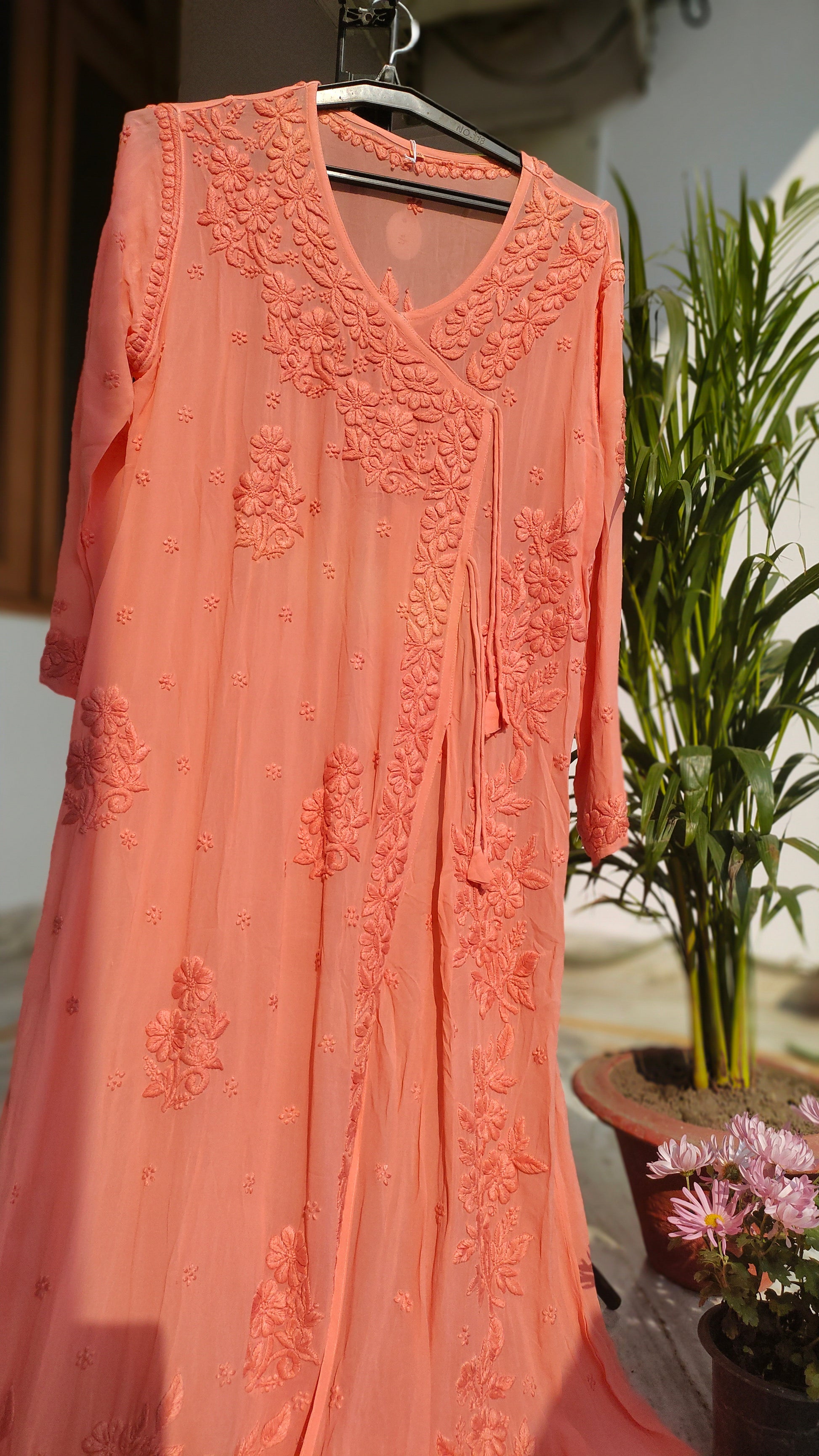 Duaa Peach Love Premium Georgette Luxurious Look Angrakha