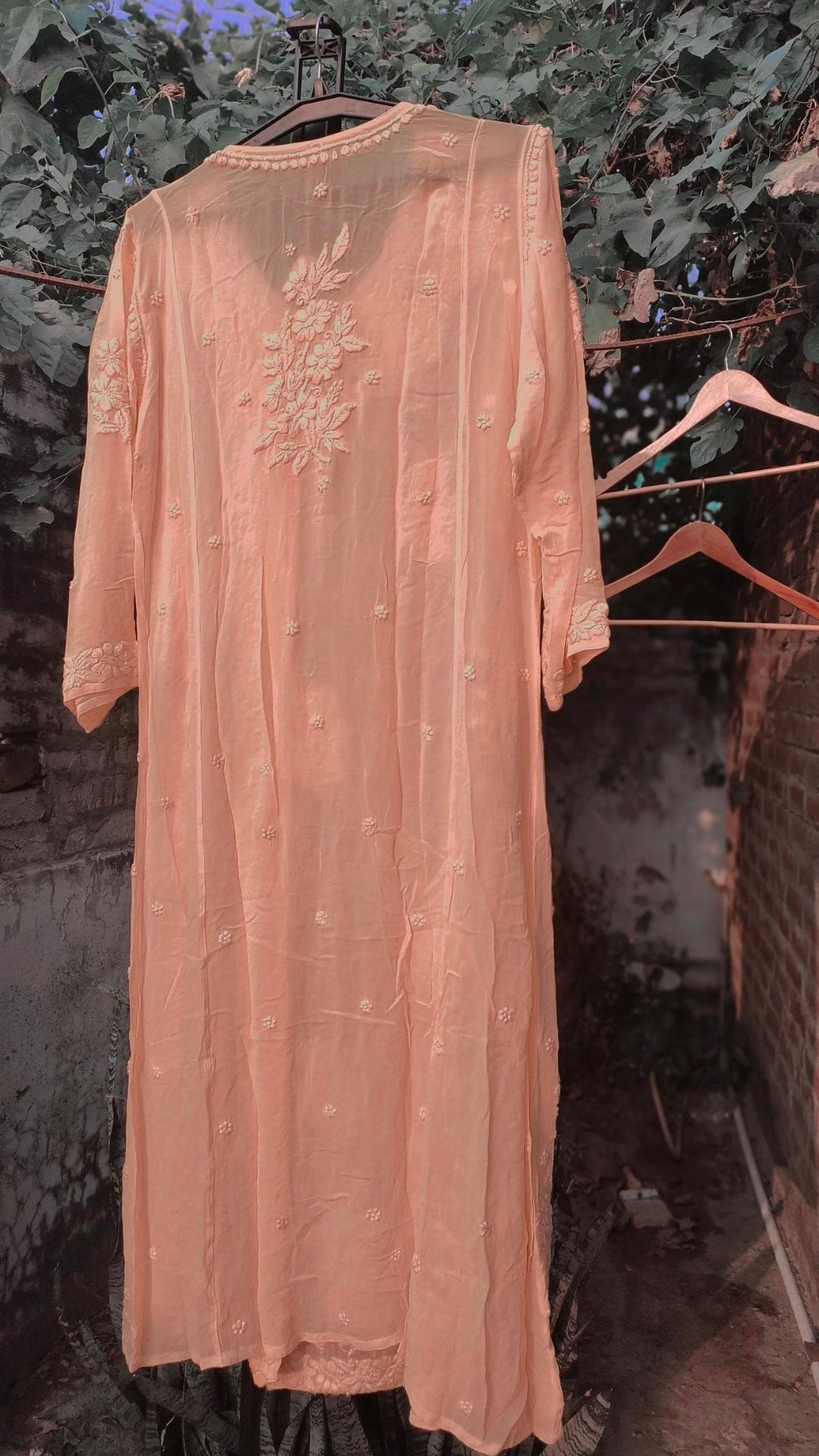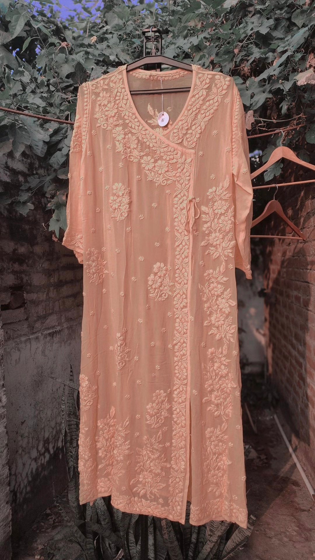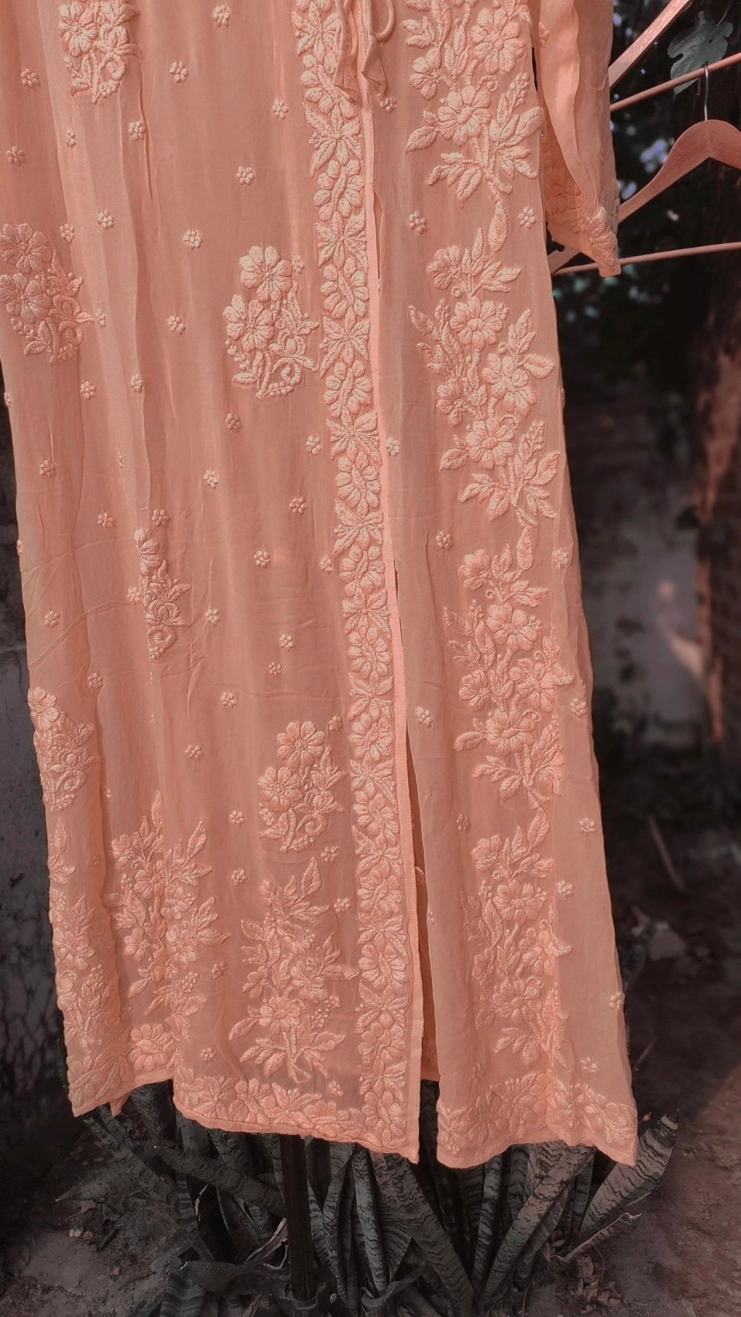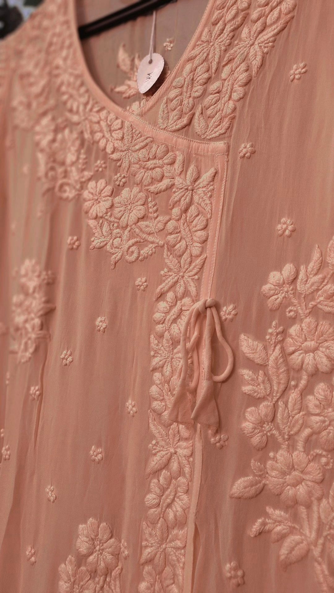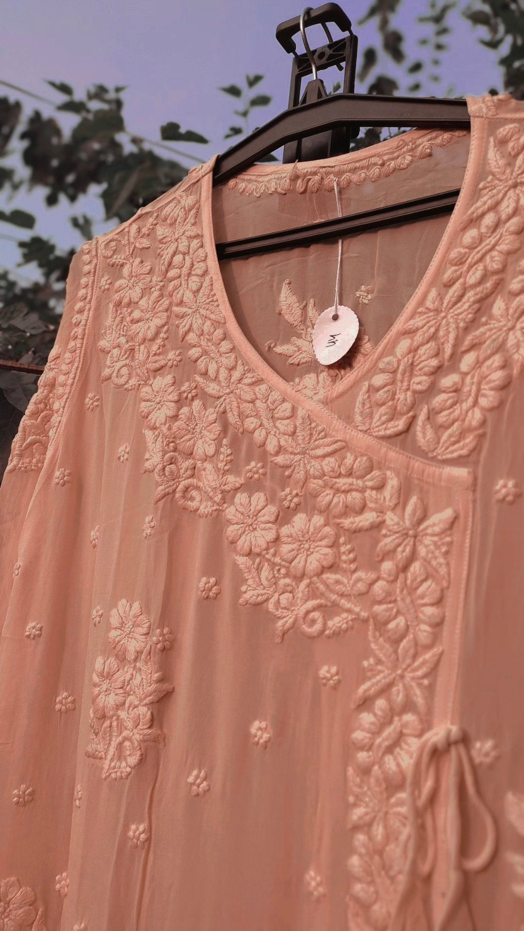 Duaa Powder Peach Premium Georgette Chikankari Angrakha