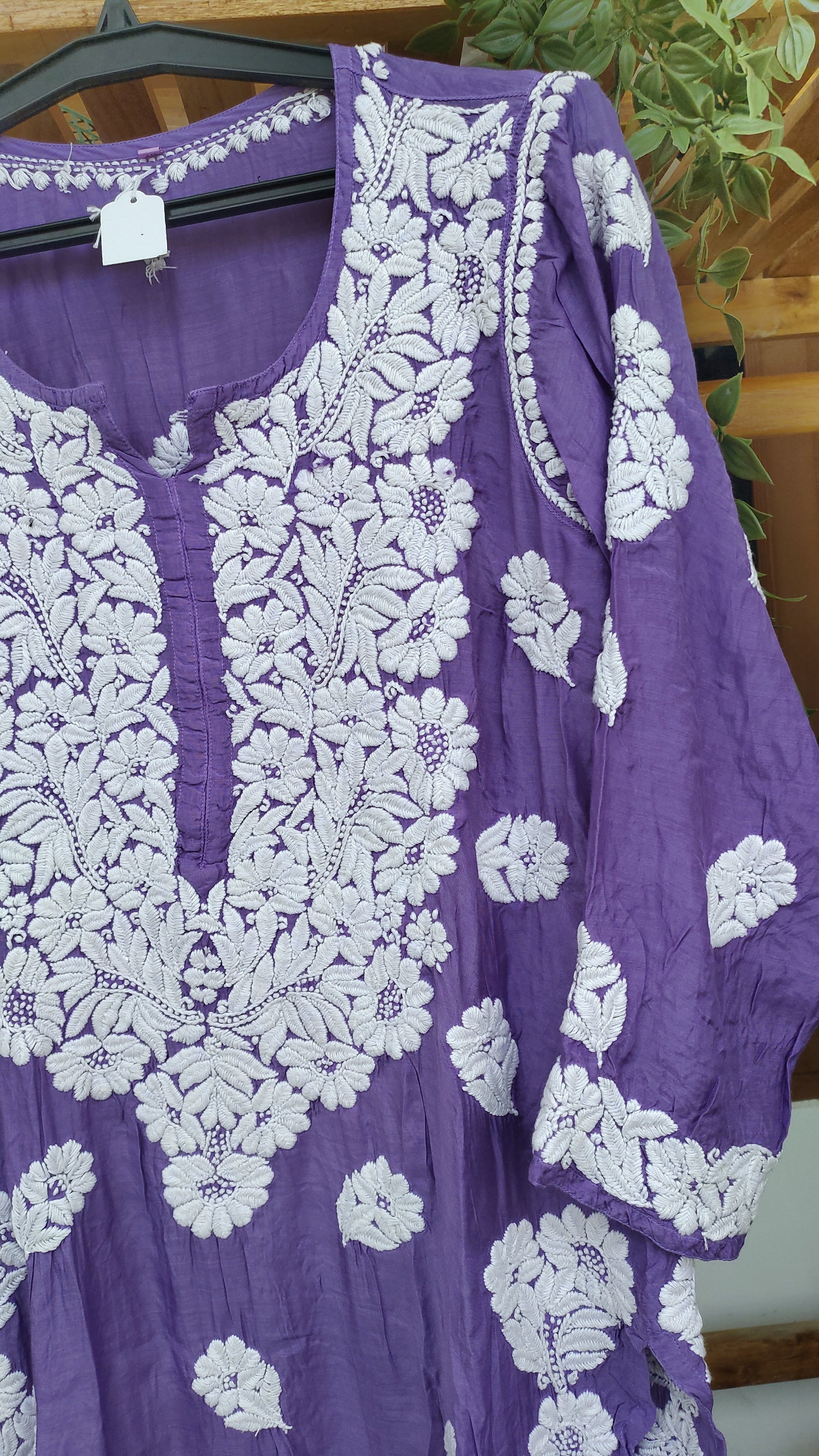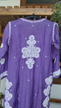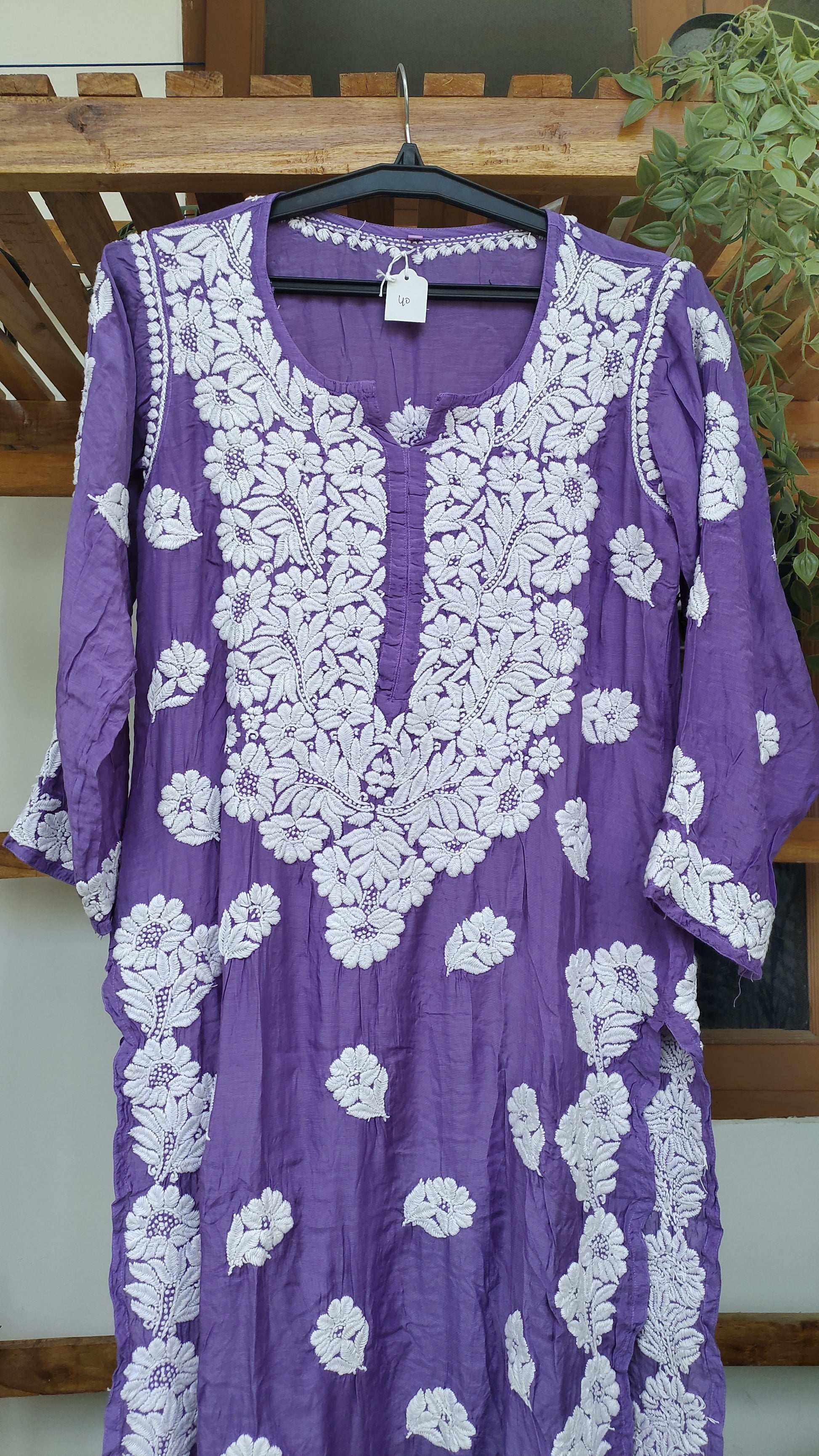 Farah Deep purple Premium Silk Luxurious Look Chikankari Long Kurta (Unique Back Embroidery)