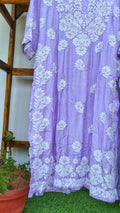 Farah Purple Premium Silk Luxurious Look Chikankari Long Kurta (Unique Back Embroidery)