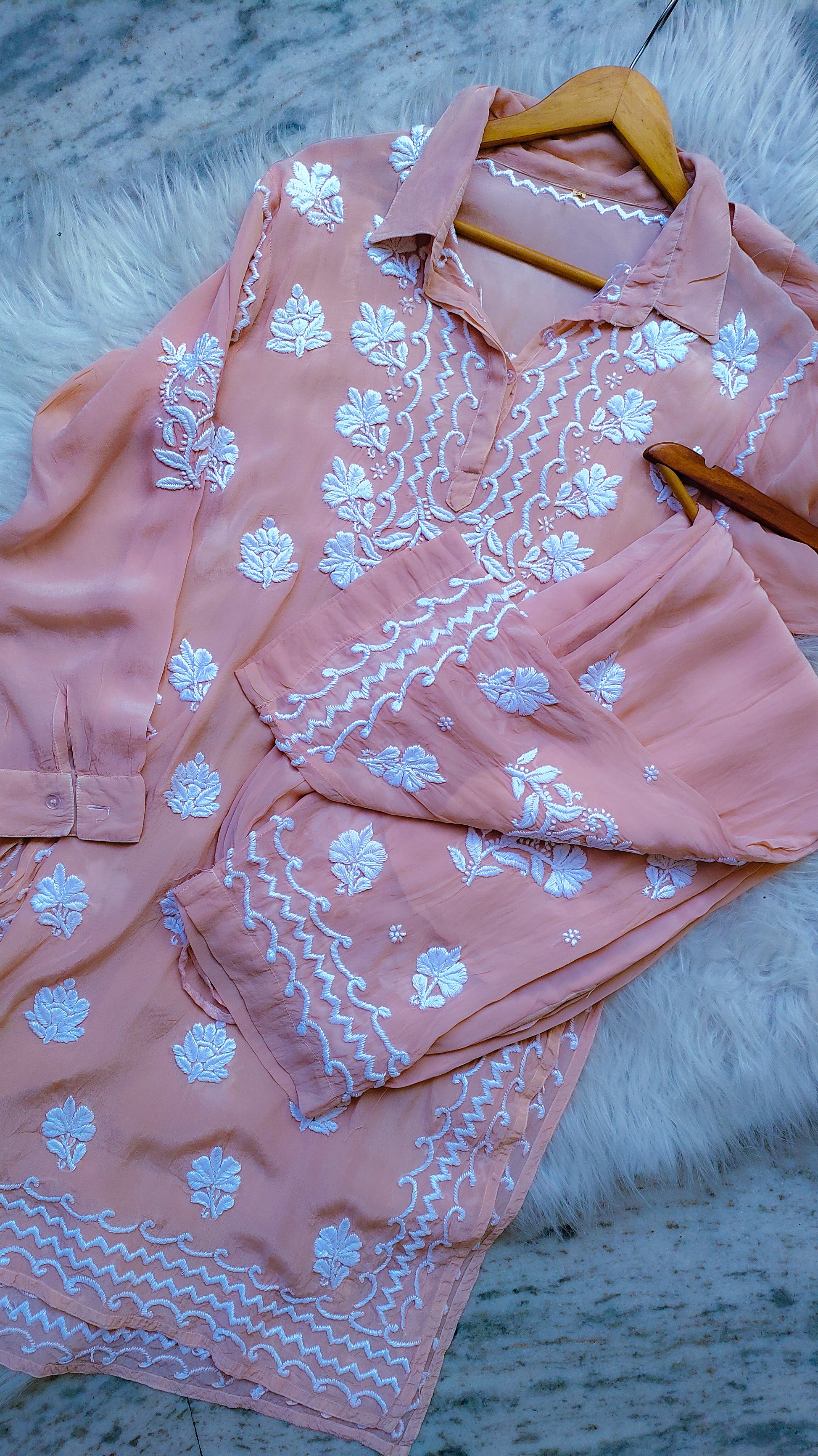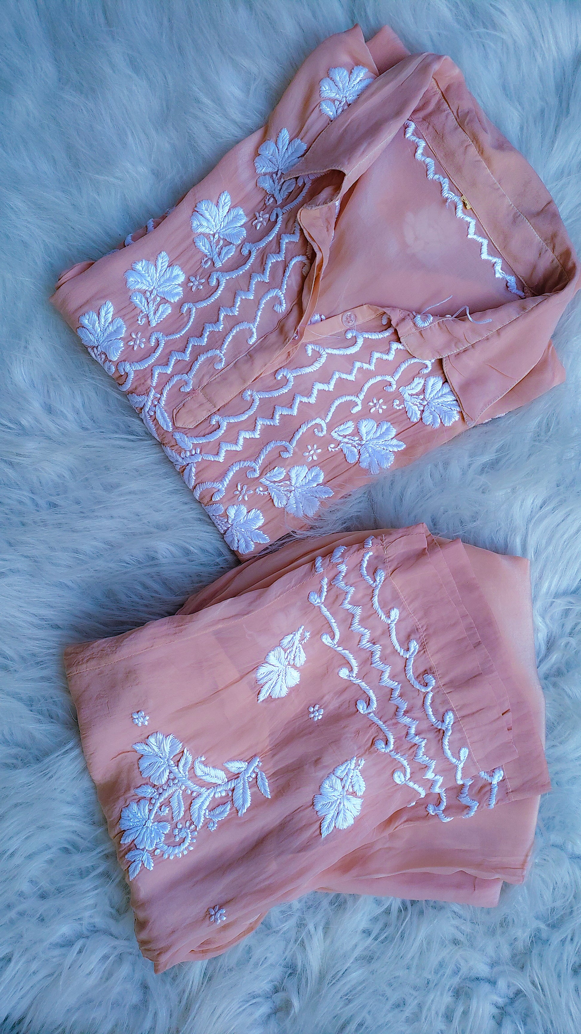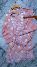 Upgrade your wardrobe with our Afgani Tulip Premium Silk Chikankari Co-Ord Set. This beautiful kurta set for women is skillfully handcrafted with intricate Chikankari embroidery, giving it a premium and elegant look. Made from high-quality fabric, it ensures comfort and style. Enjoy COD and free shipping in India, and worldwide shipping options available.