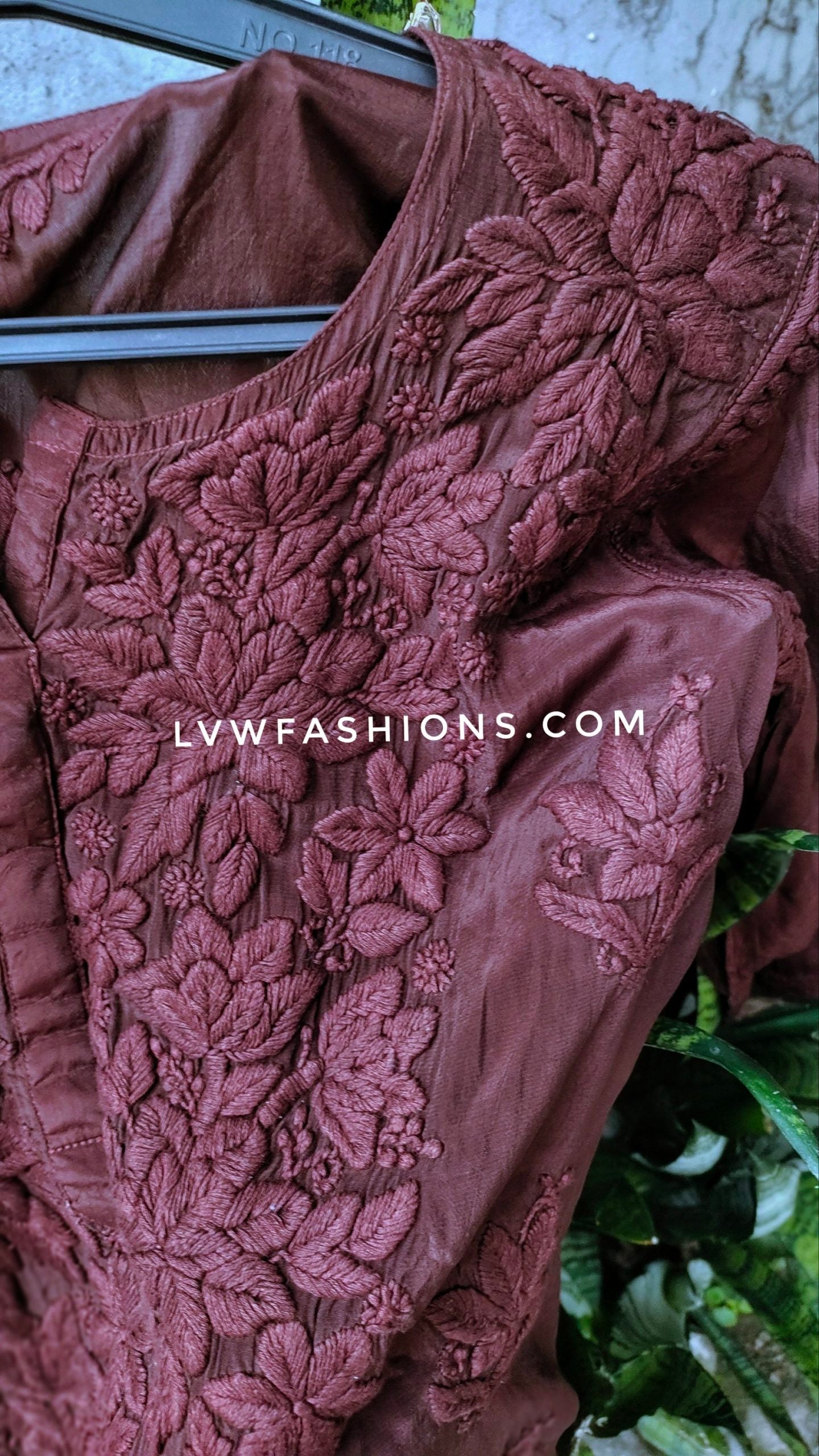 Farish Premium Silk Chikankari Luxurious Look Long Kurta Beautiful Shadey