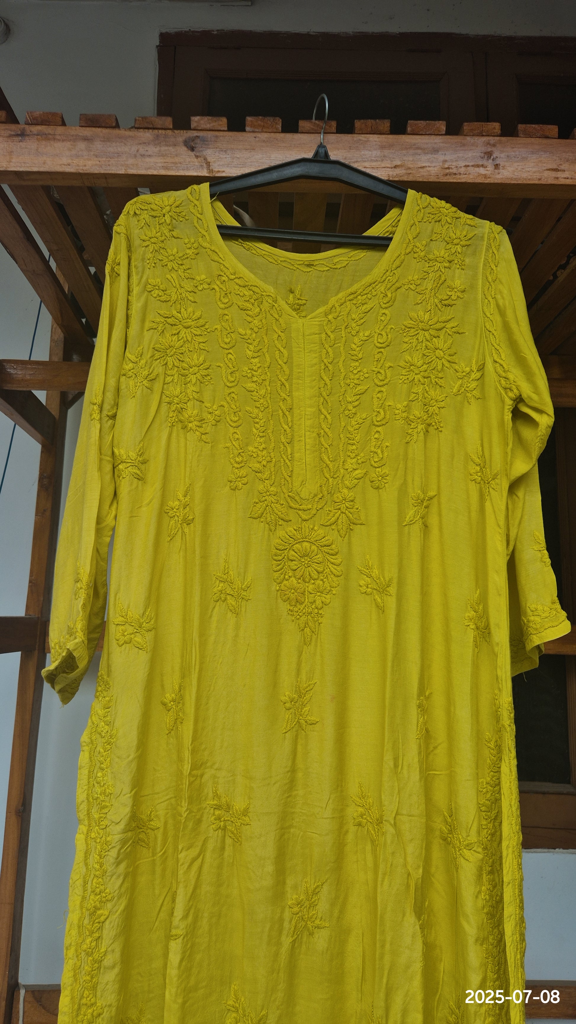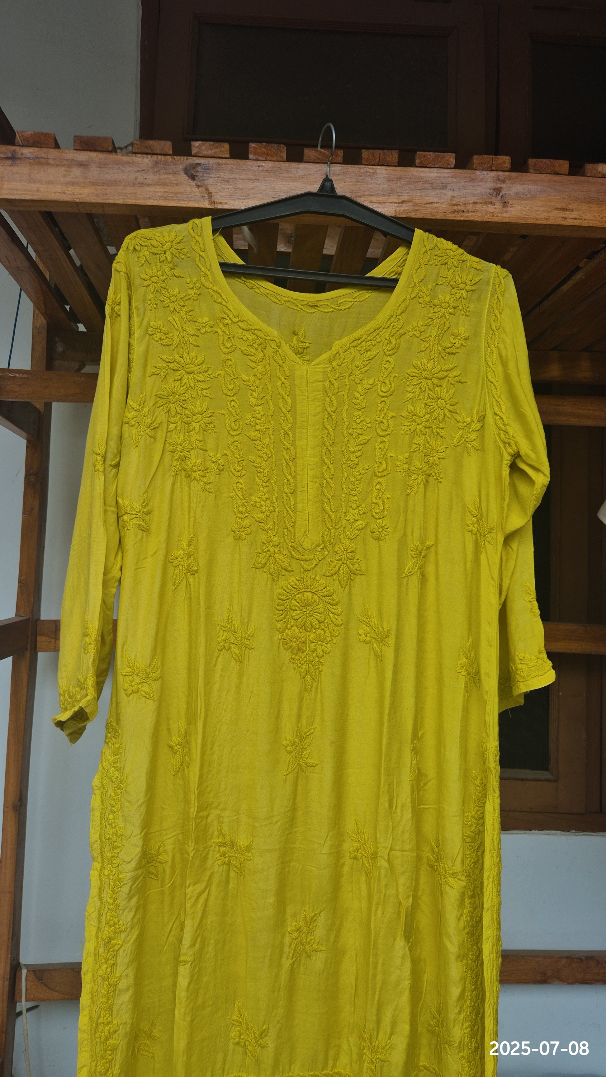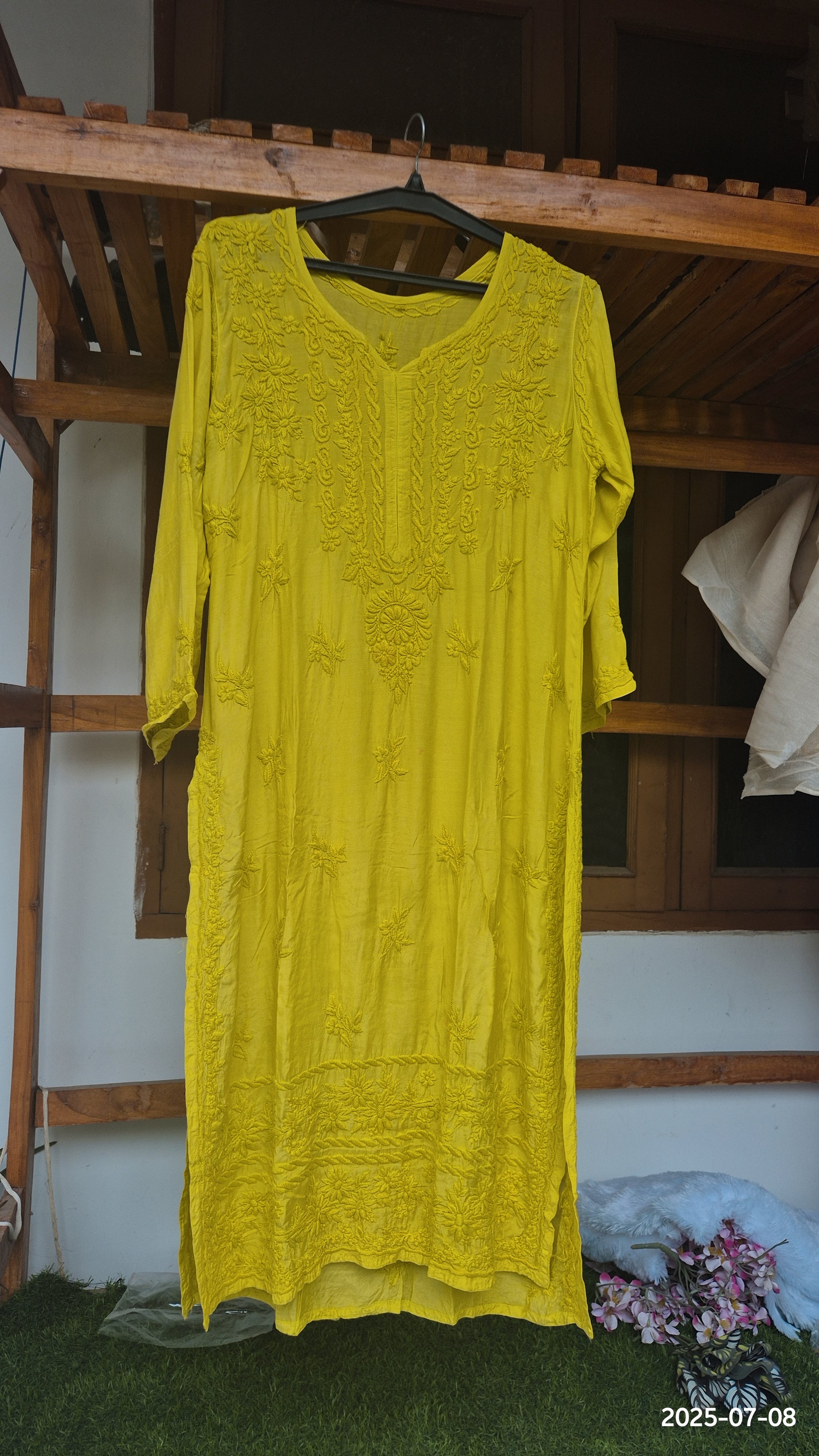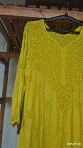 Green Premium Cotton Silk Chikankari Luxurious Long Kurti For women