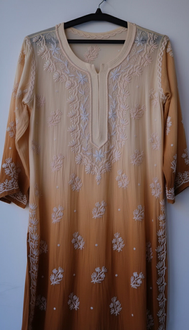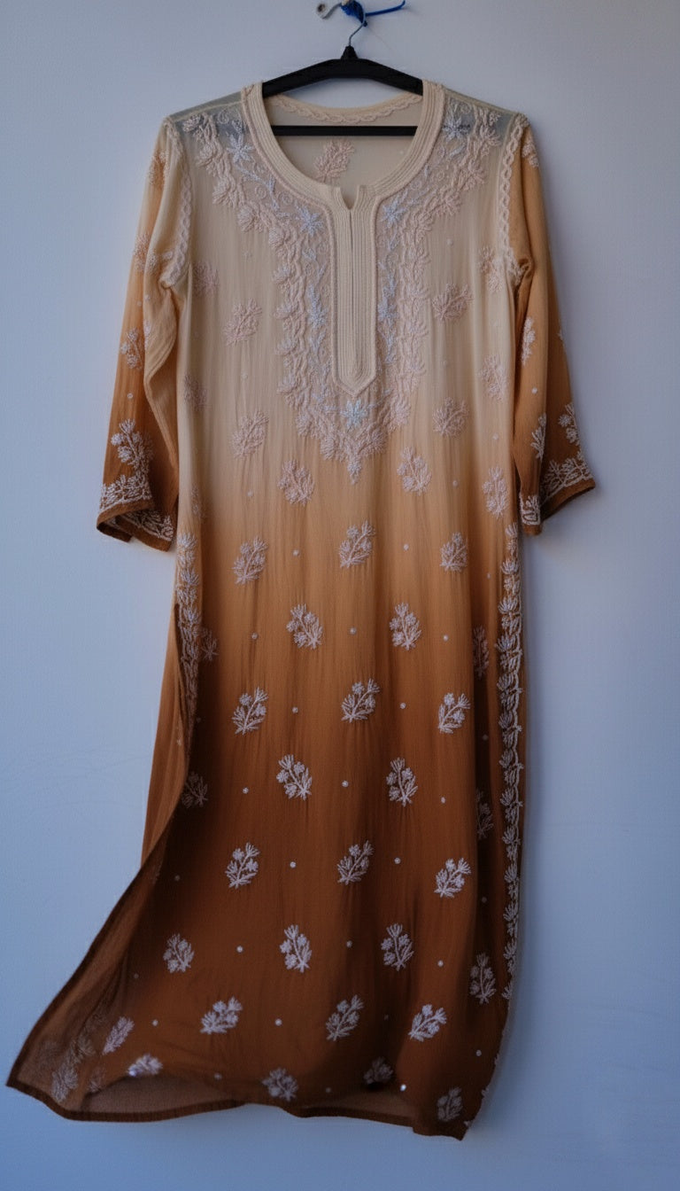 Hershey's kiss Ombre Beautiful Noori Premium Georgette Chikankari Kurta Cutdana Embroidery