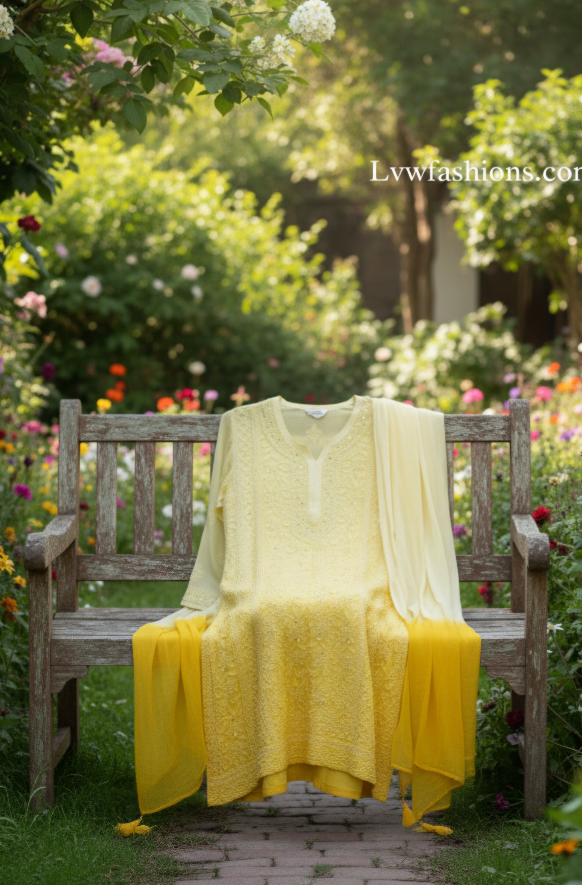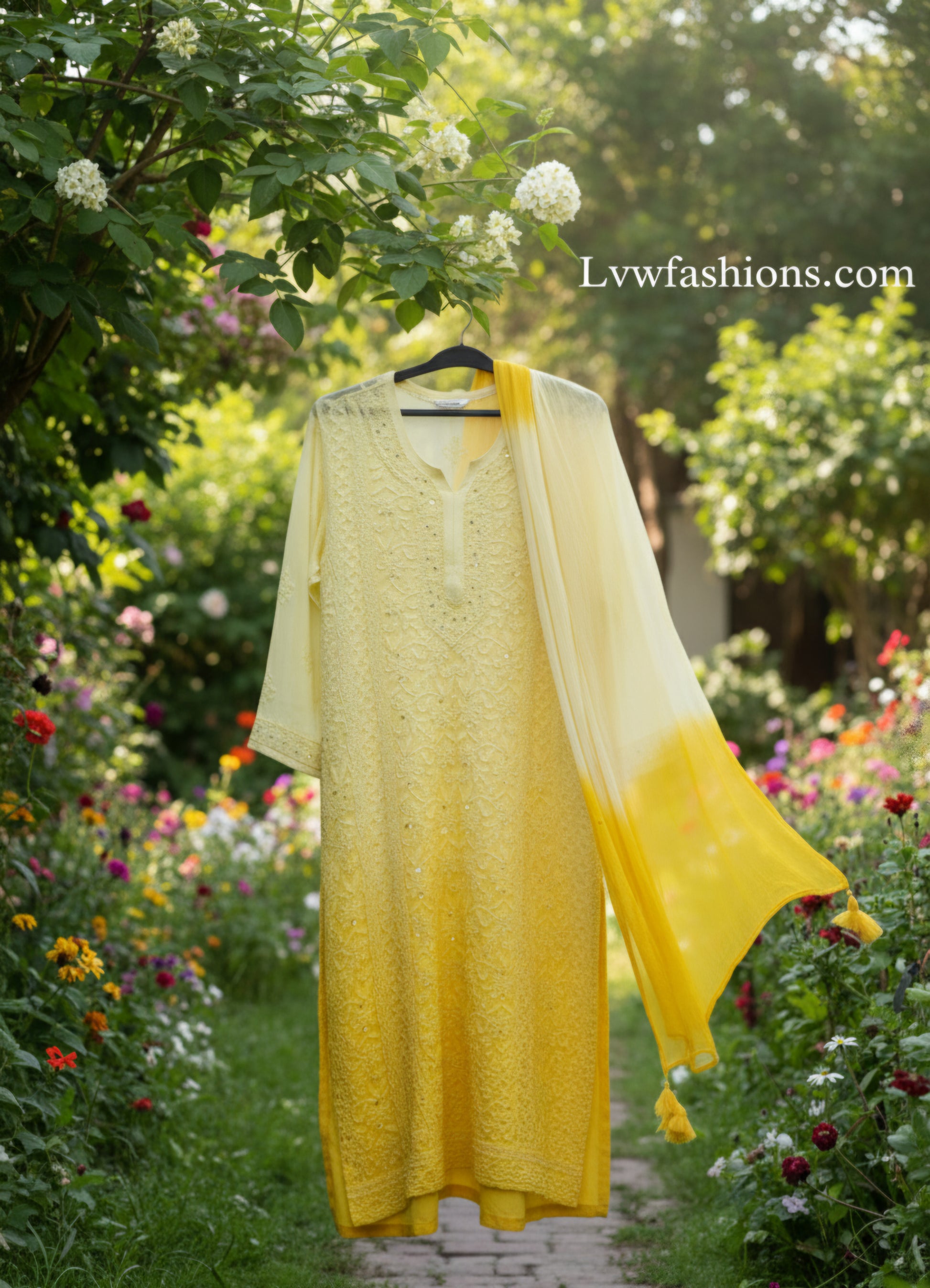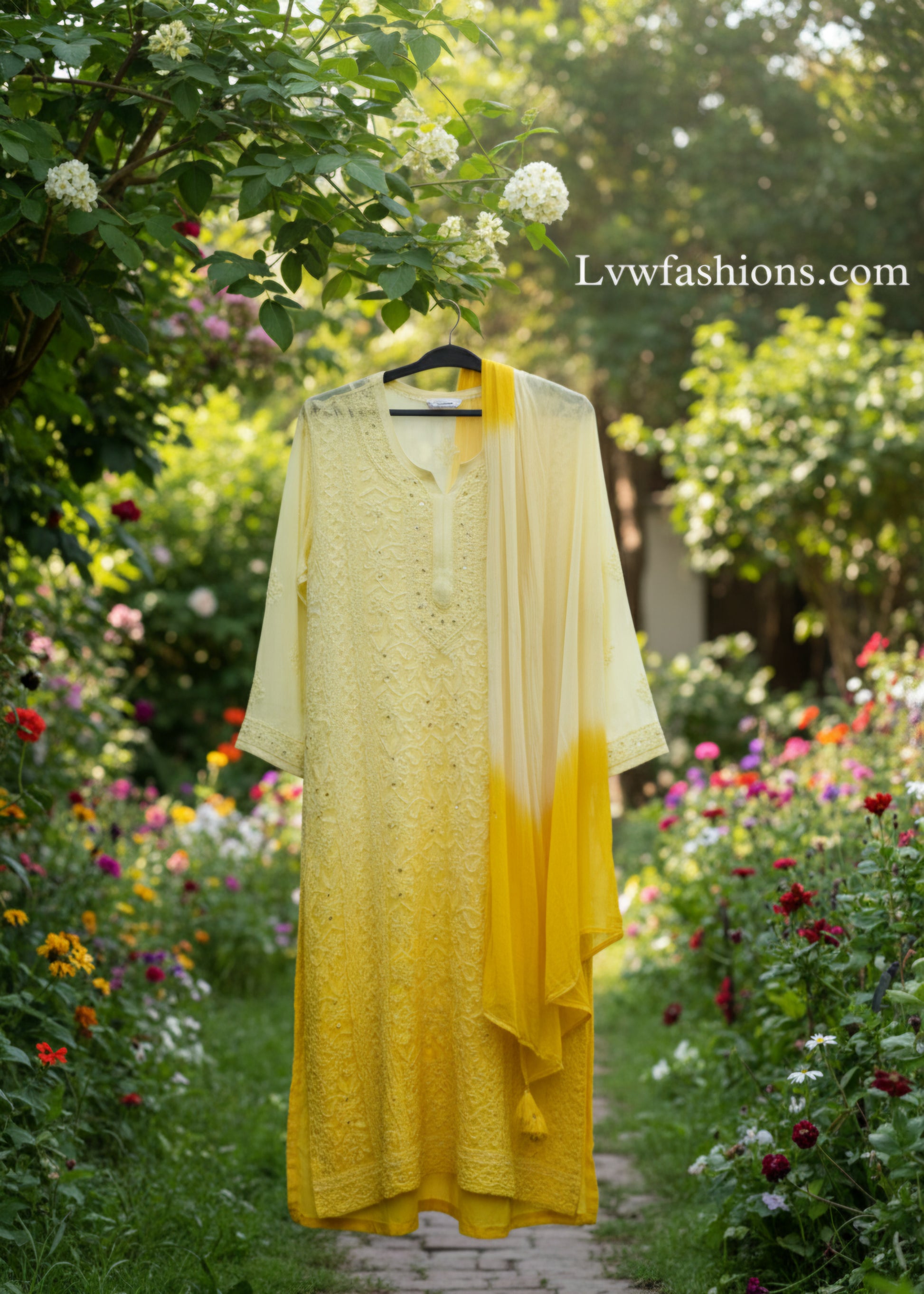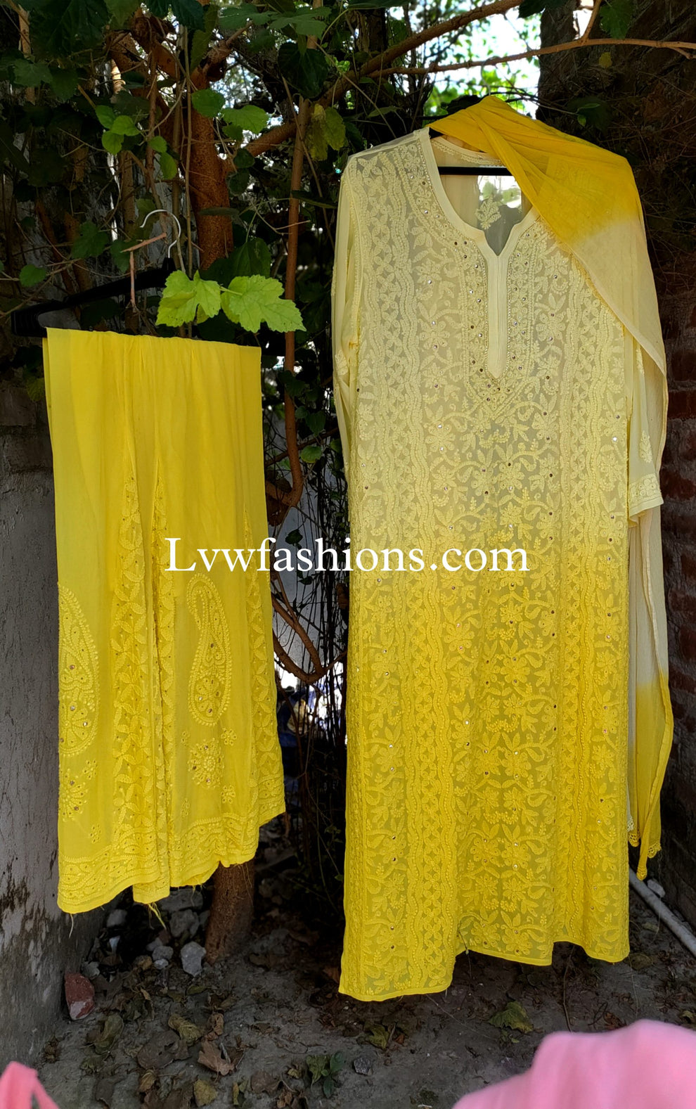 Hoor Ombre Premium Georgette Chikankari Luxurious Set With Kamdani Add on
