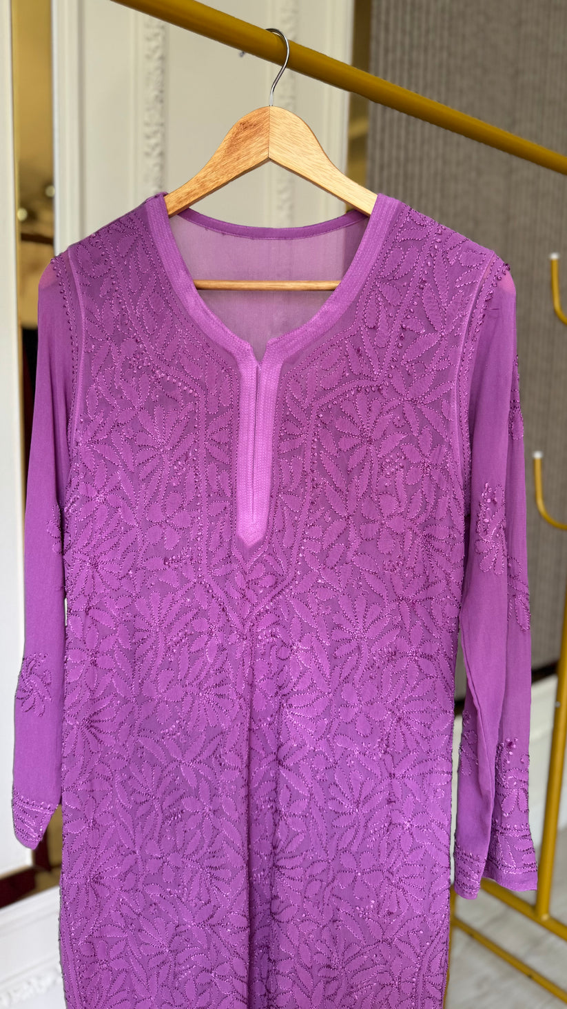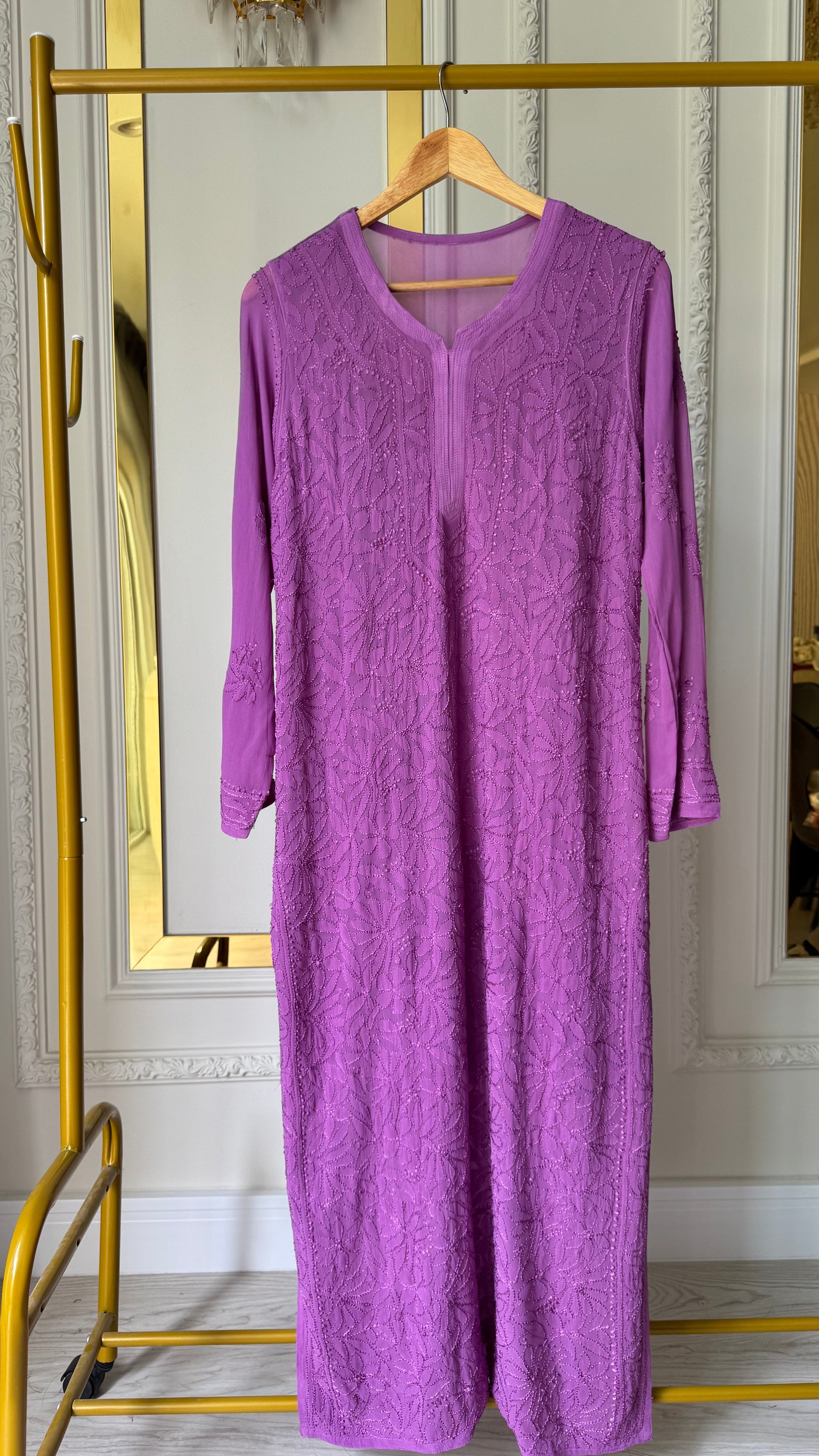 Hoor Premium Georgette Chikankari Luxurious Long Kurta