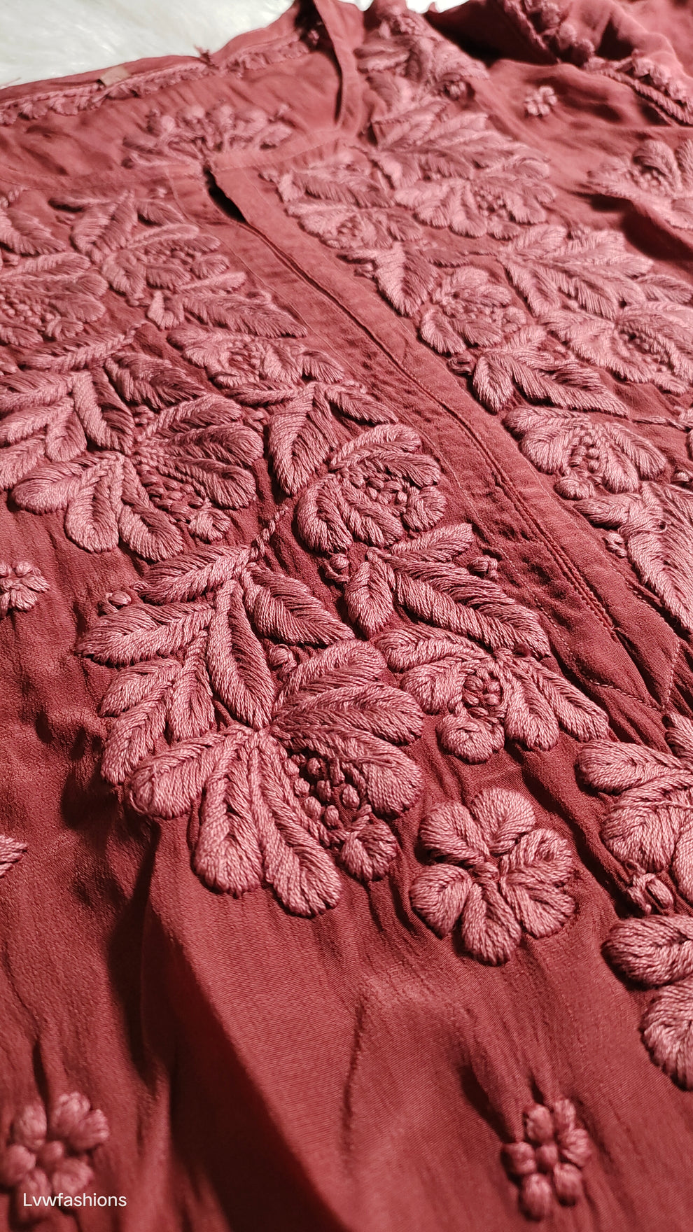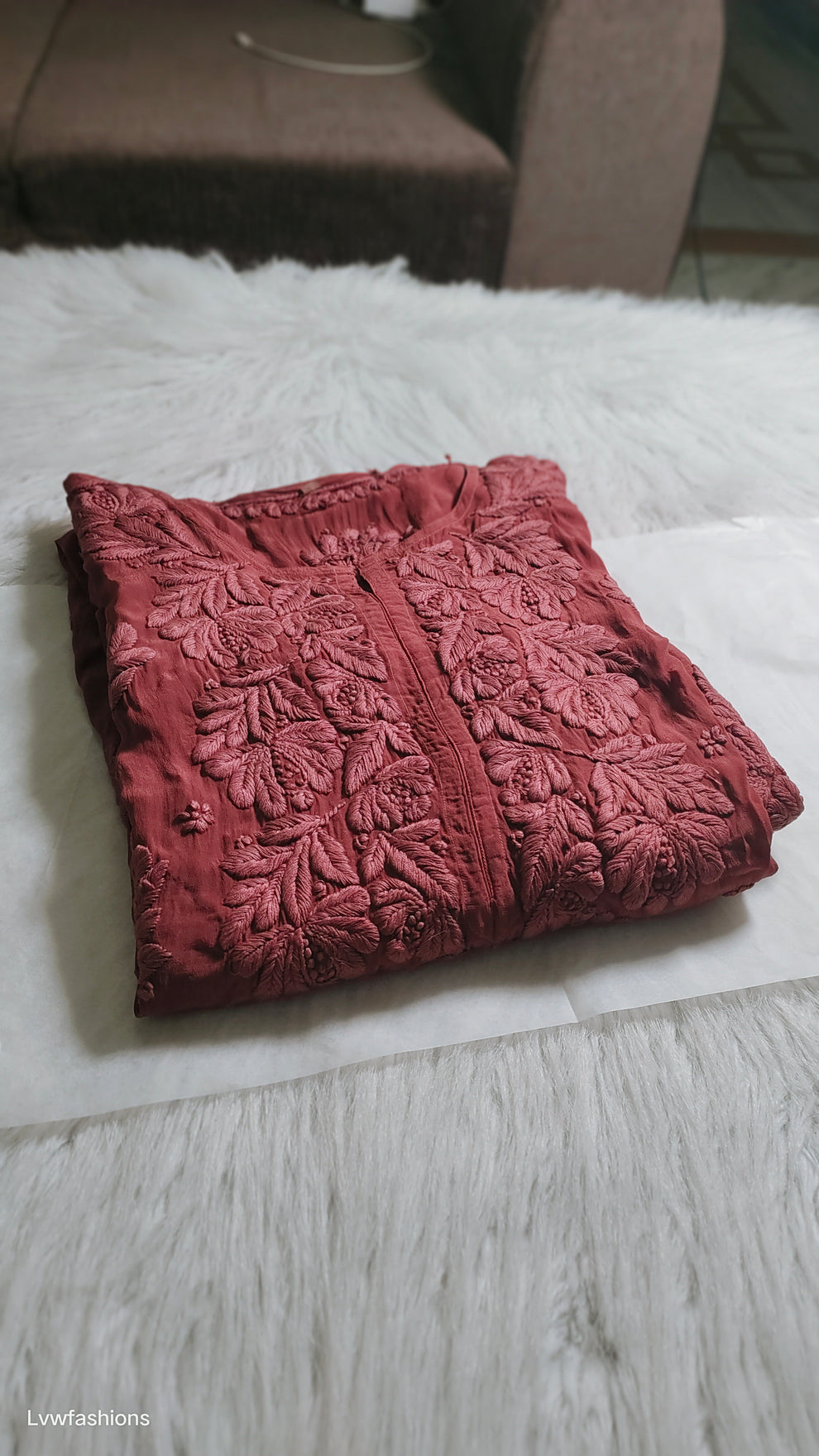 Hot Chocolate Handcrafted Premium Chikankari Luxurious Long Kurta