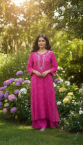 Hot Pink Beautiful Noori Premium Georgette Chikankari Kurta Cutdana Embroidery
