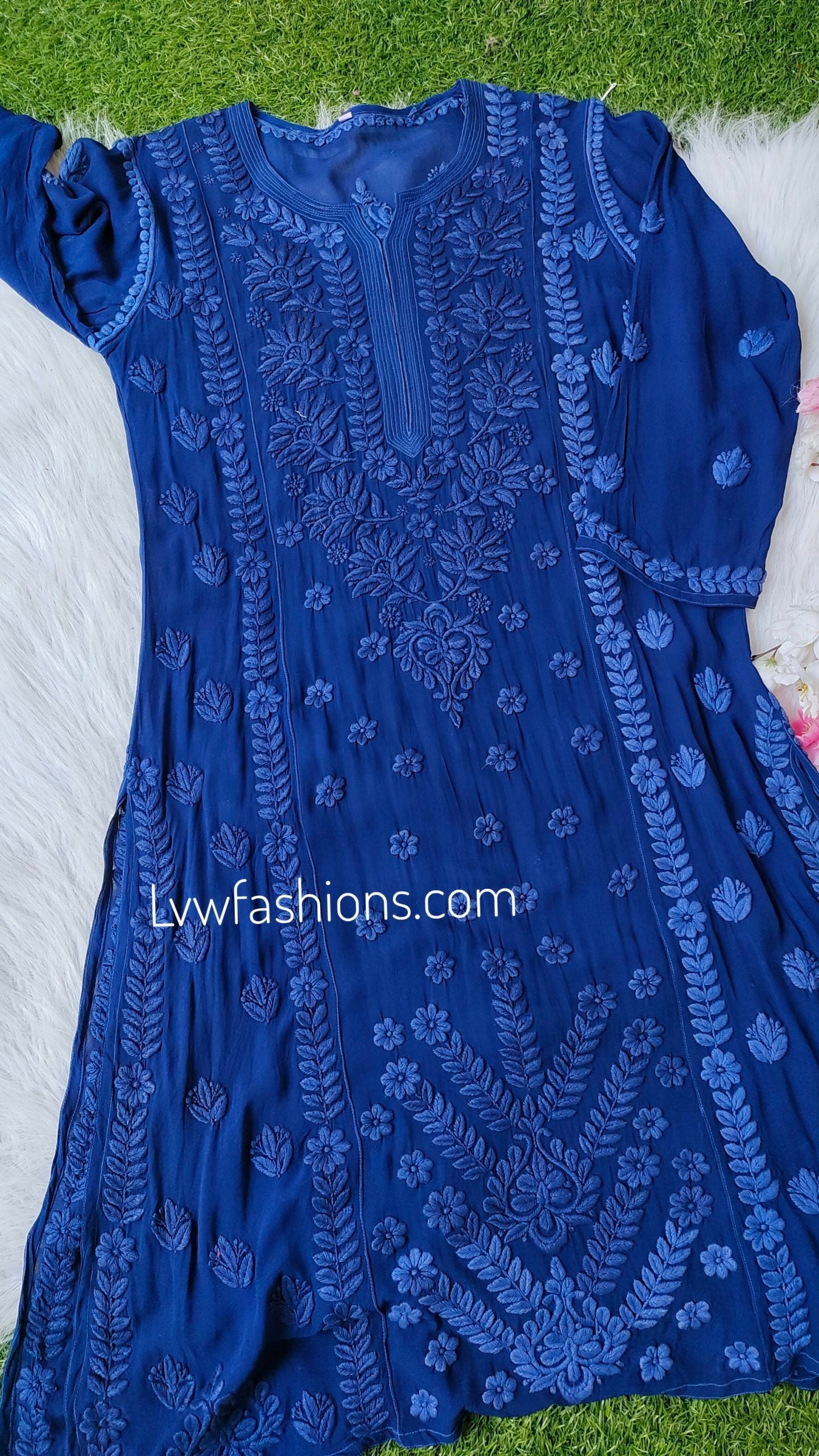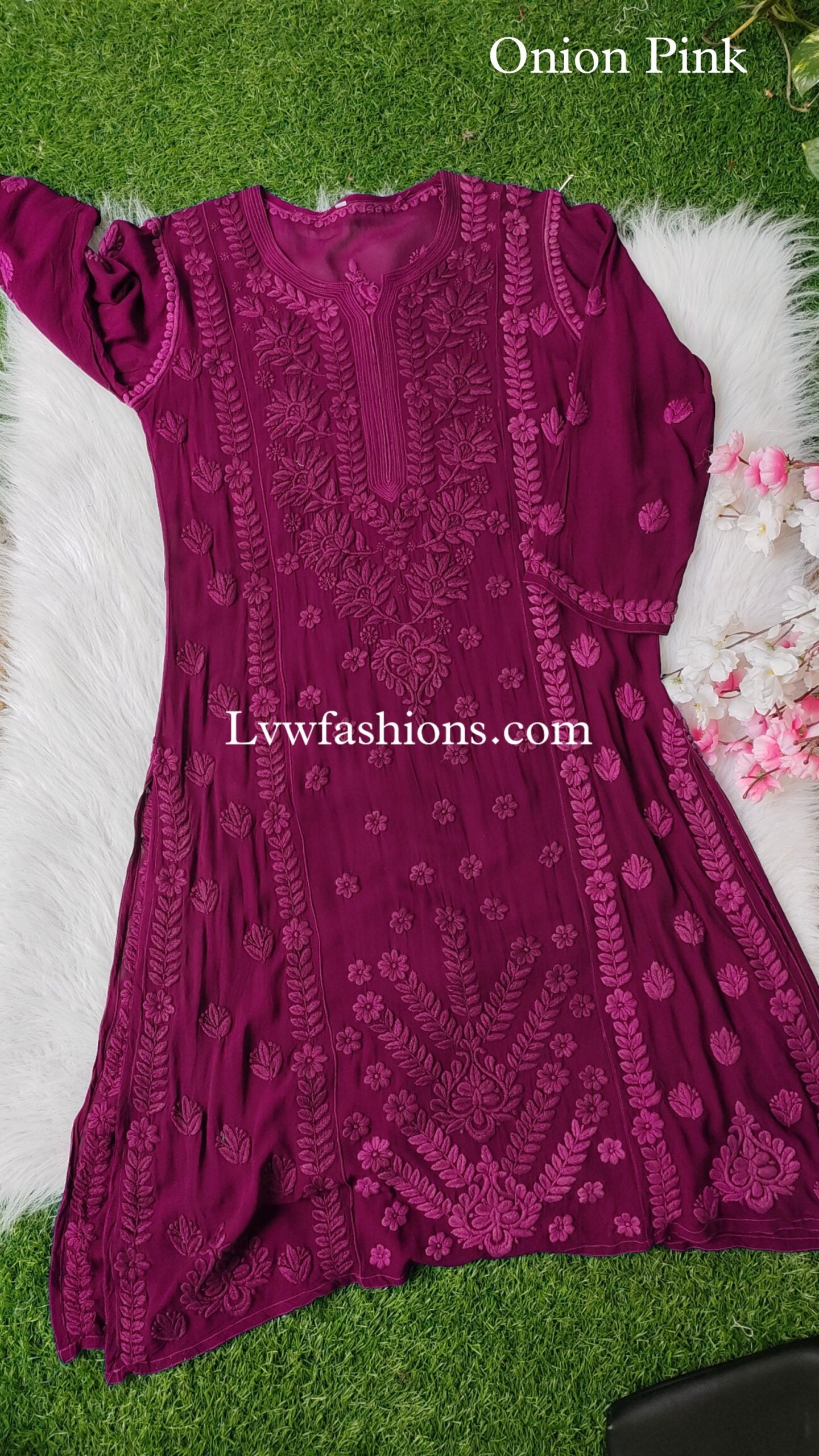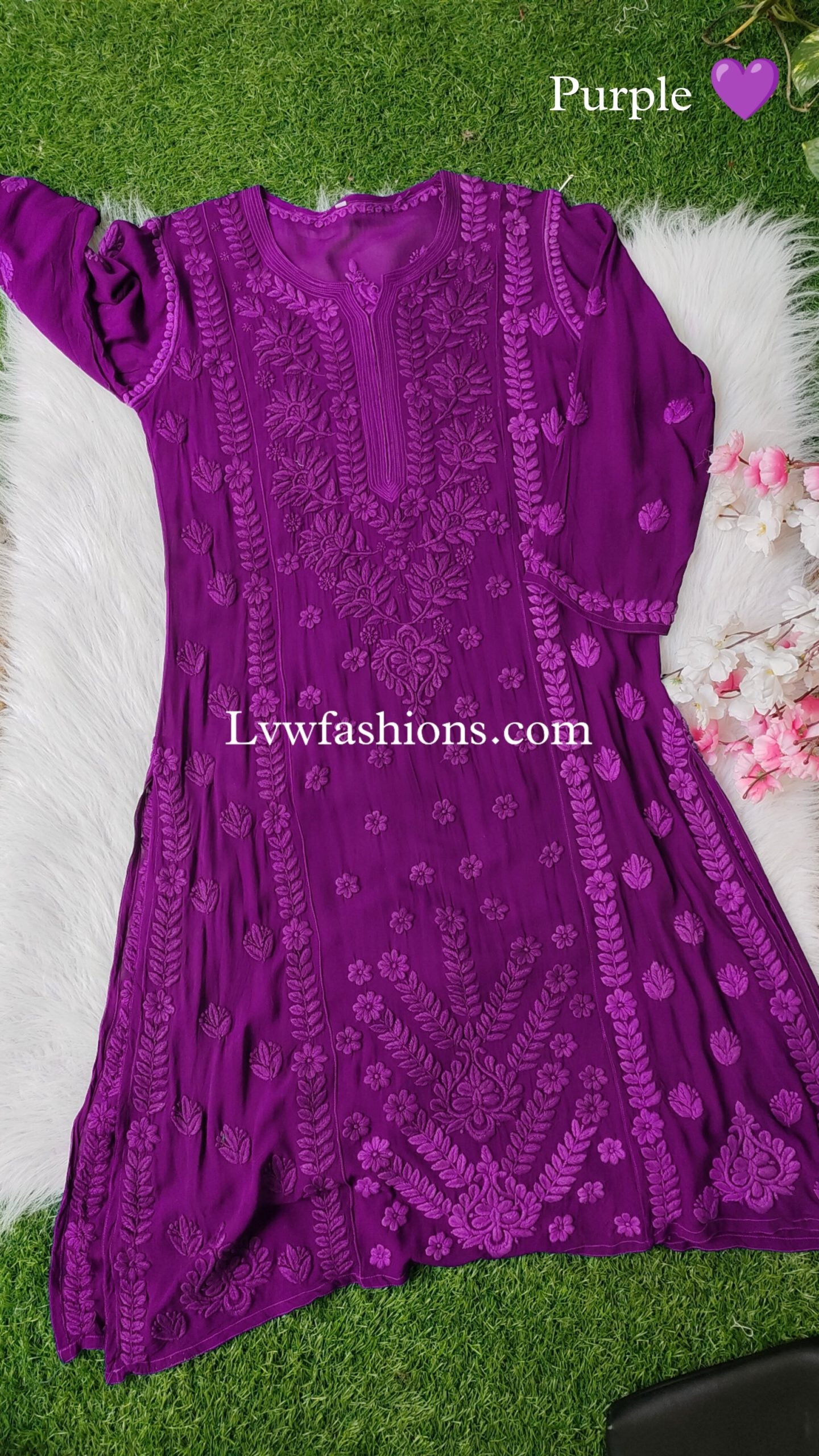 I Z R A 7 Beautiful Shades Premium Georgette Long Kurta With Slip