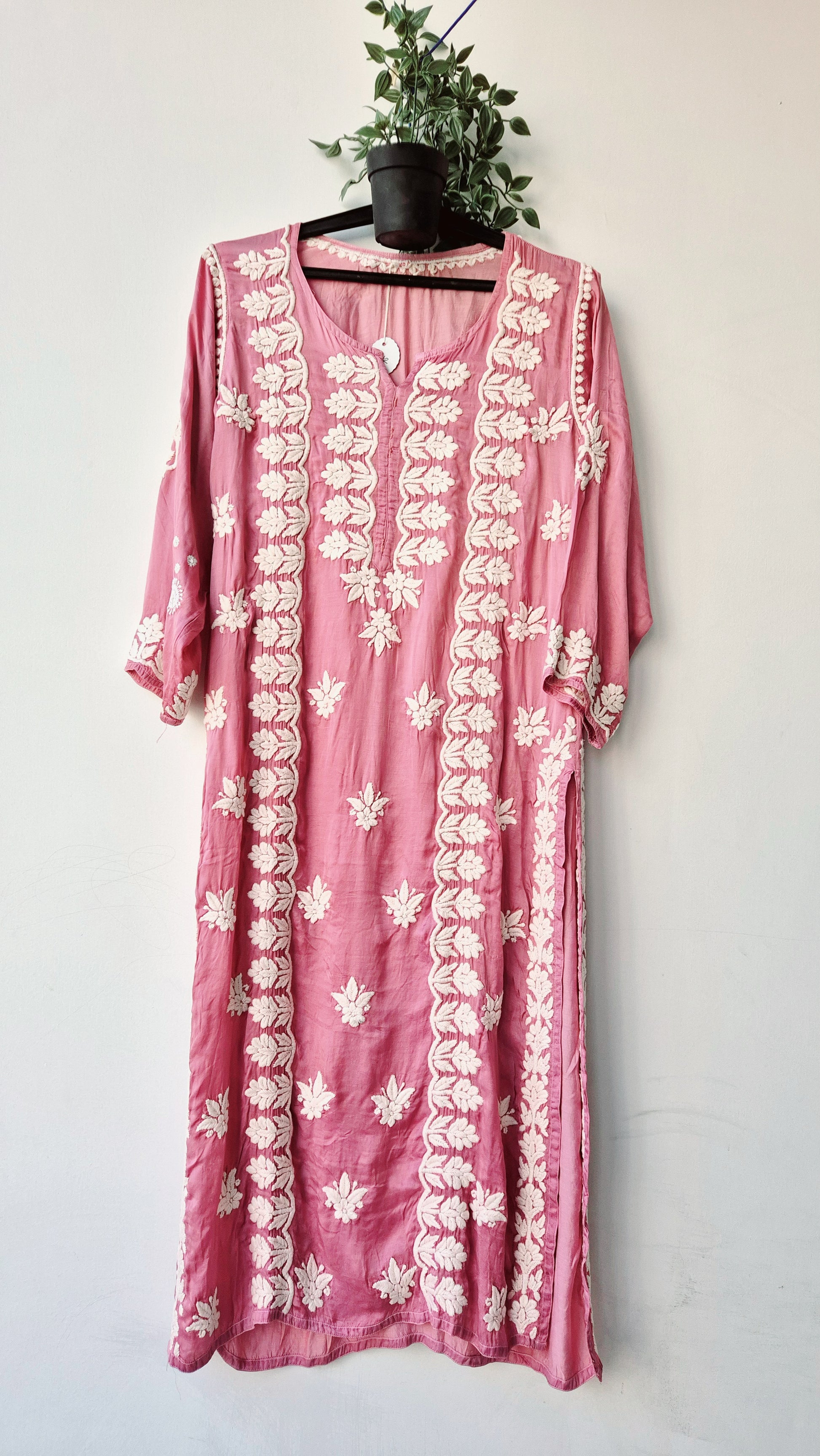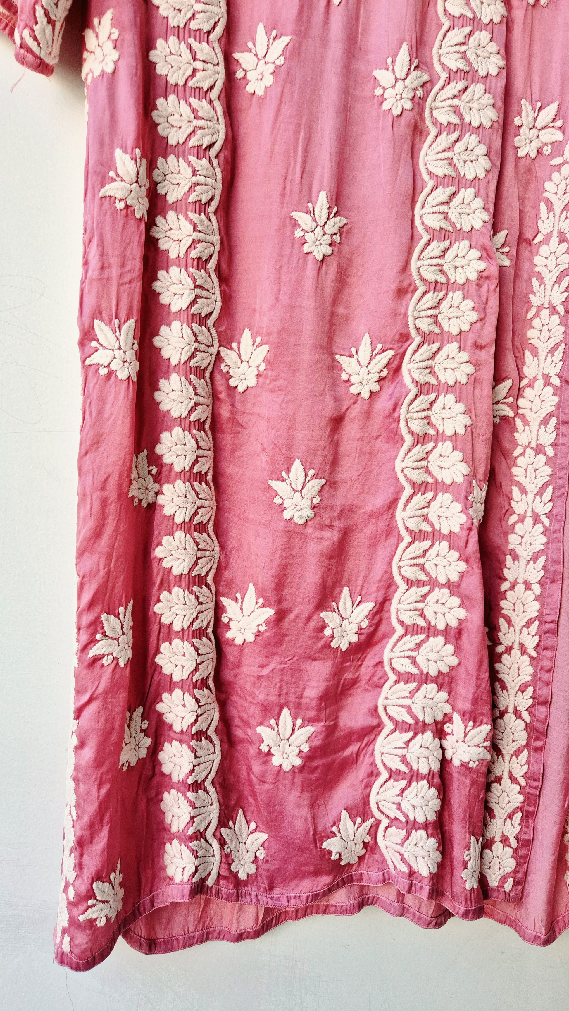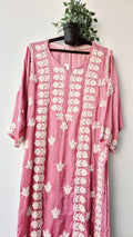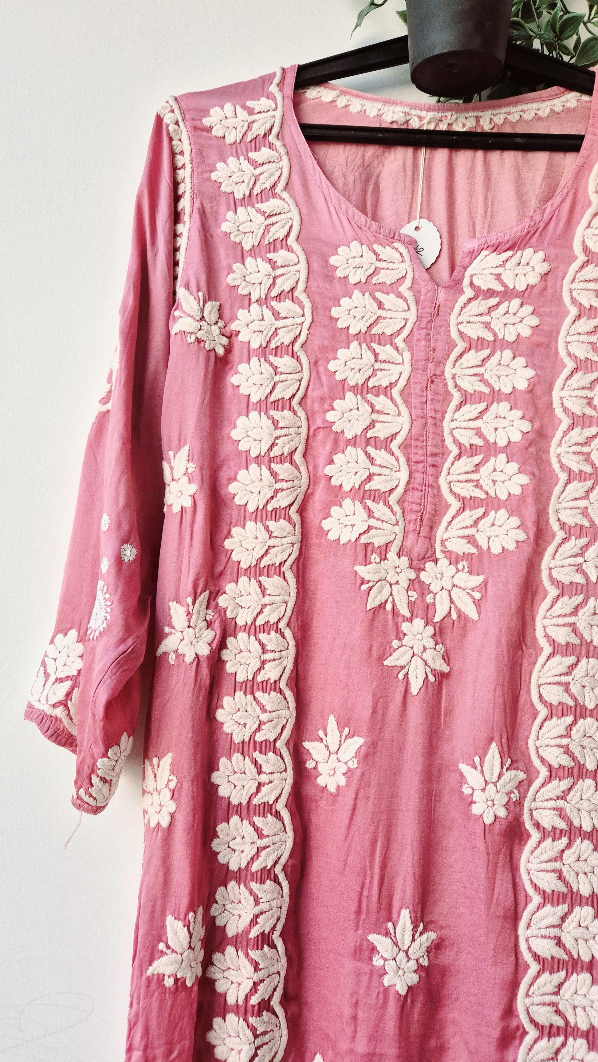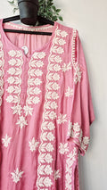 Light Thulian pink Premium Silk Chikankari Kurti