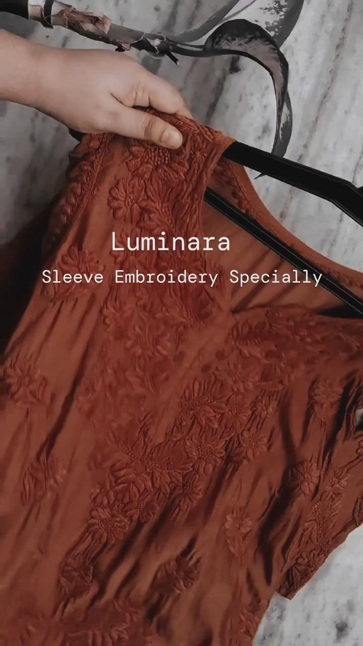 Luminara Surkh Premium Silk Chikankari Long Kurta