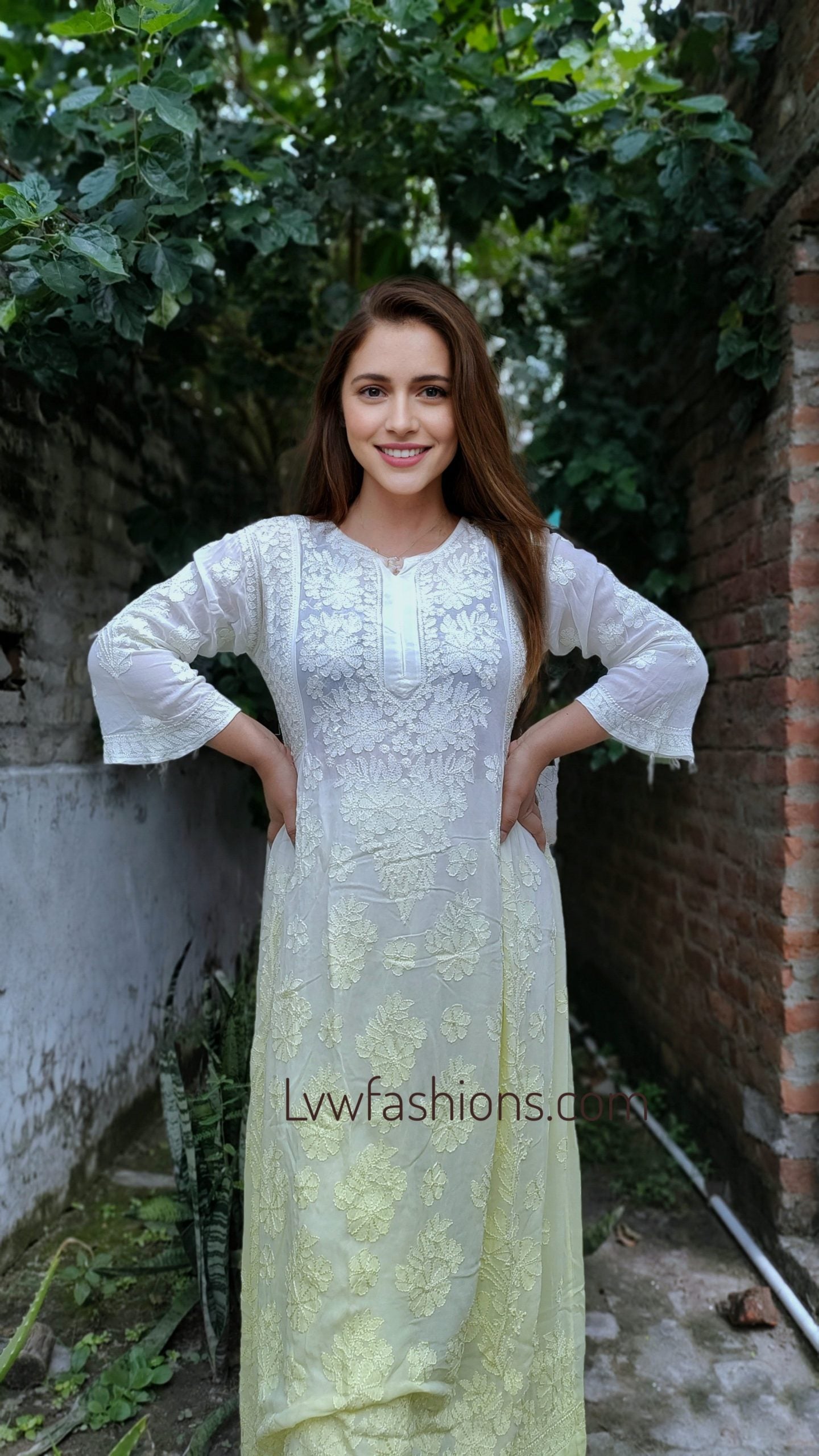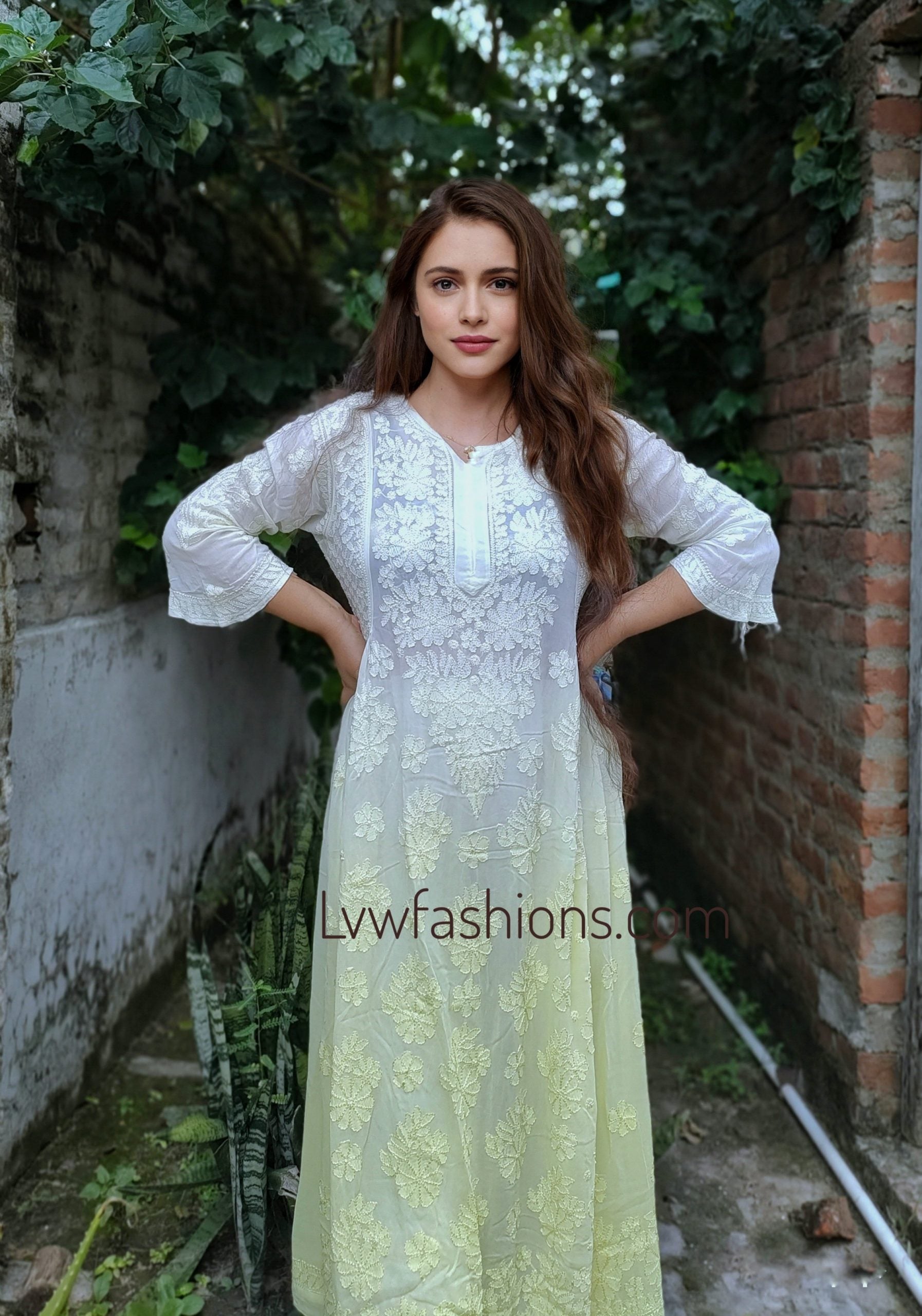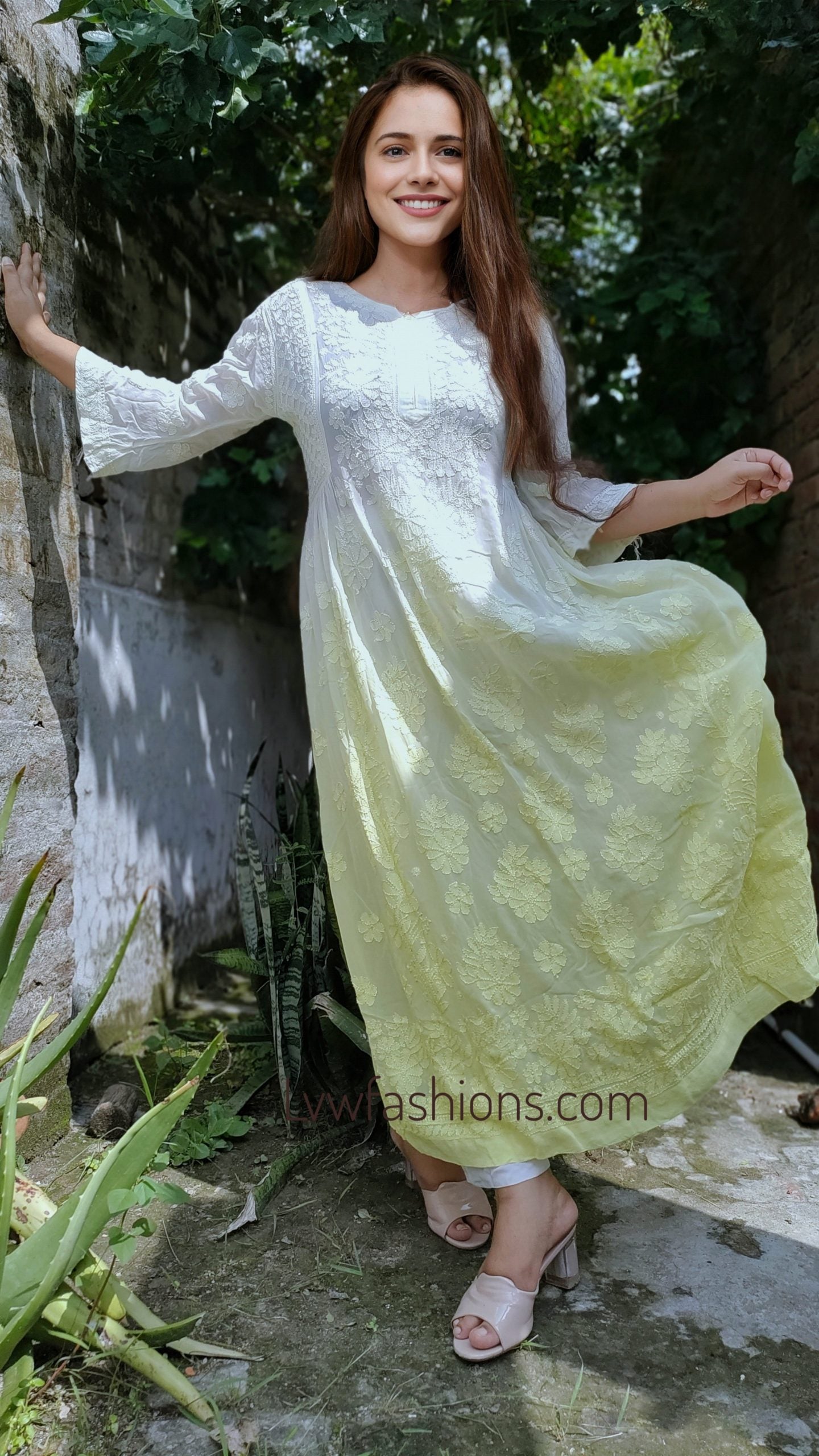 Luxurious Premium Georgette Long Dress With RESHAM Chikankari Embroidery