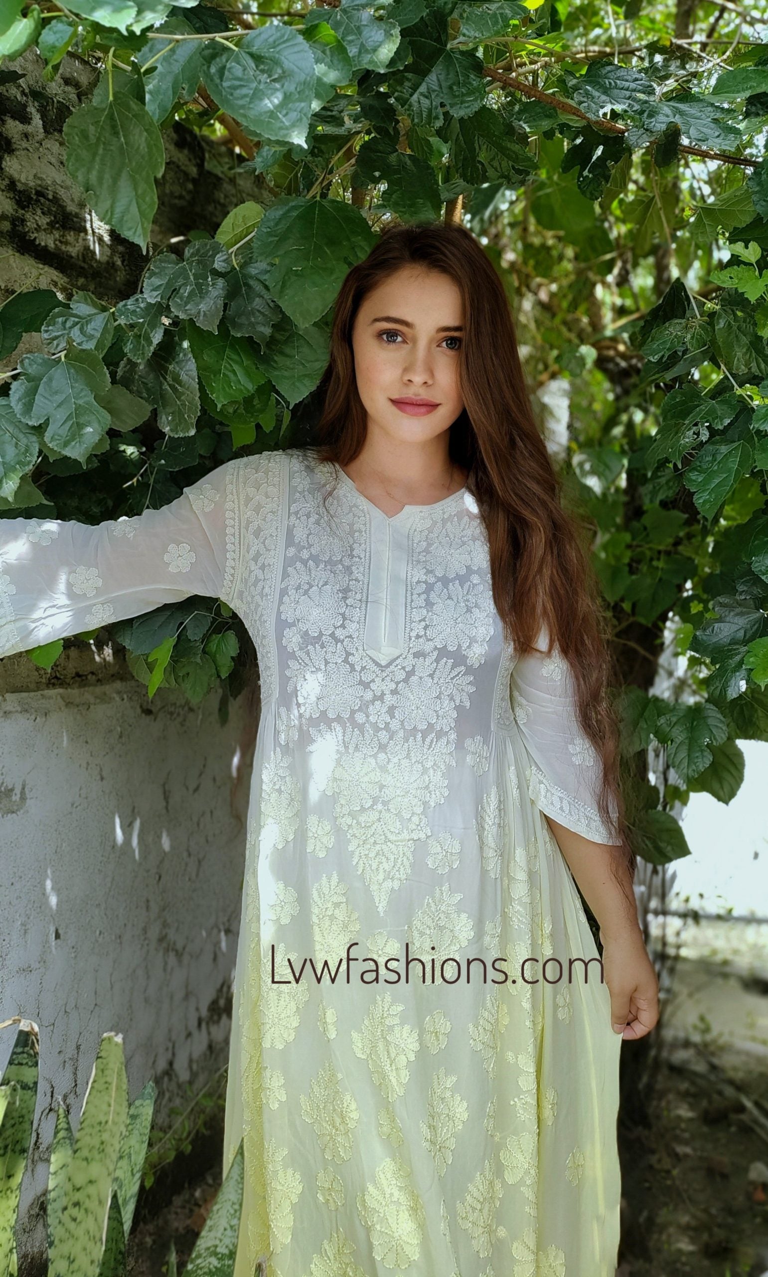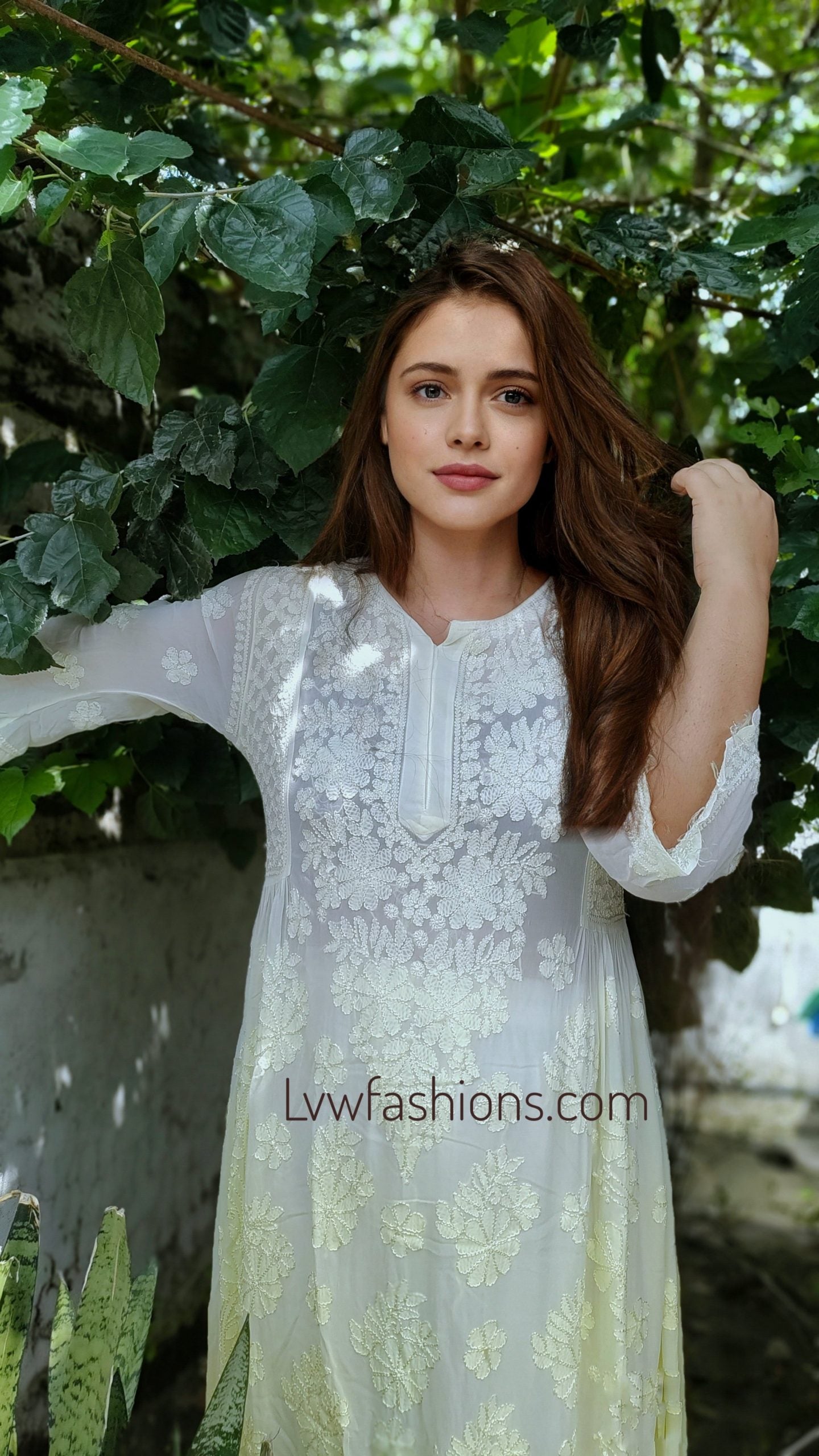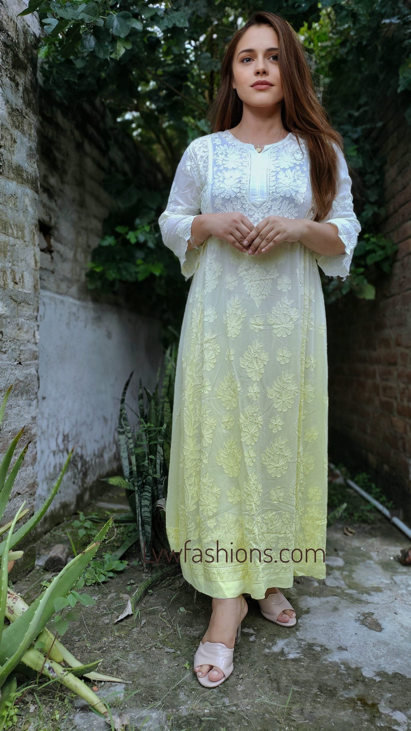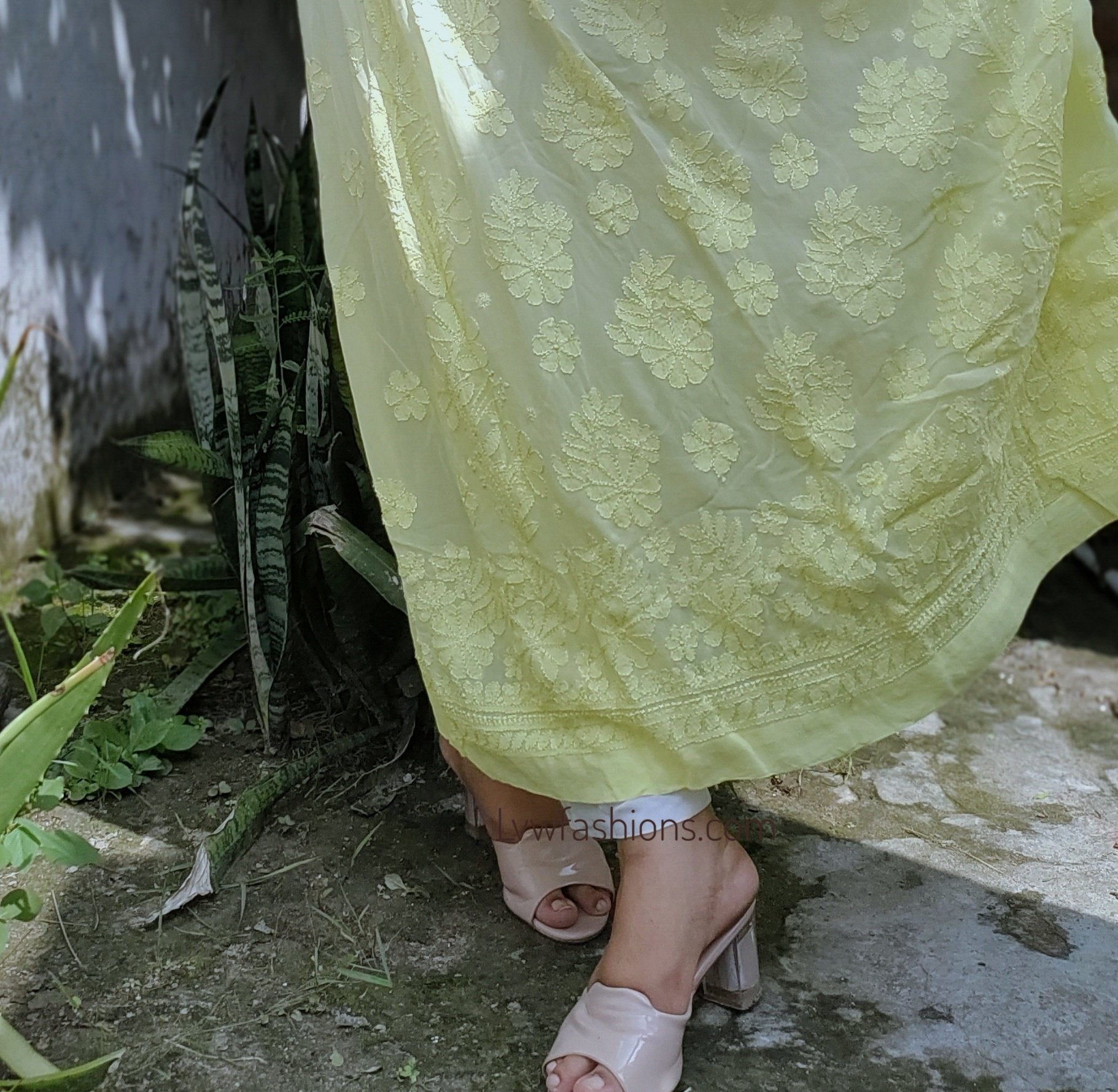 Luxurious Premium Georgette Long Dress With RESHAM Chikankari Embroidery