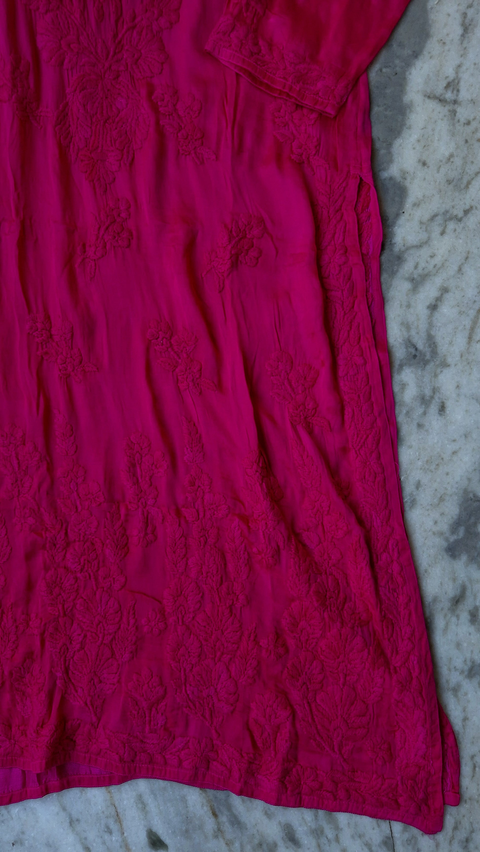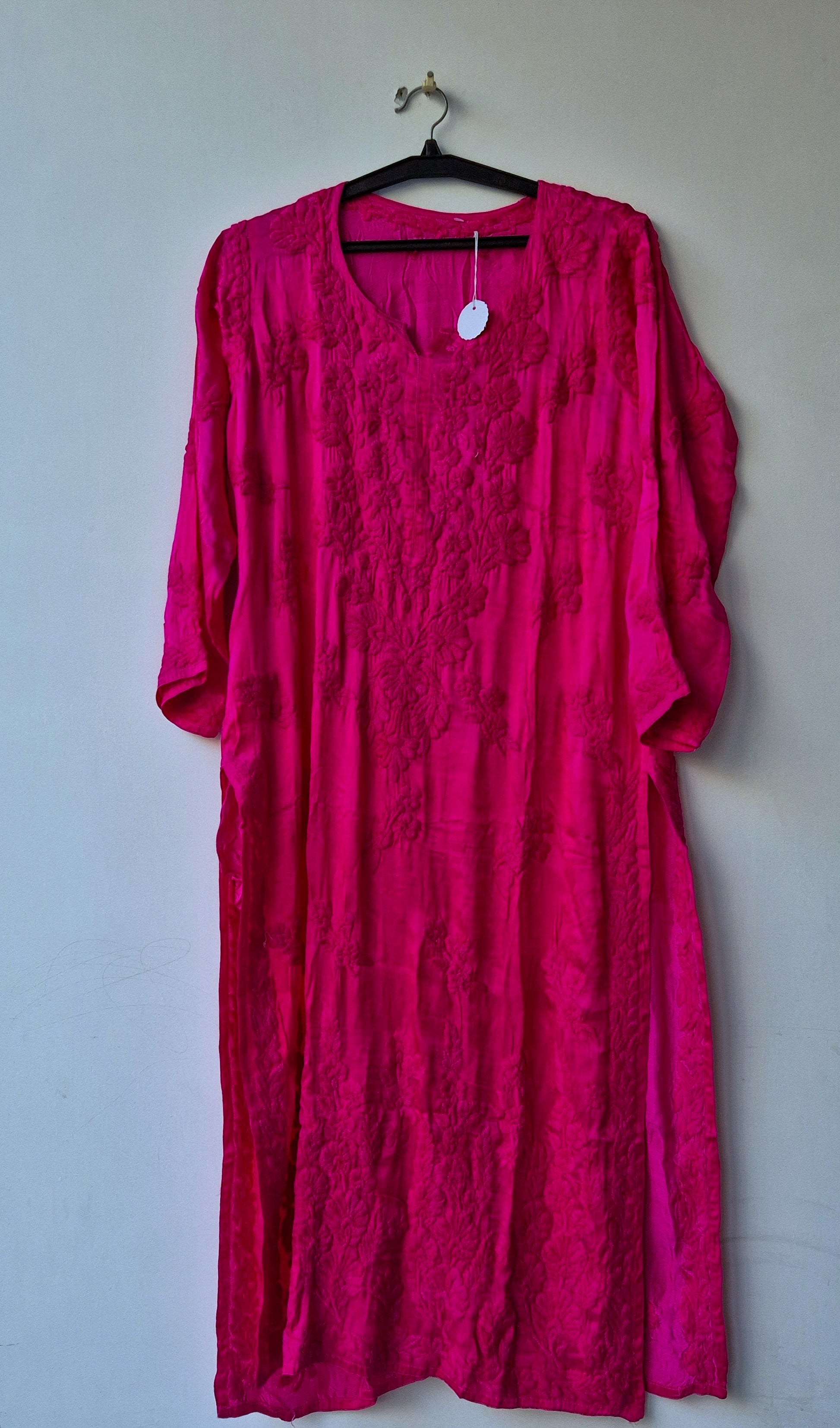 Luxurious Silk Chikankari Long Kurta With Pocket
