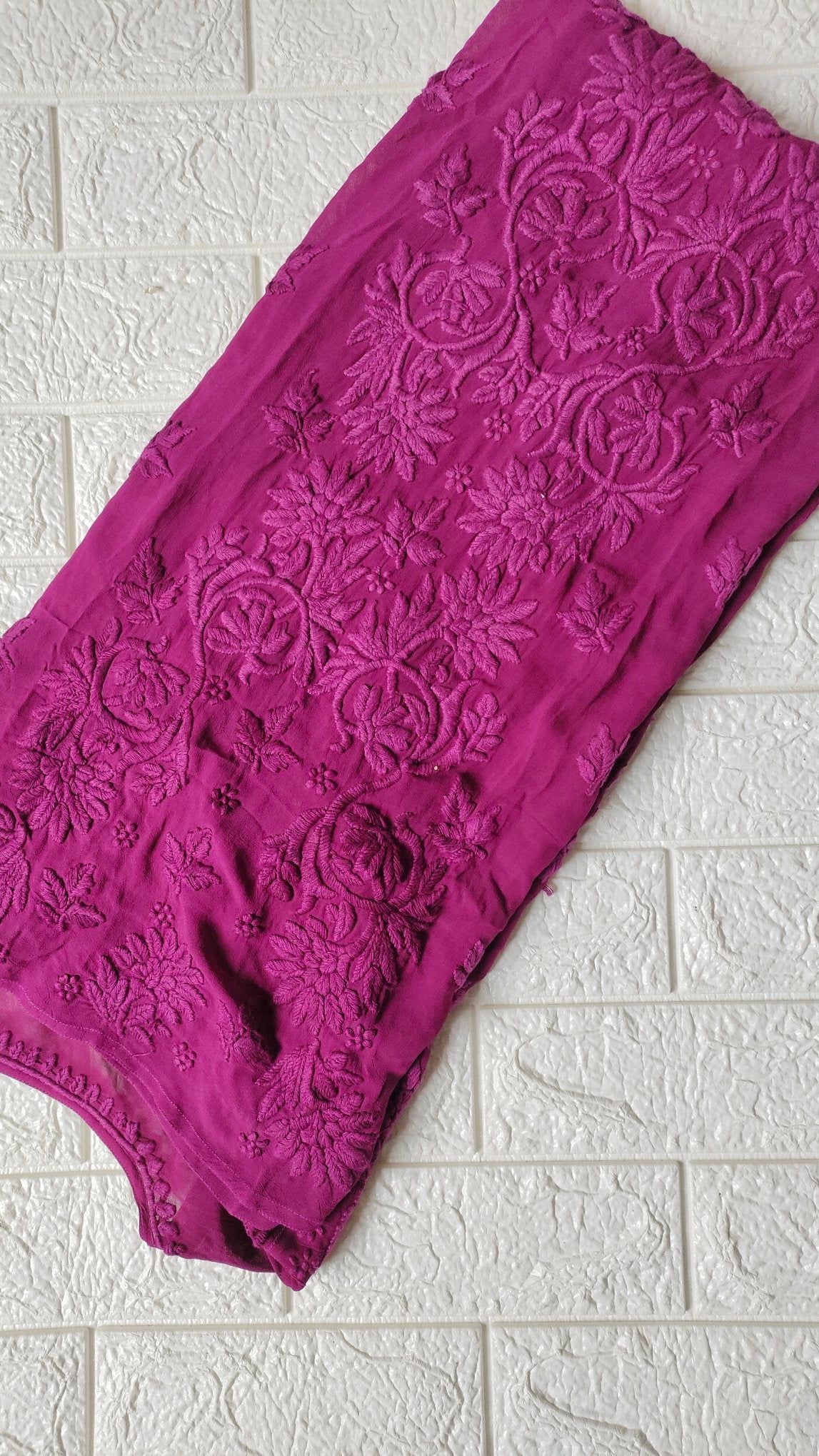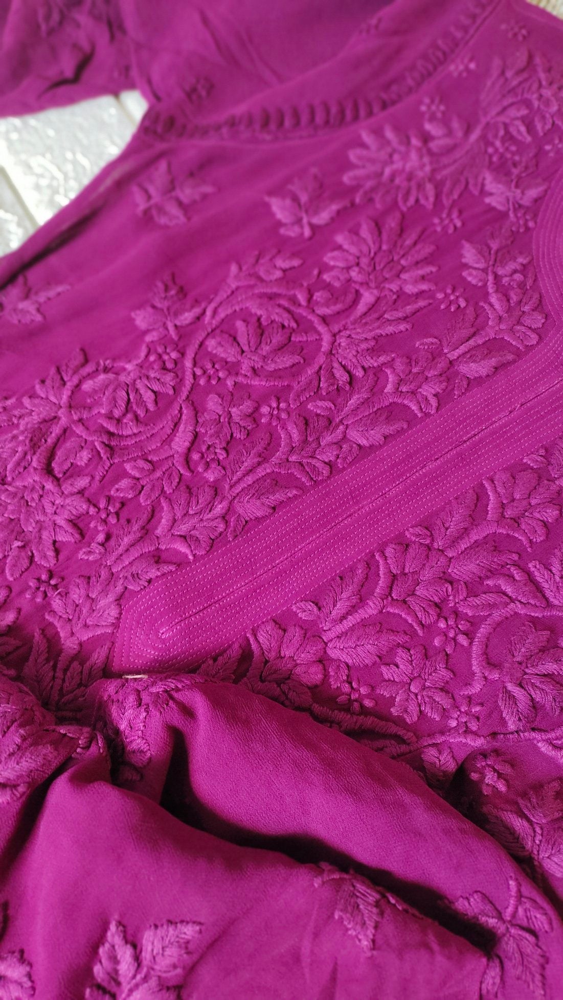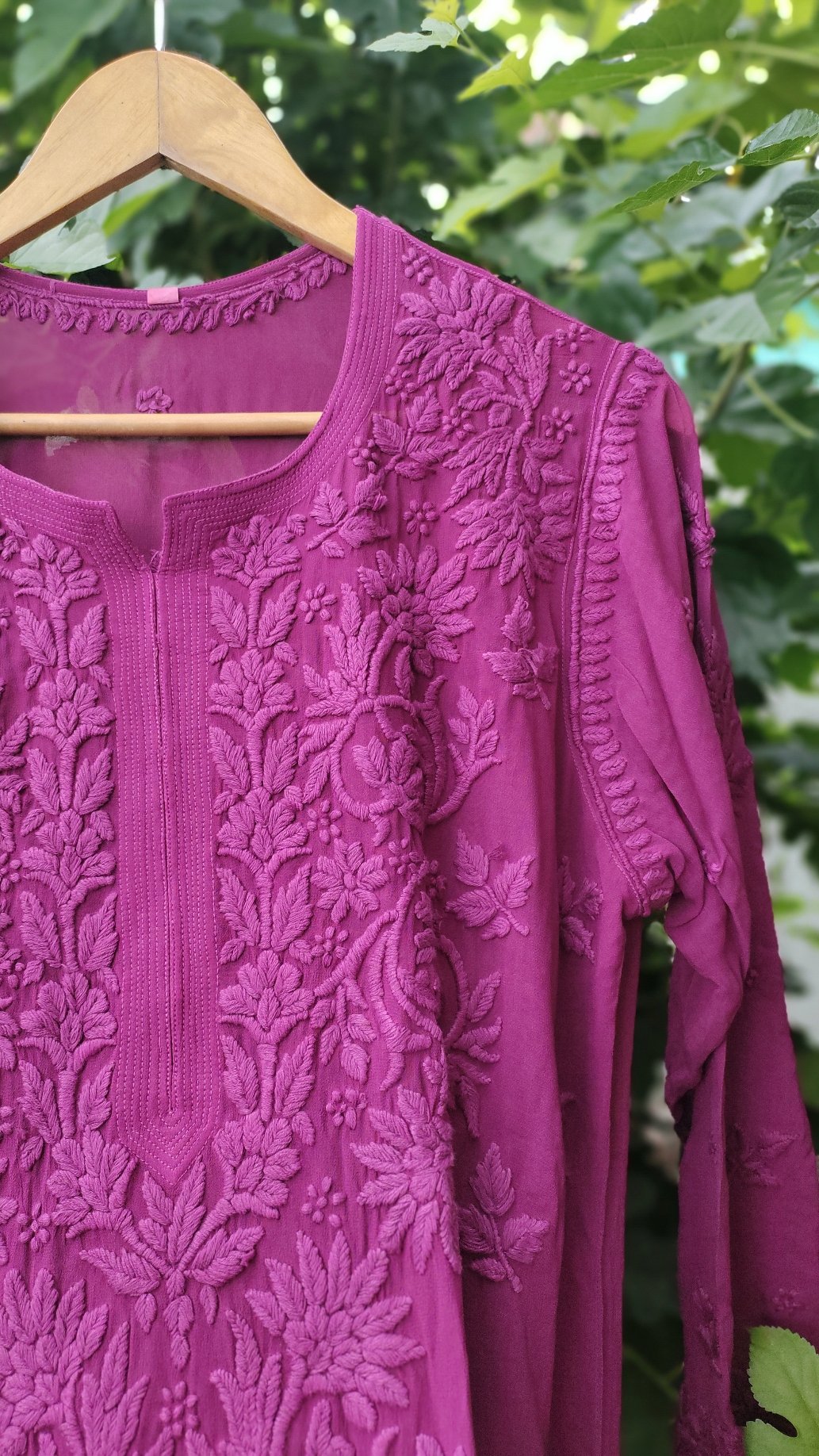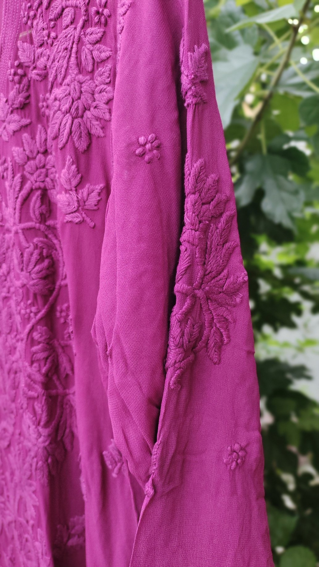 Mahira Purple Pure Premium Georgette Long Chikankari Kurta With Inner