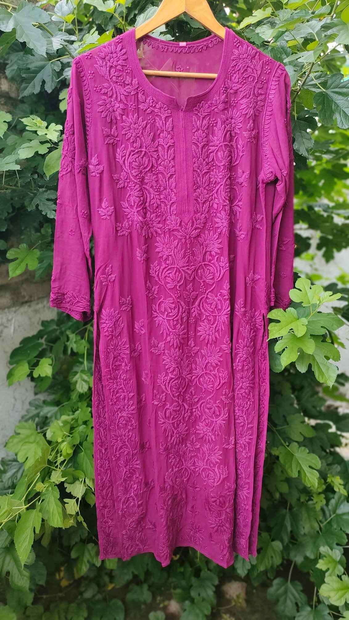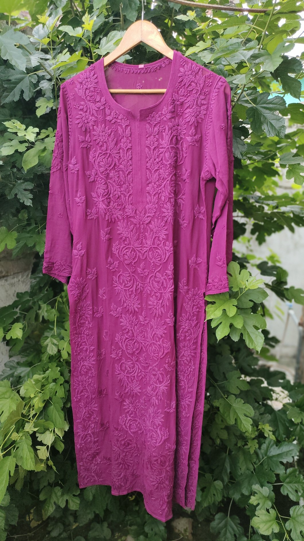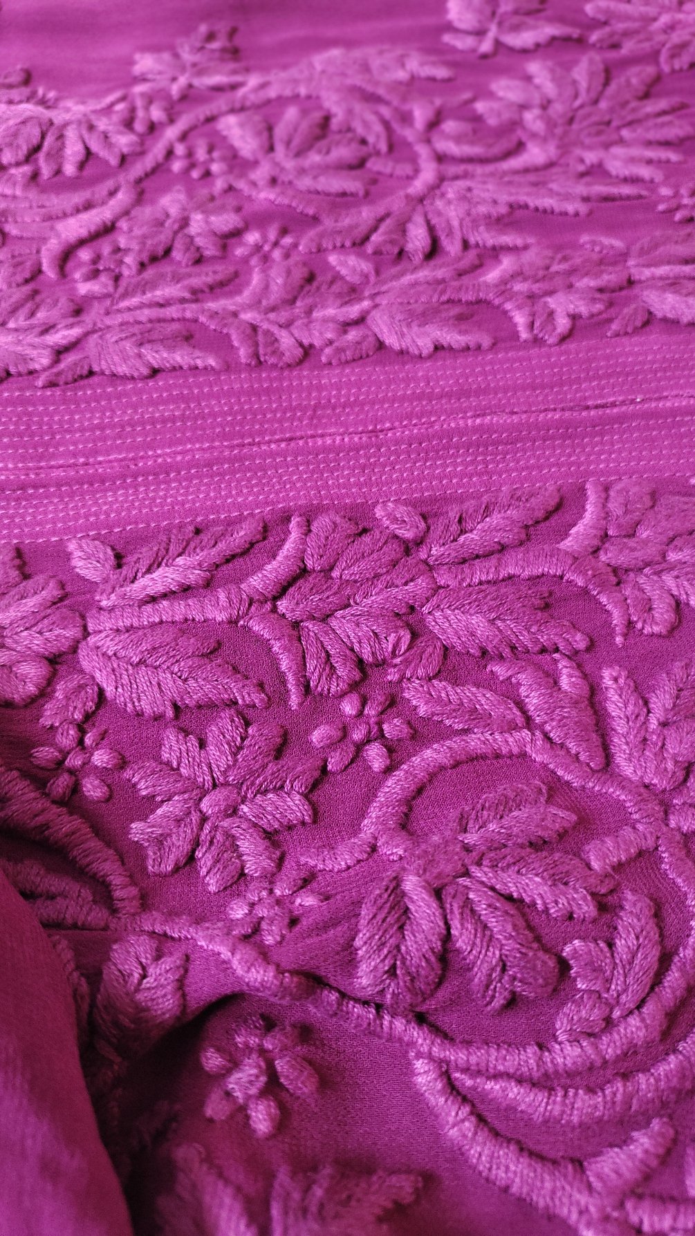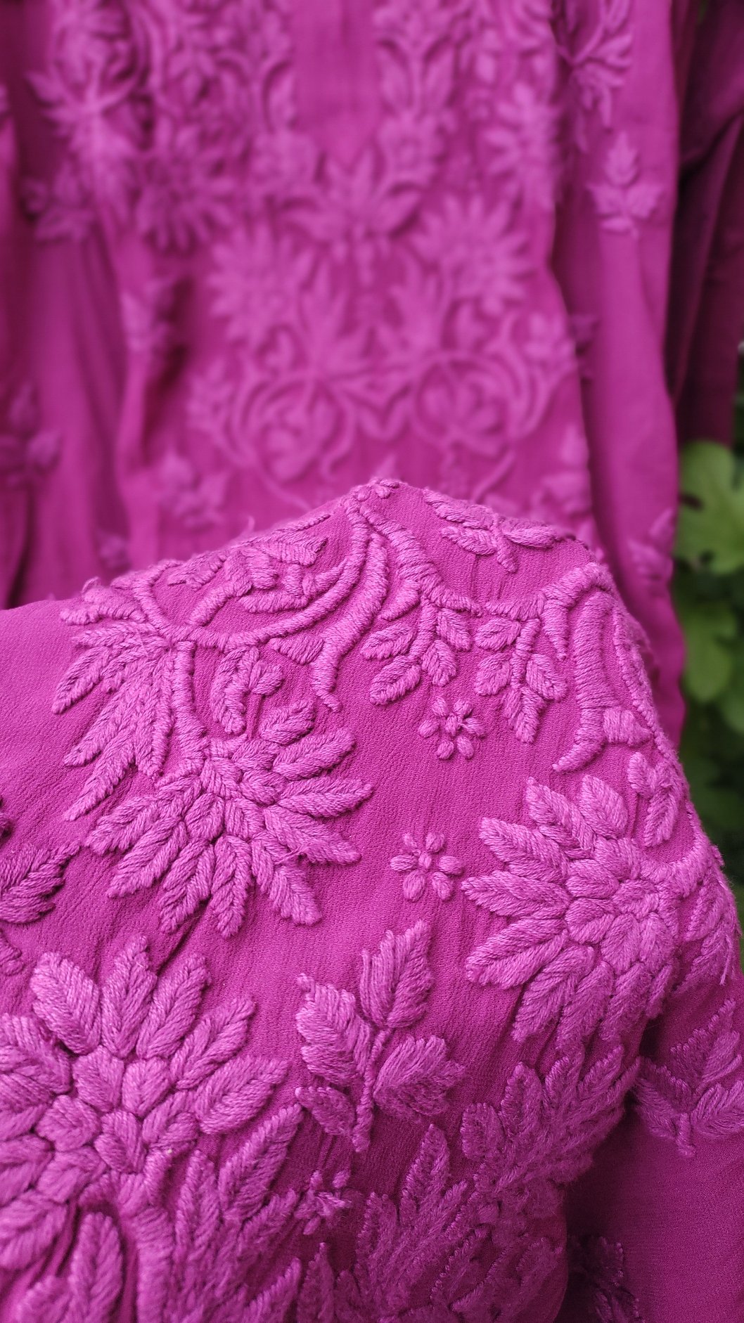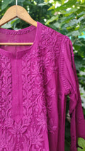 Mahira Purple Pure Premium Georgette Long Chikankari Kurta With Inner