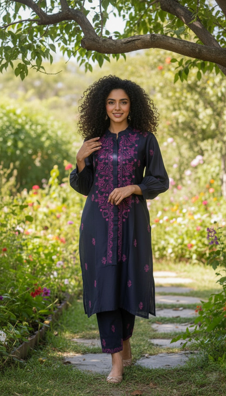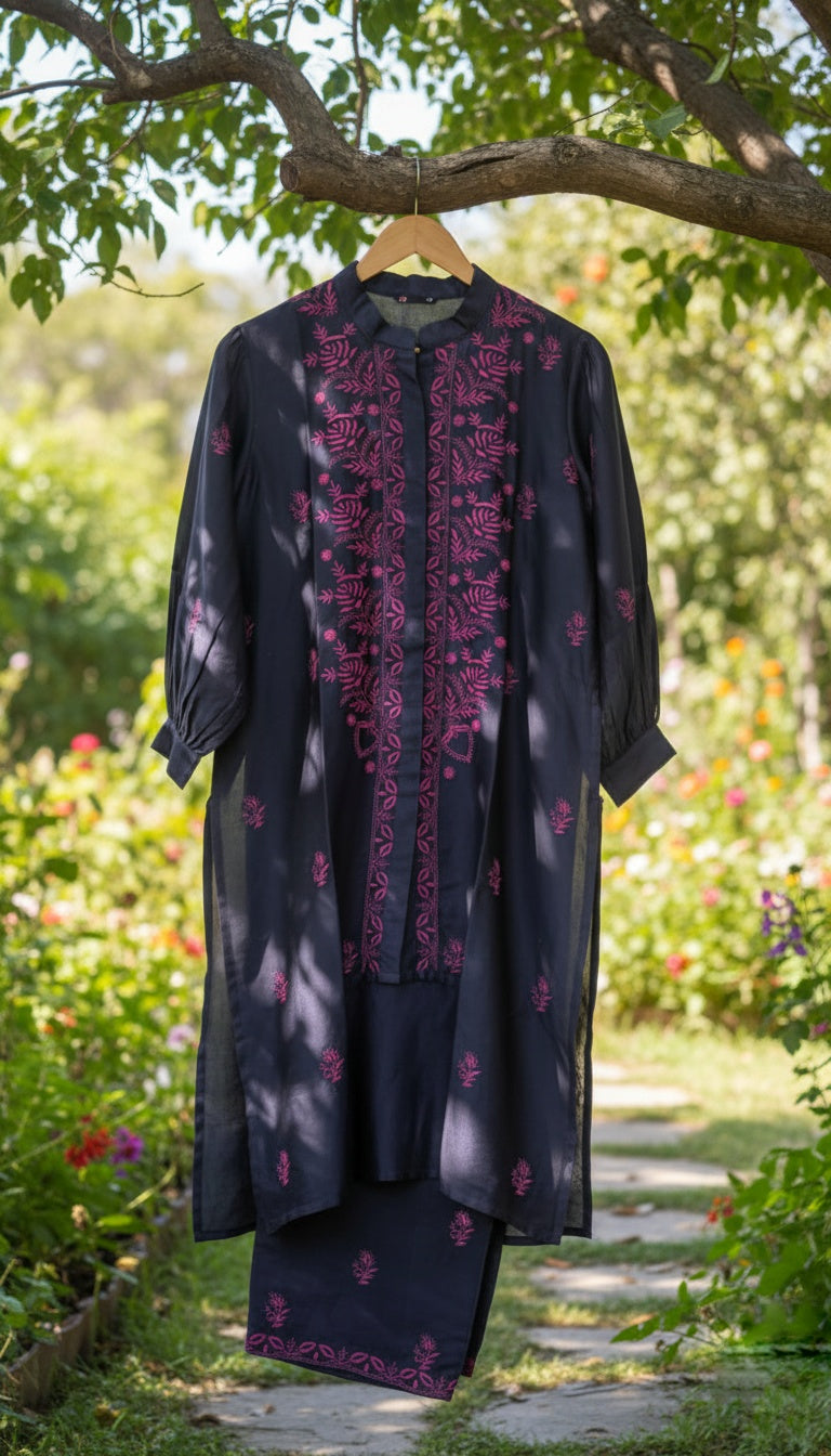 Nazneen Pure Chanderi silk Luxurious Pure Handcrafted Chikankari co-ord Set