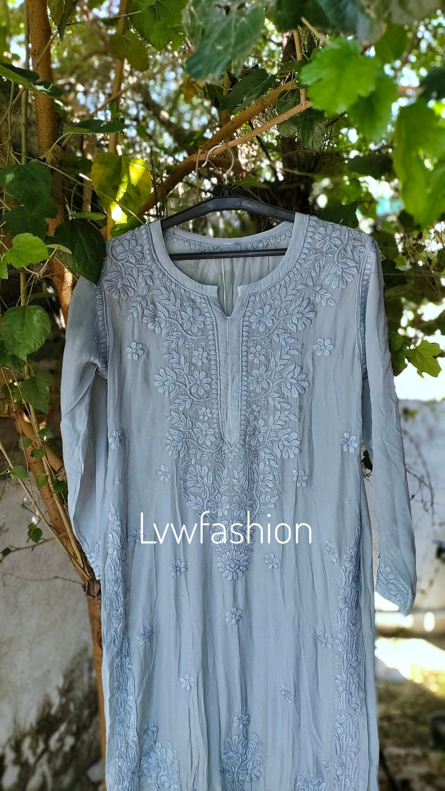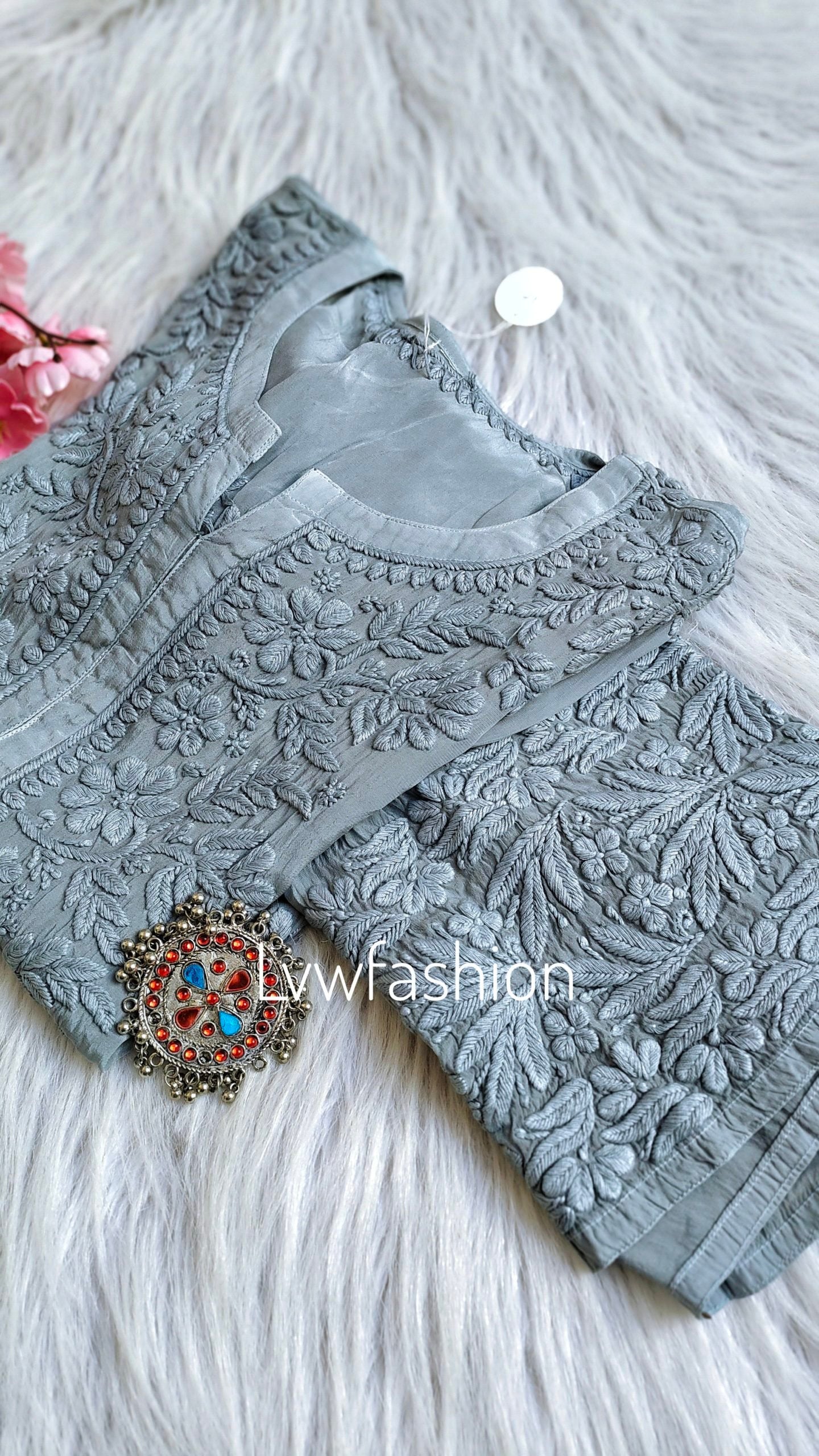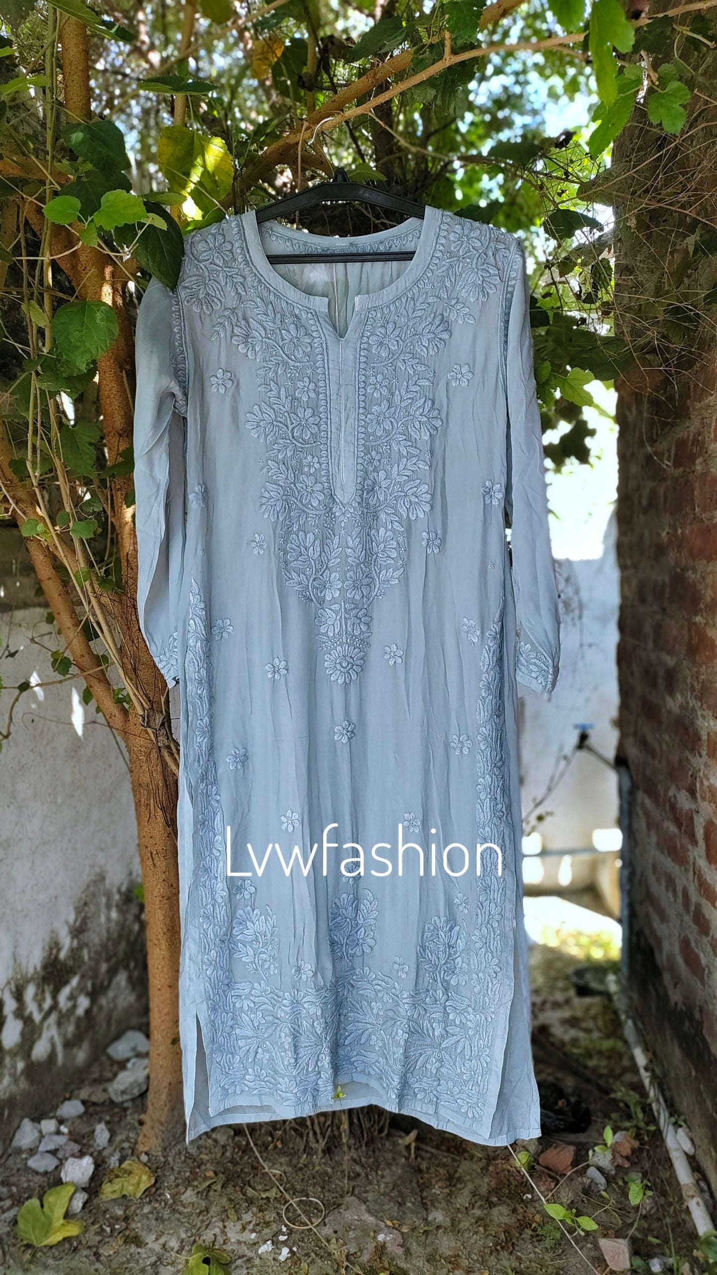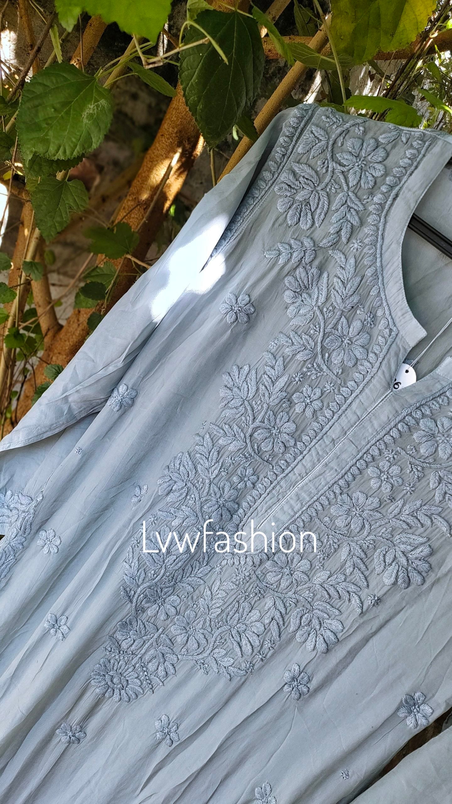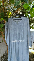 NEER Grayish Premium Muslin Silk Long Kurta With 3D Chikankari Embroidery