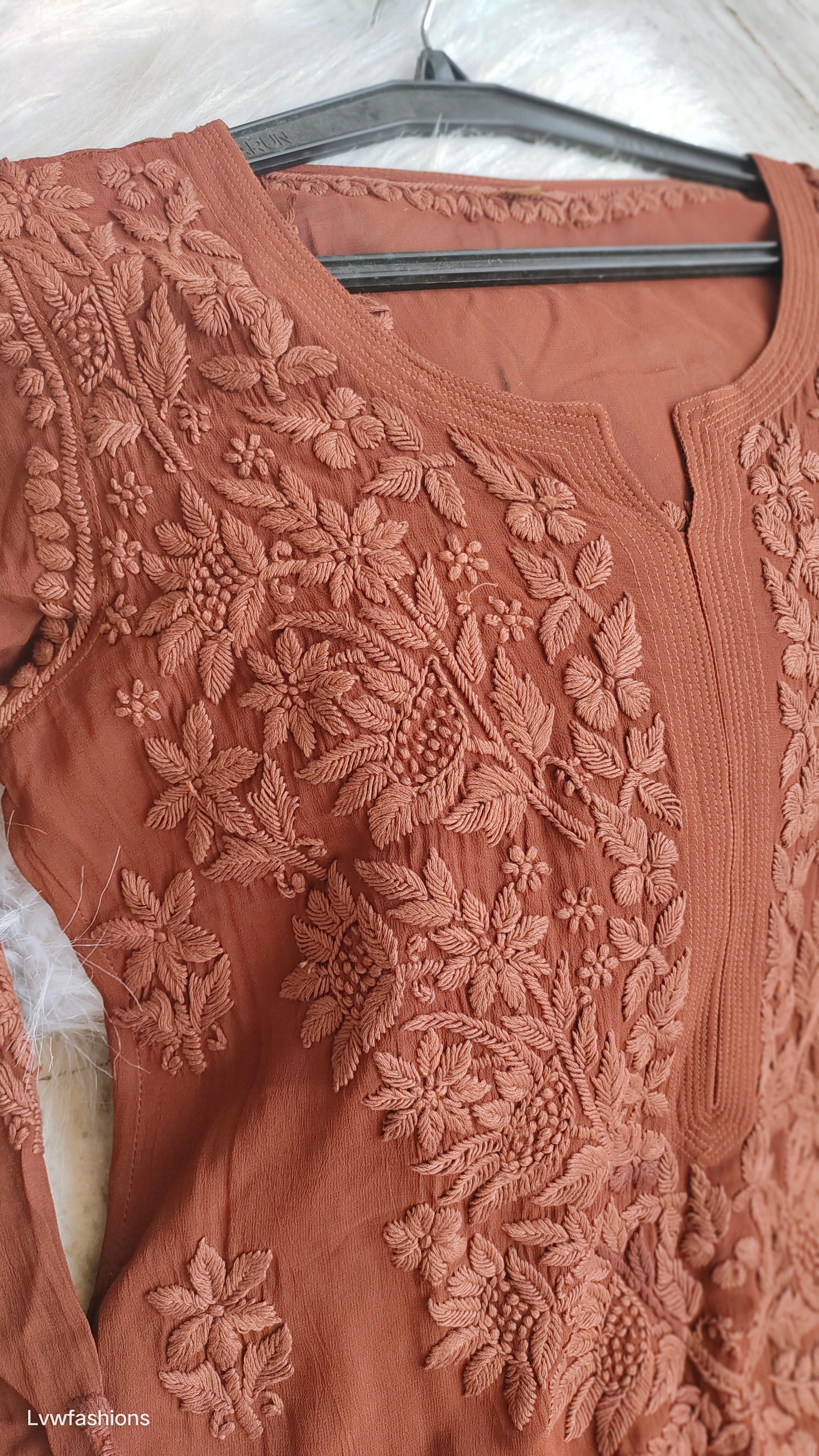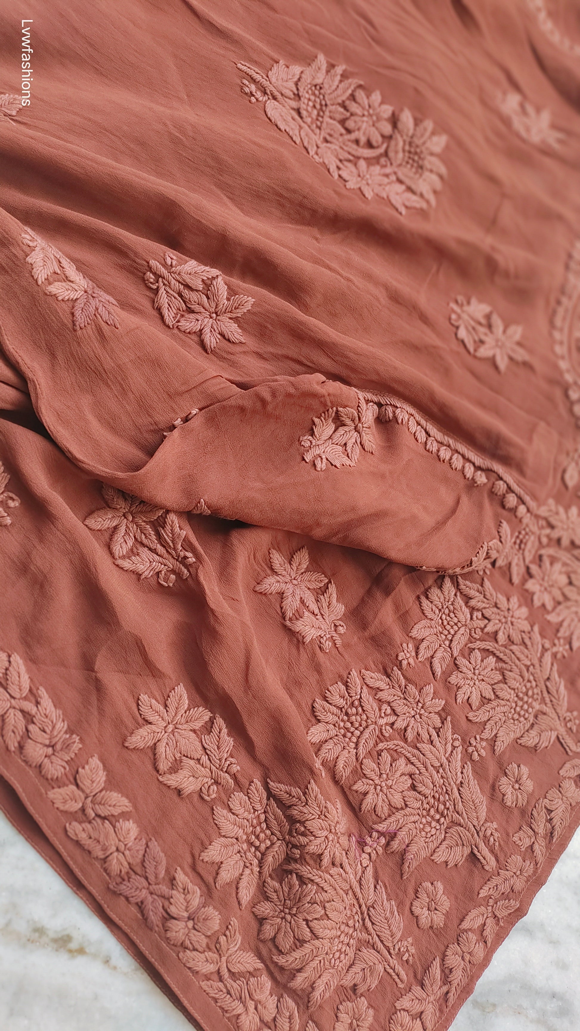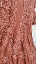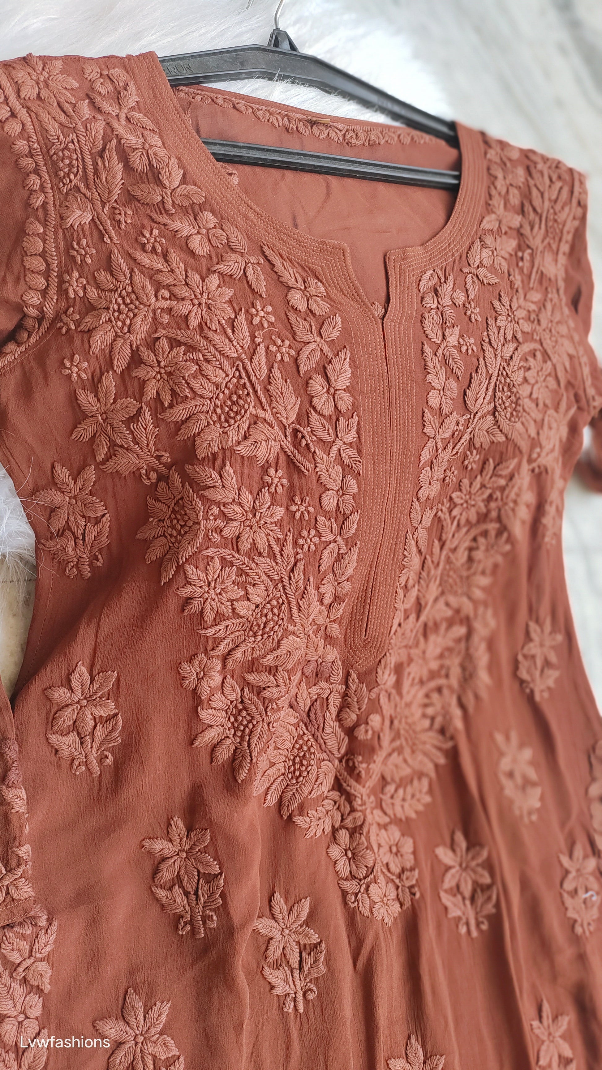 Noorani Brown Premium Georgette Chikankari Daman Booti Kurta