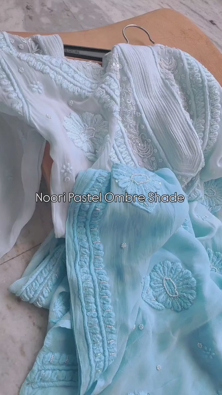 Noori Ombre Premium Silk Chikankari Pearls Cutdana Embroidery