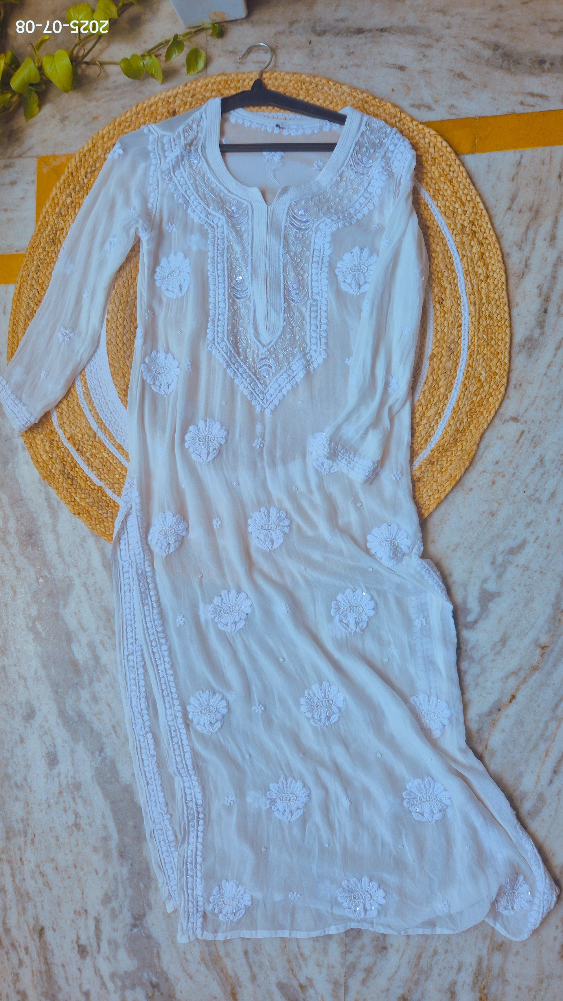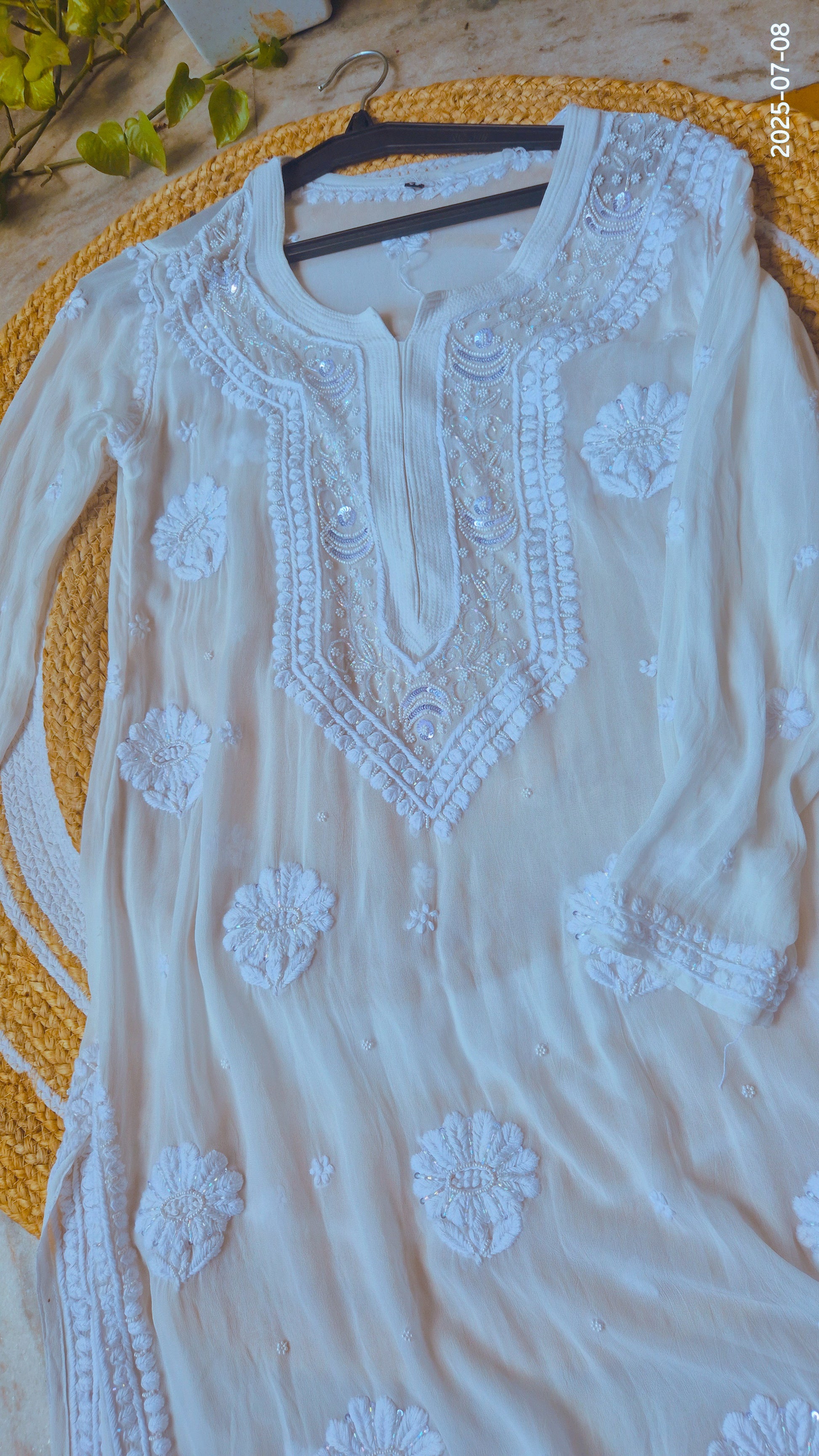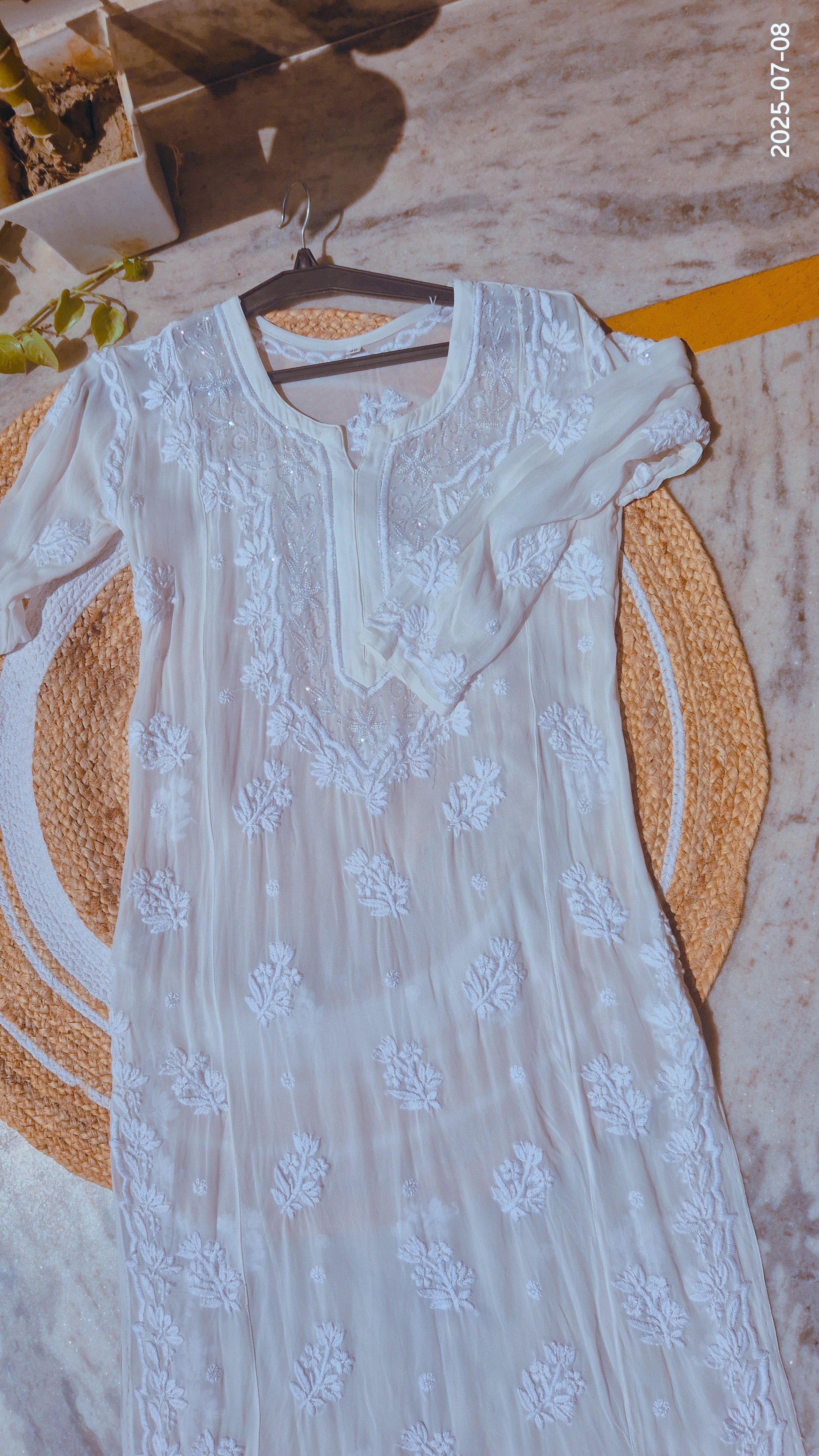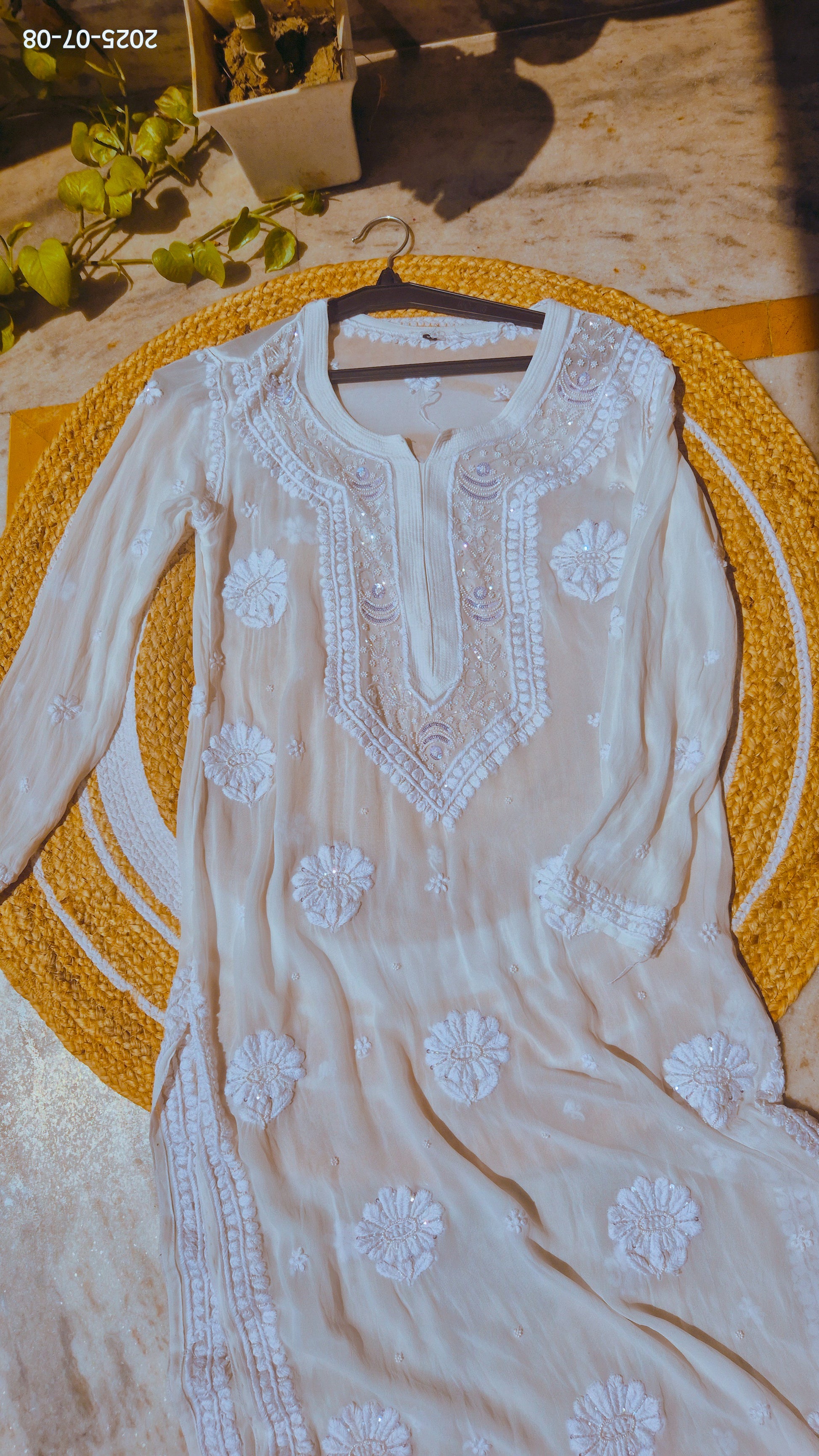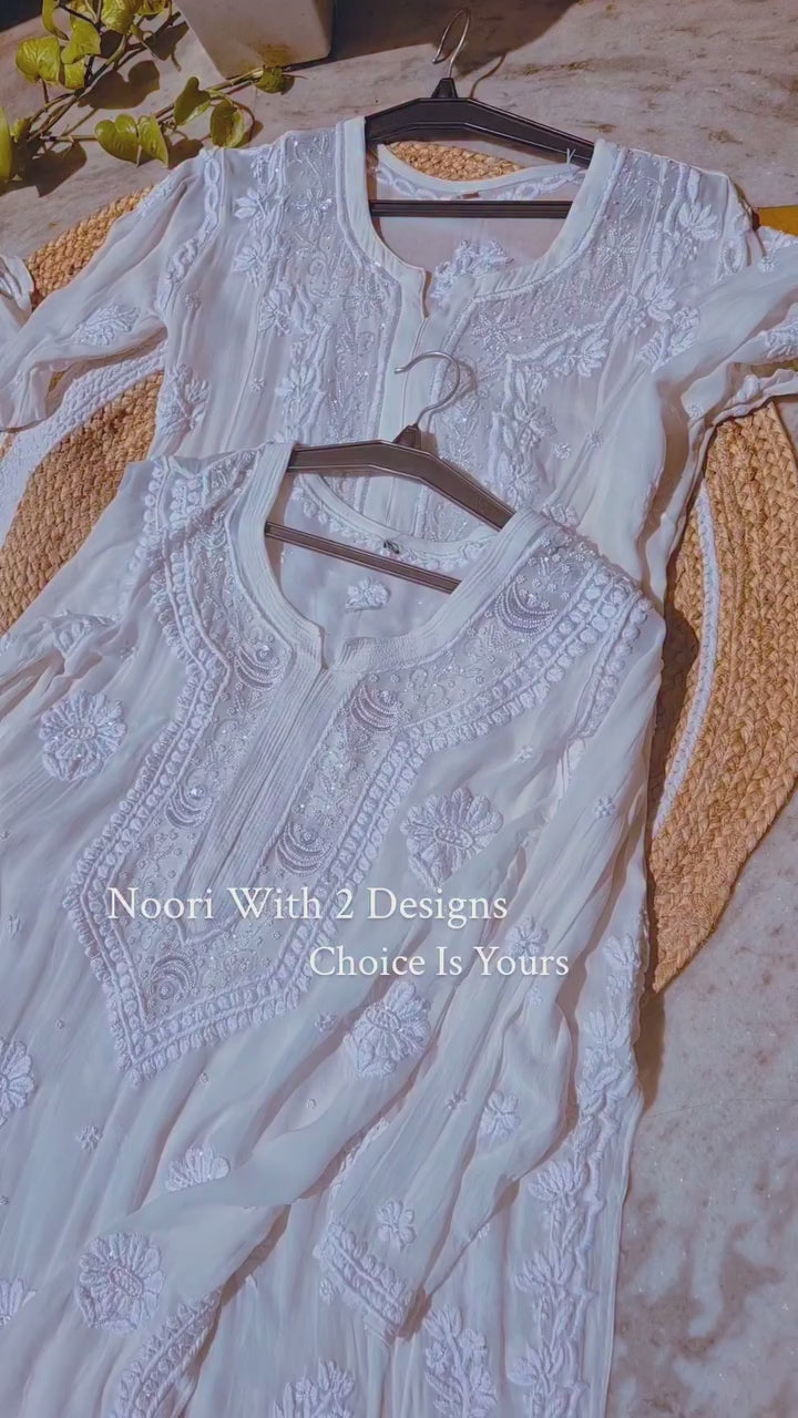 Noori Premium Georgette Luxurious Long Kurtas With Pearls Cutdana Chikankari Embroidery