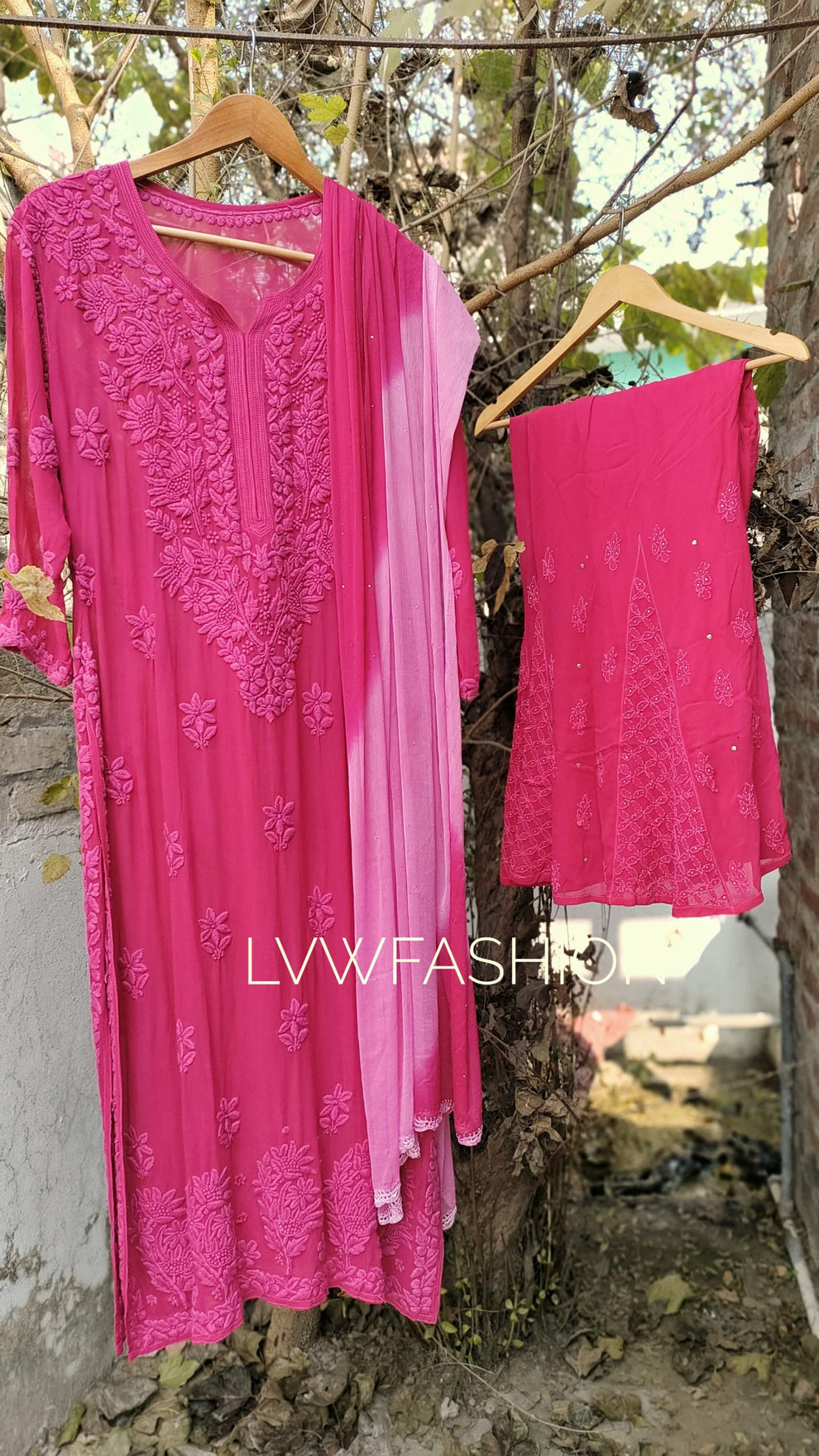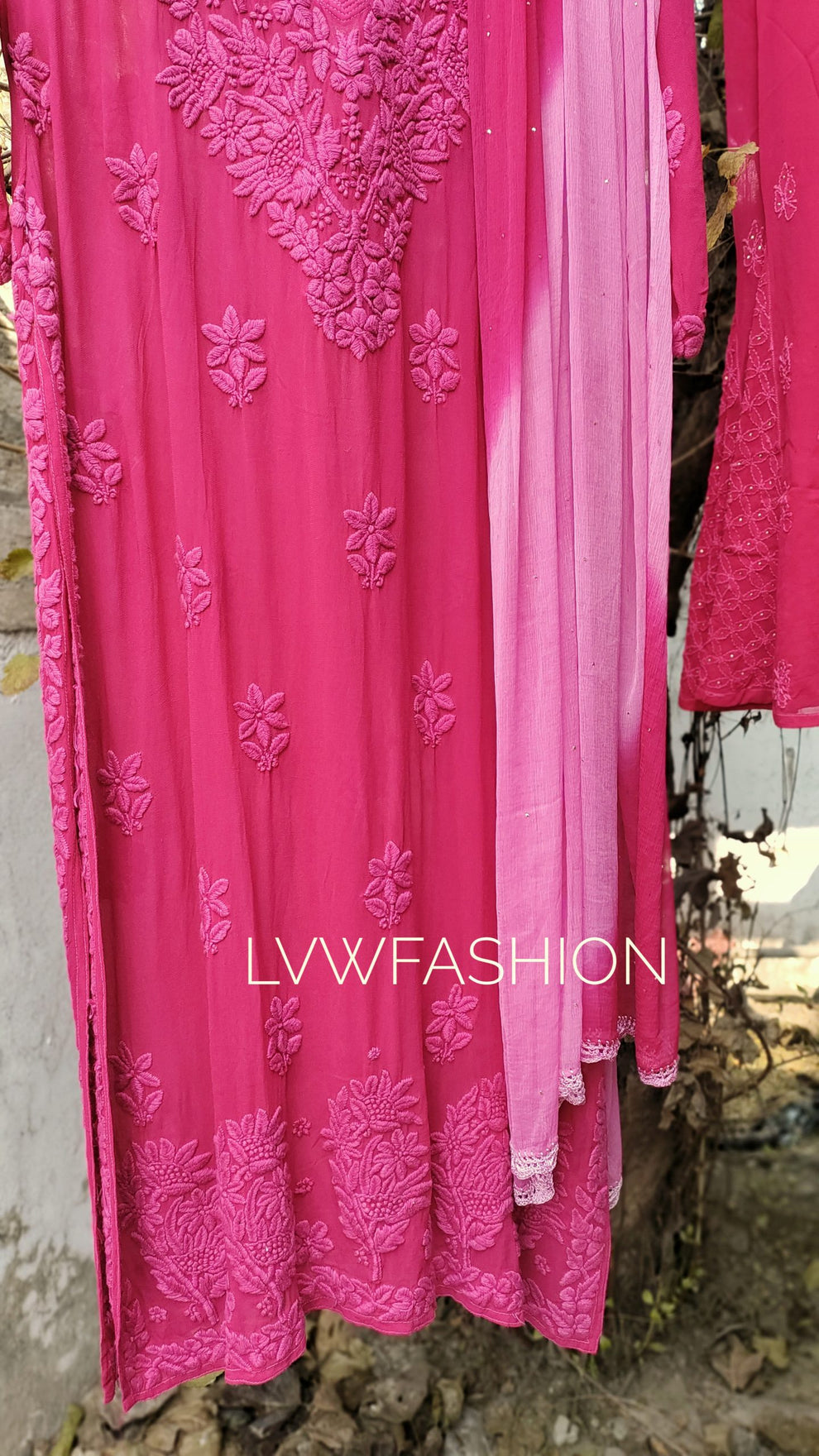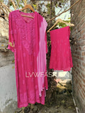 Ombre love Shanaya Premium Georgette Chikankari Long Kurta Neck Daman Embroidery
