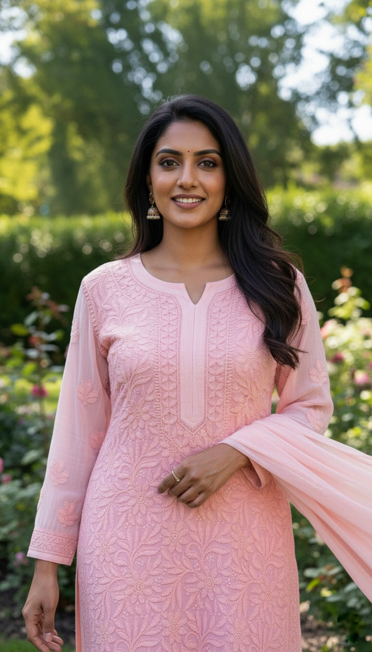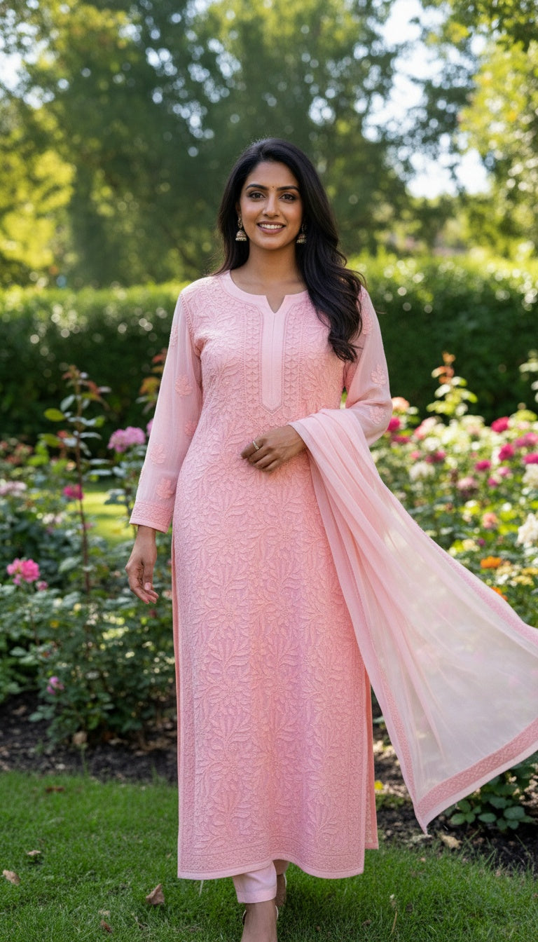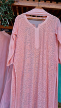 Peach Beautiful Premium Georgette Chikankari Kurta Set (embroidered Dupatta)