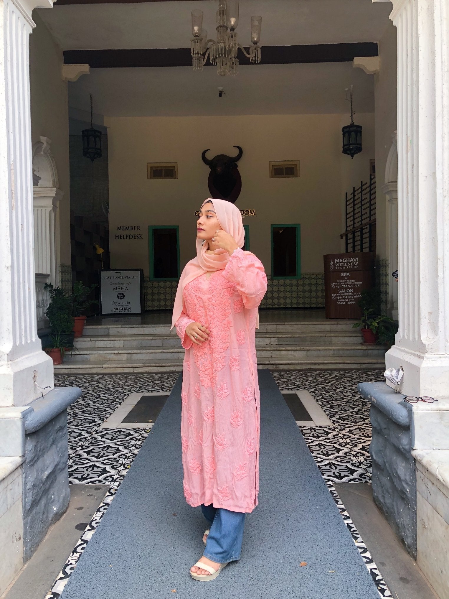 Peaches Peach Premium Soft Shining Silk Long kurta With Inner