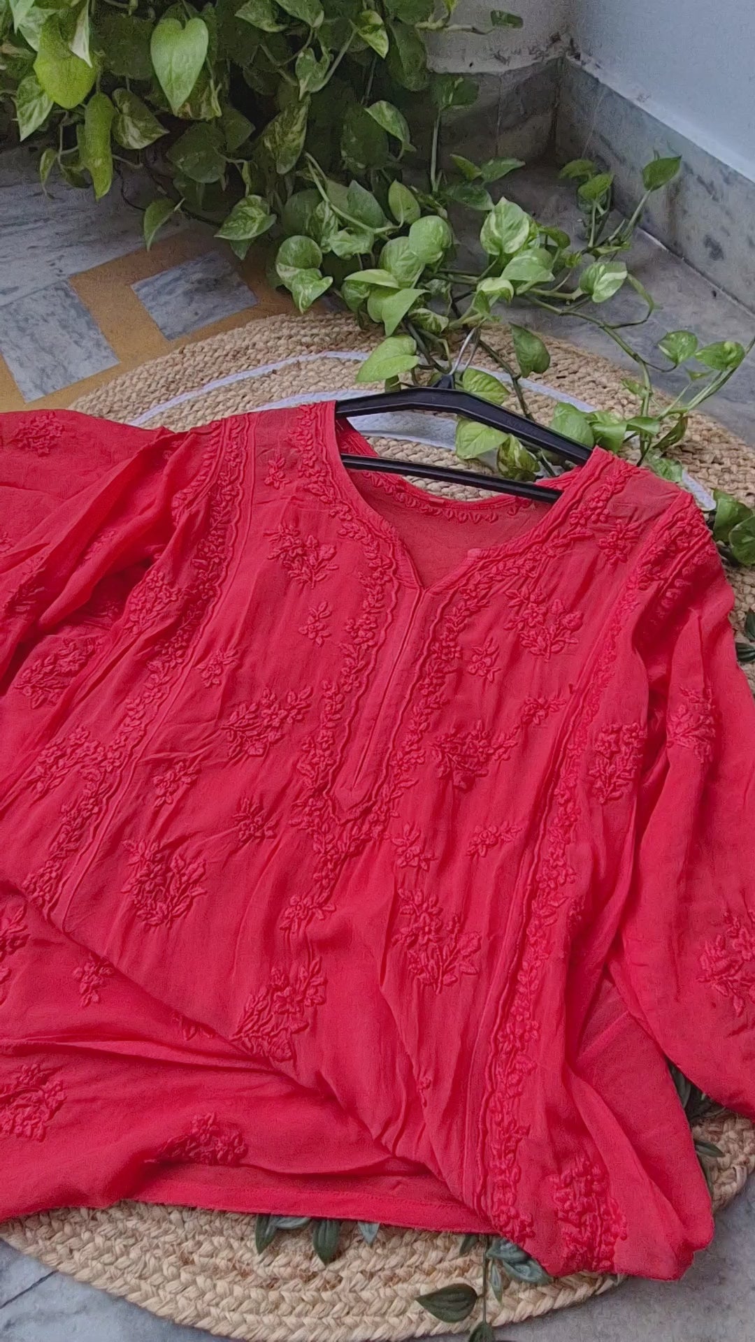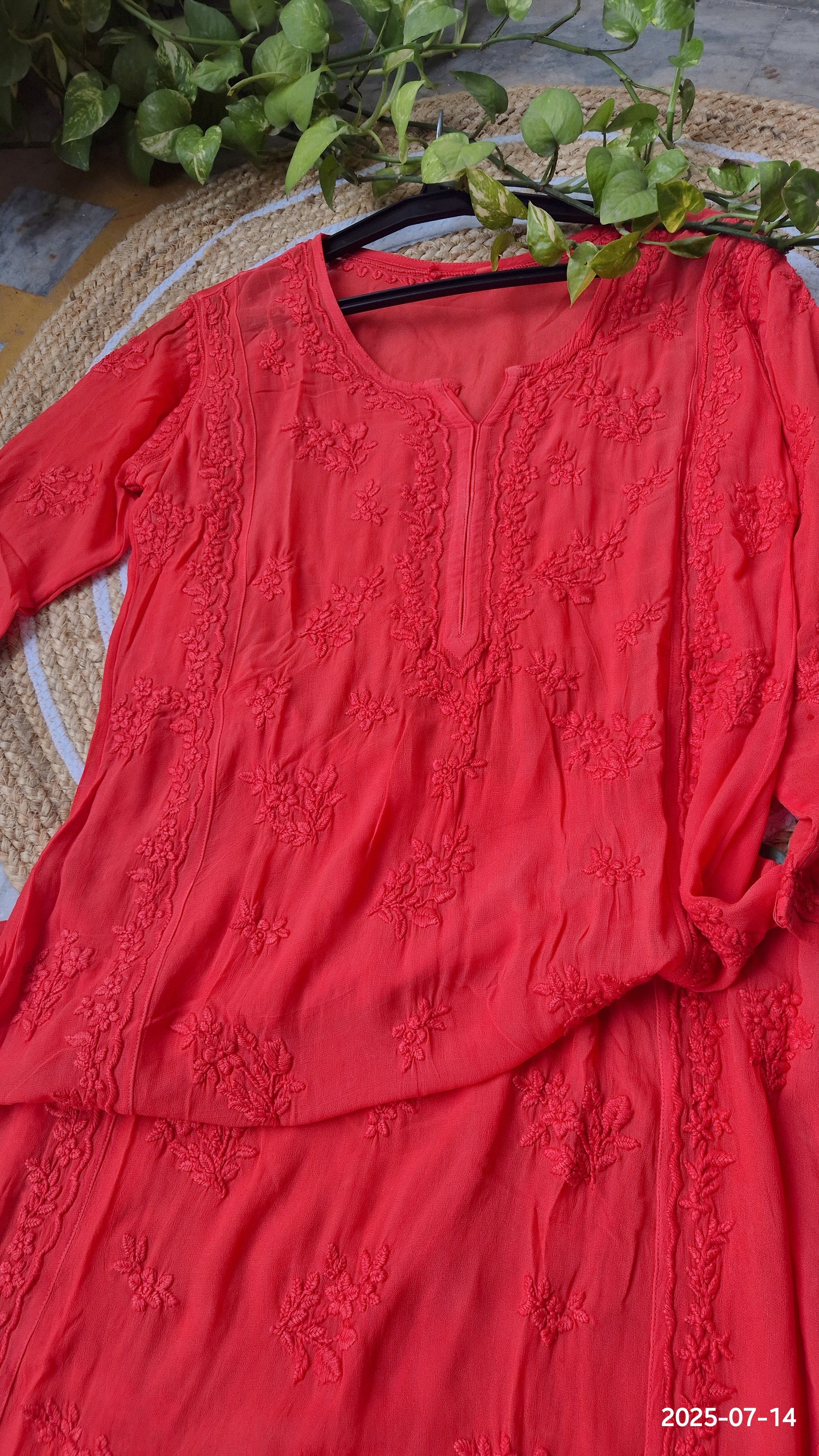 Premium Georgette Chikankari Long Aline Straight Kurti