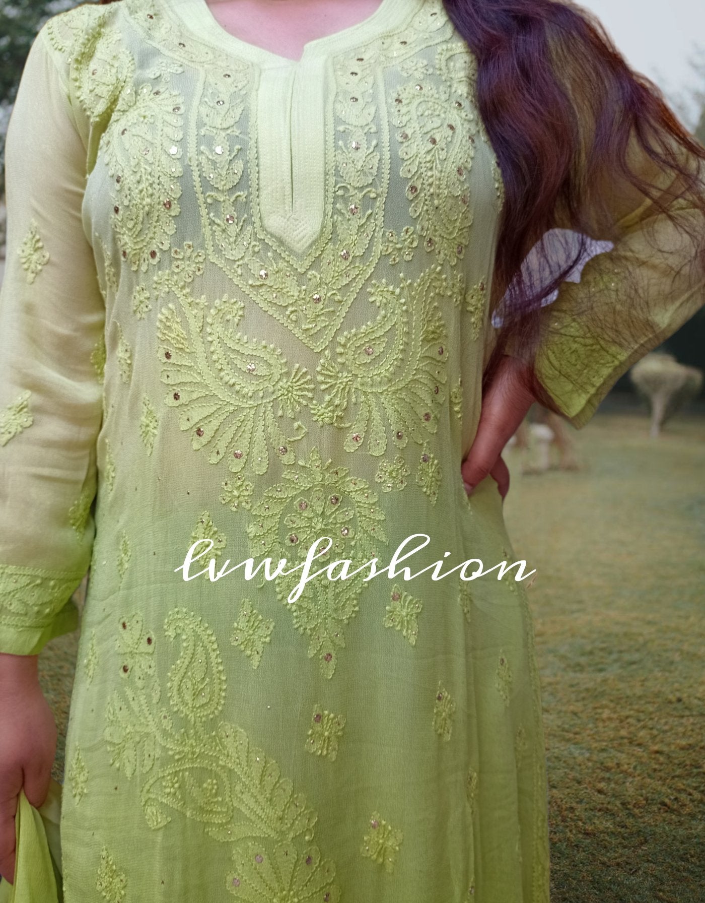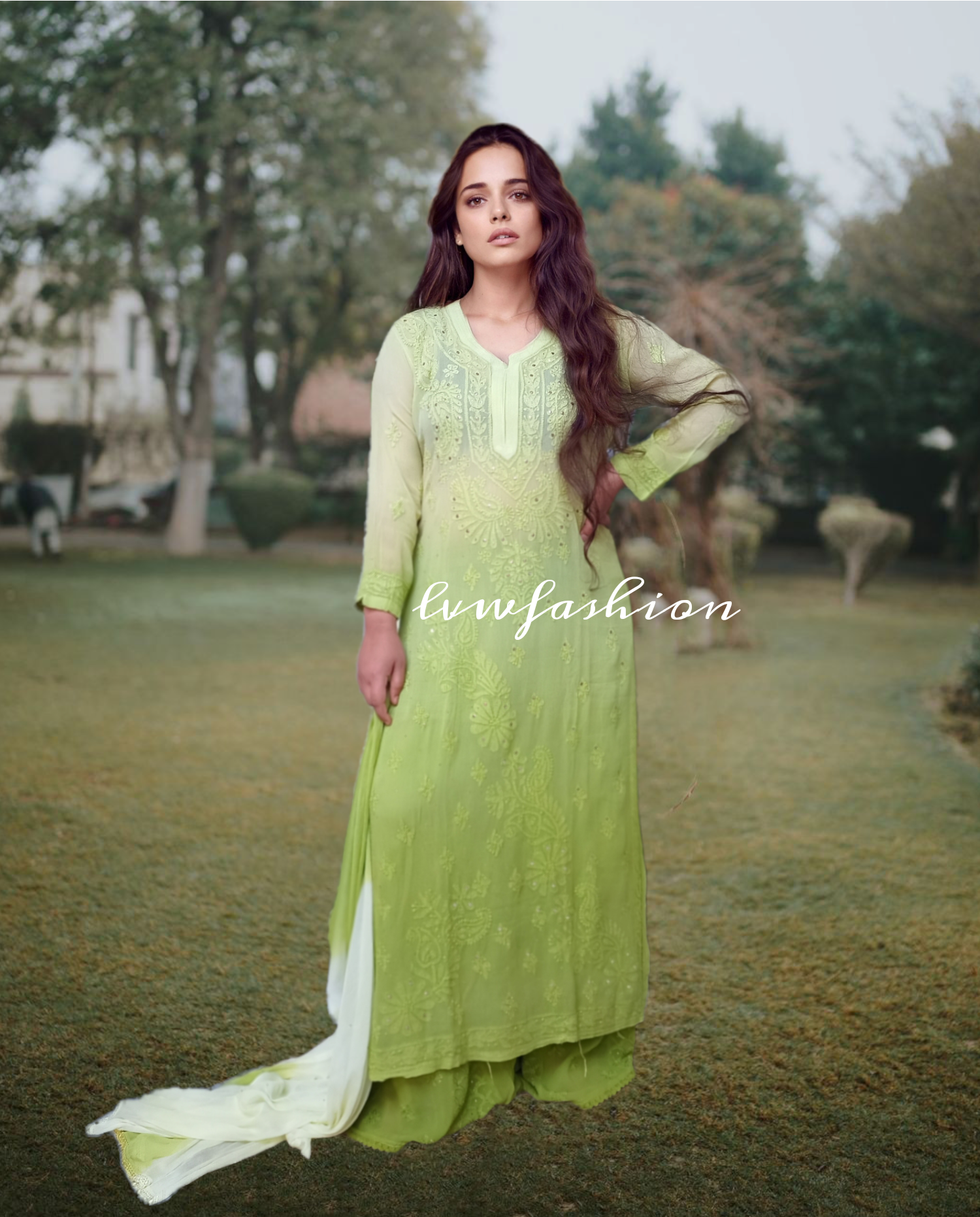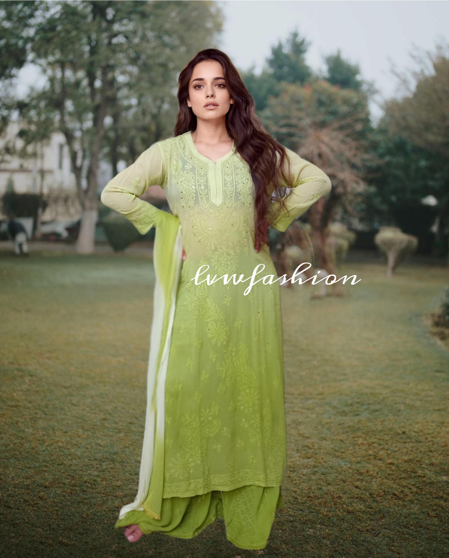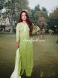 Chaand Eid Special Edit Premium Georgette Green Beautiful Look 3 Piece set