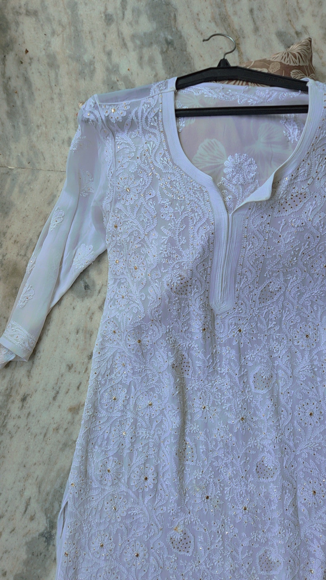 Premium Rich Georgette Chikankari Luxurious Long Kurta with Lots Of Kamdani Add-on