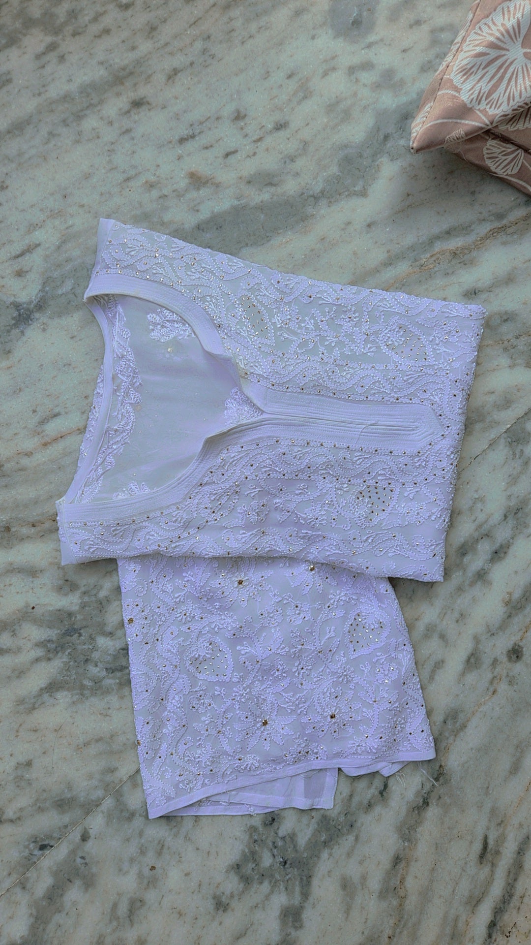 Presenting Premium RICH Georgette Chikankari Pure Handcrafted Embroidery with Lots Of Kamdani Add On On Front back And On Sleeves
