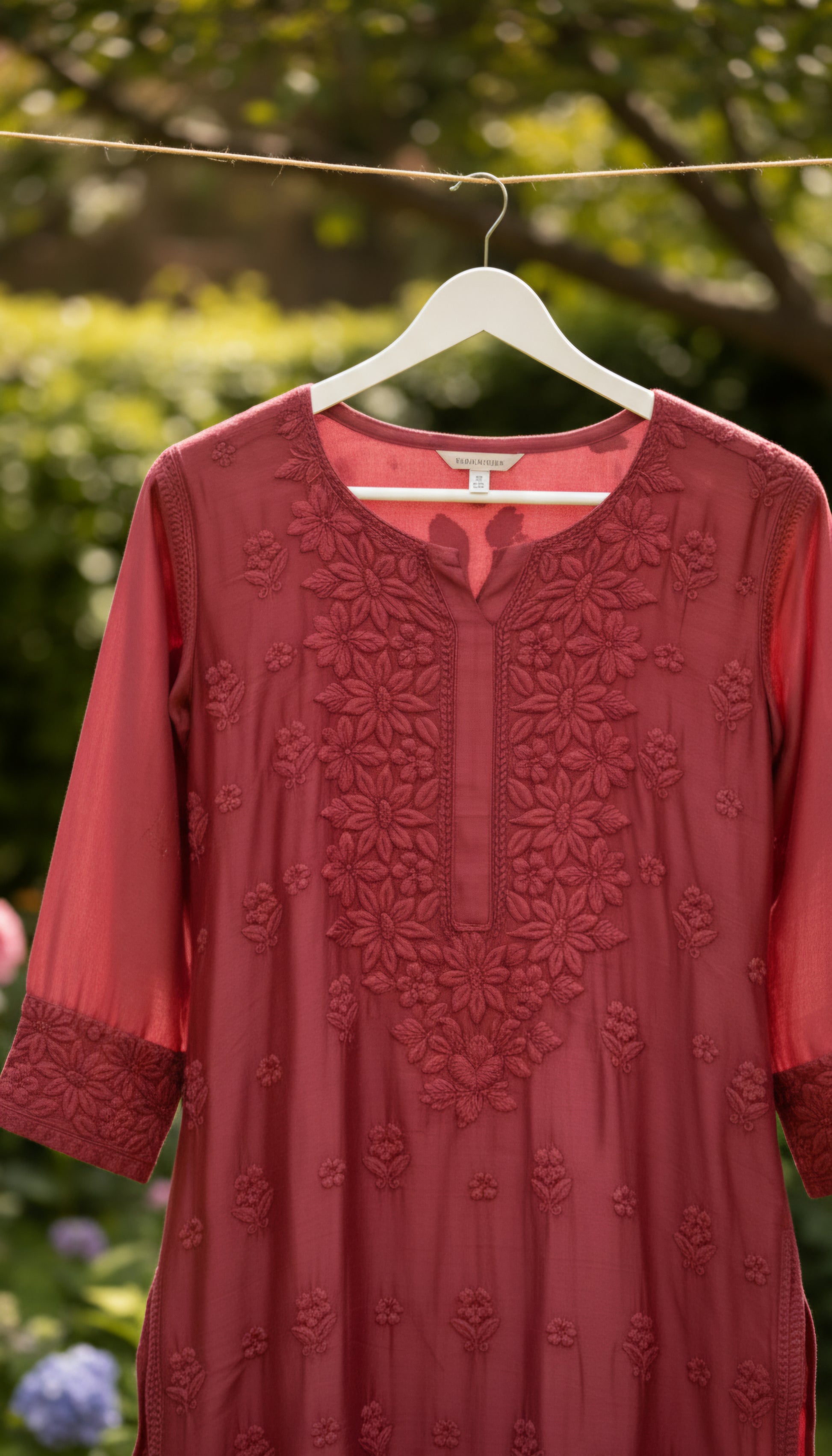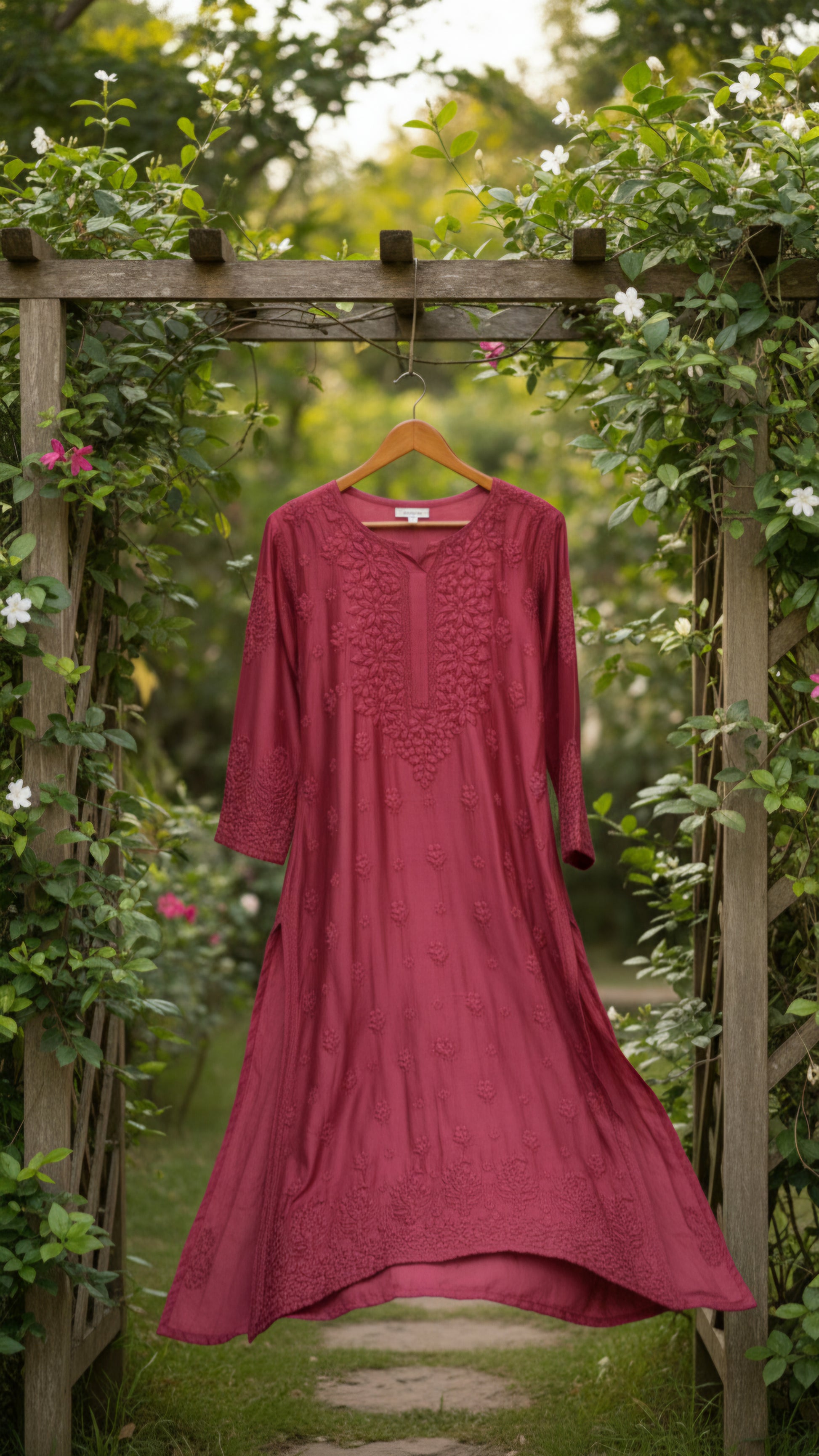 Salmon pink Heavy Pure Handcrafted Embroidery Premium Chikankari Kurti set for Women