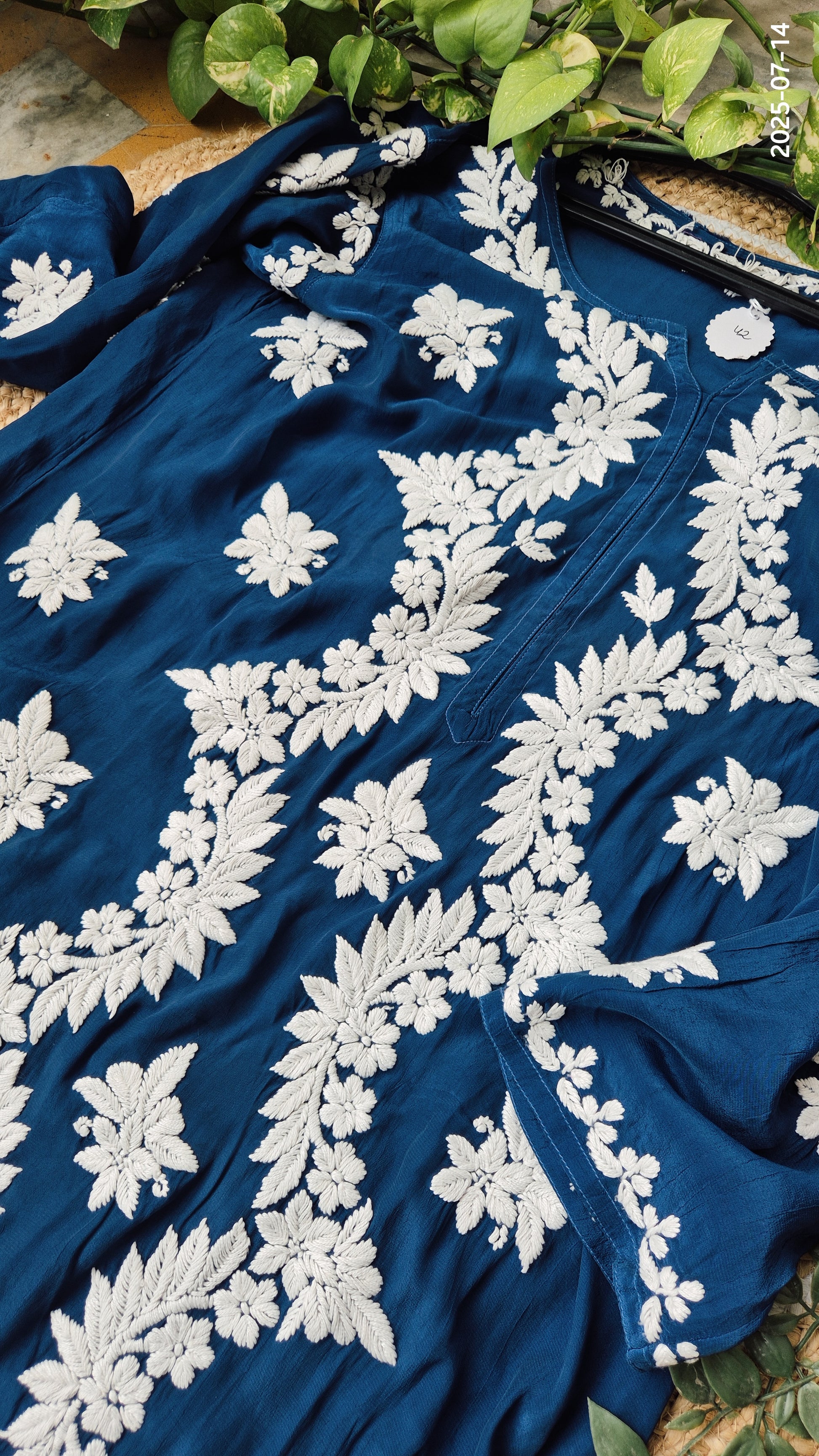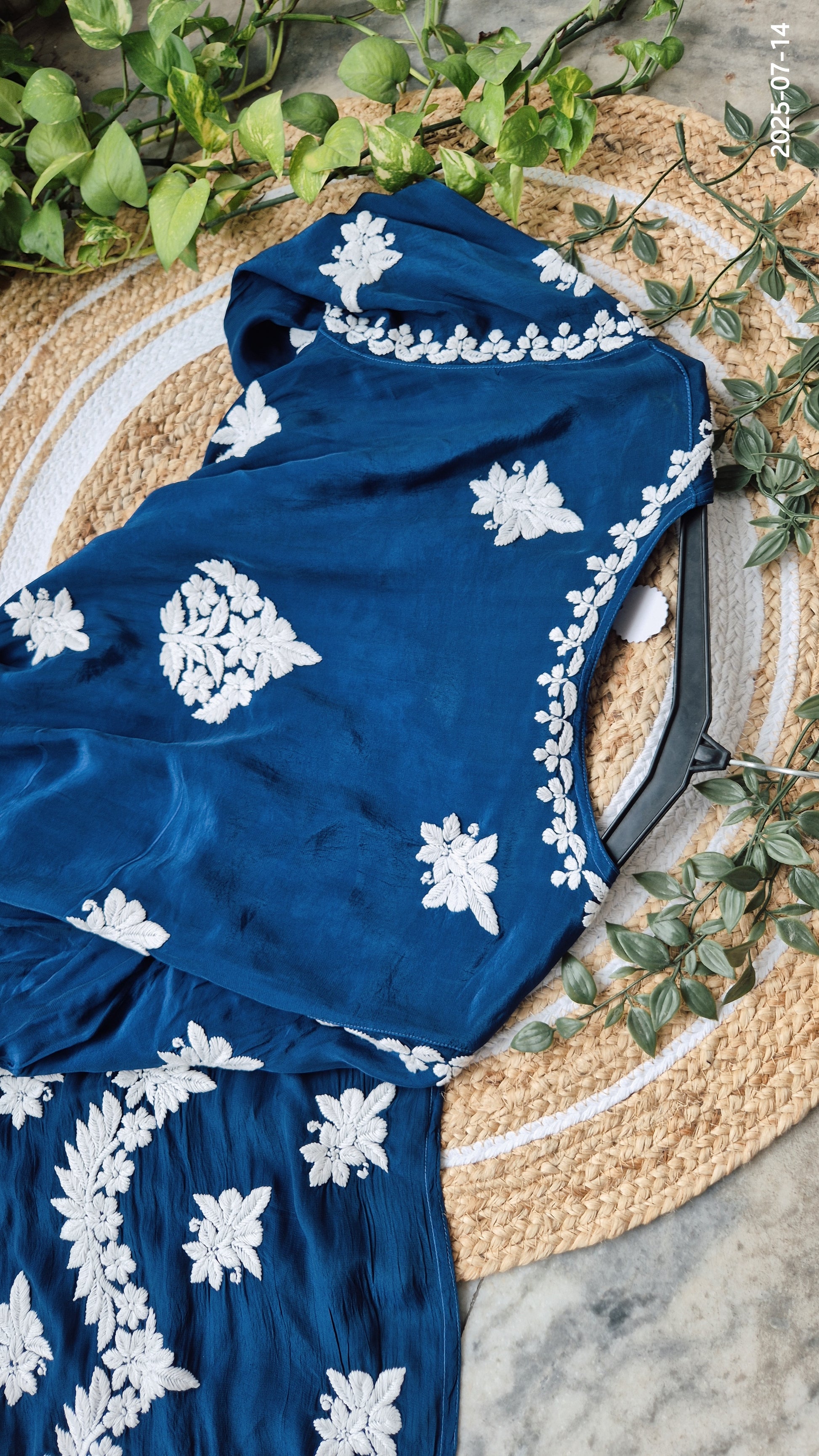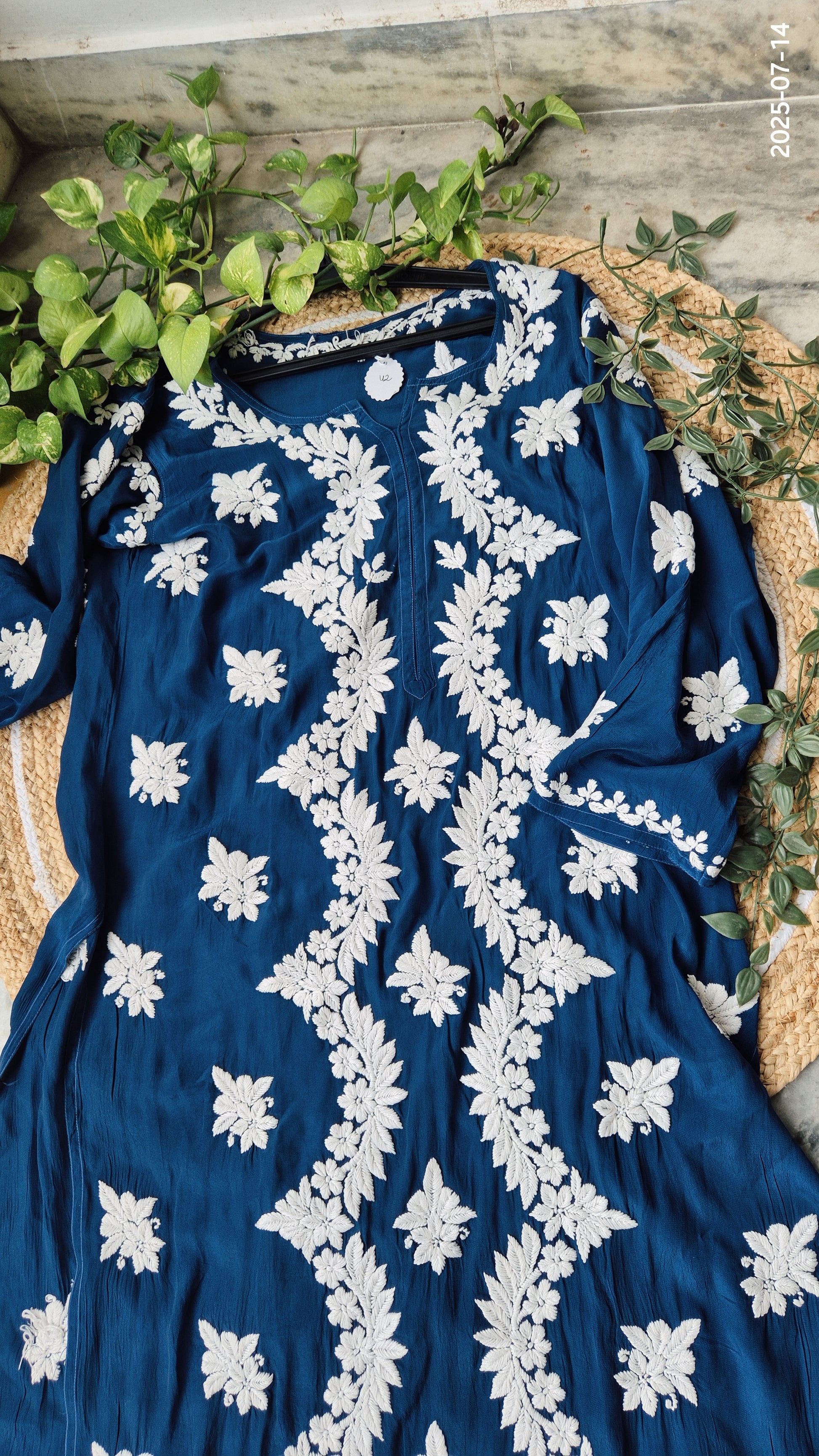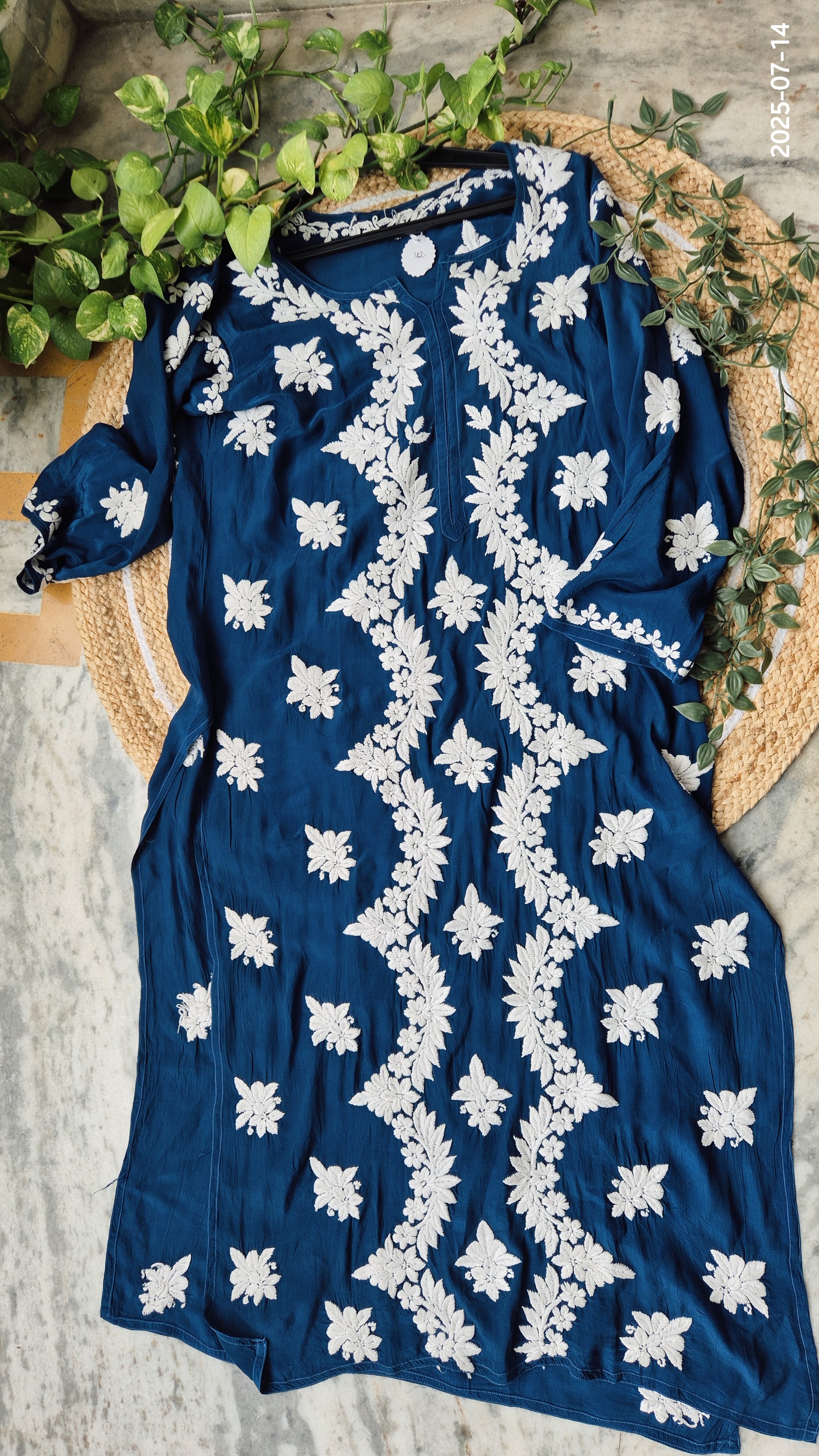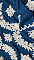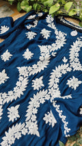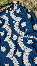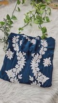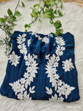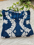 Shine Blue Premium Silk Chikankari Luxurious Long Kurti For women