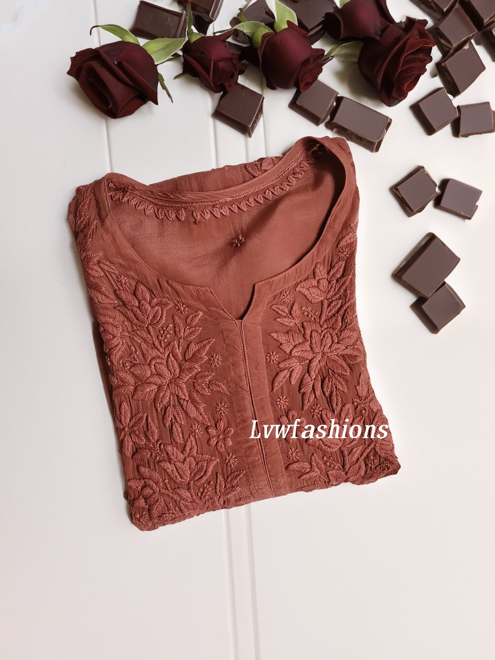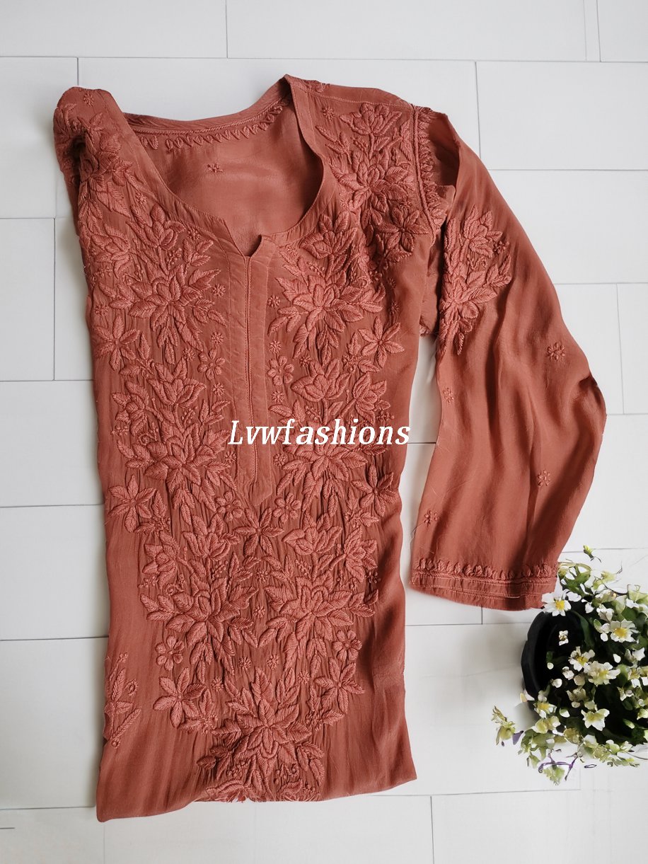Mahira Silk Chocolate Premium Silk Chikankari Kurti With Inner