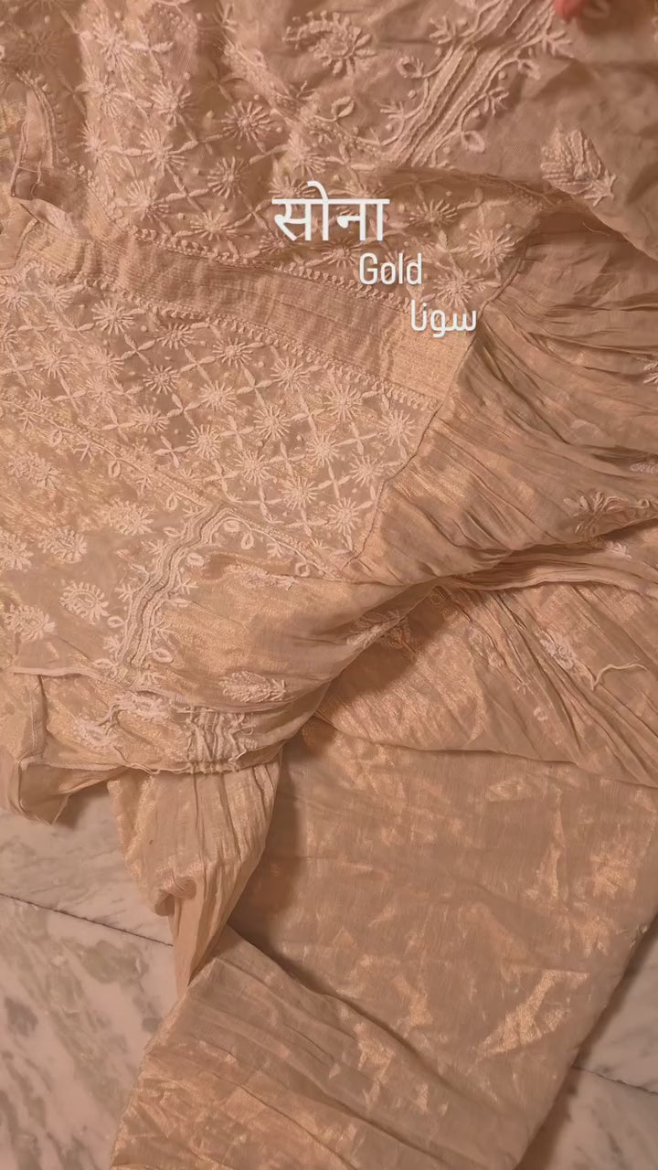 Sona Golden Premium Chanderi hikankari Kurta Dupatta Set