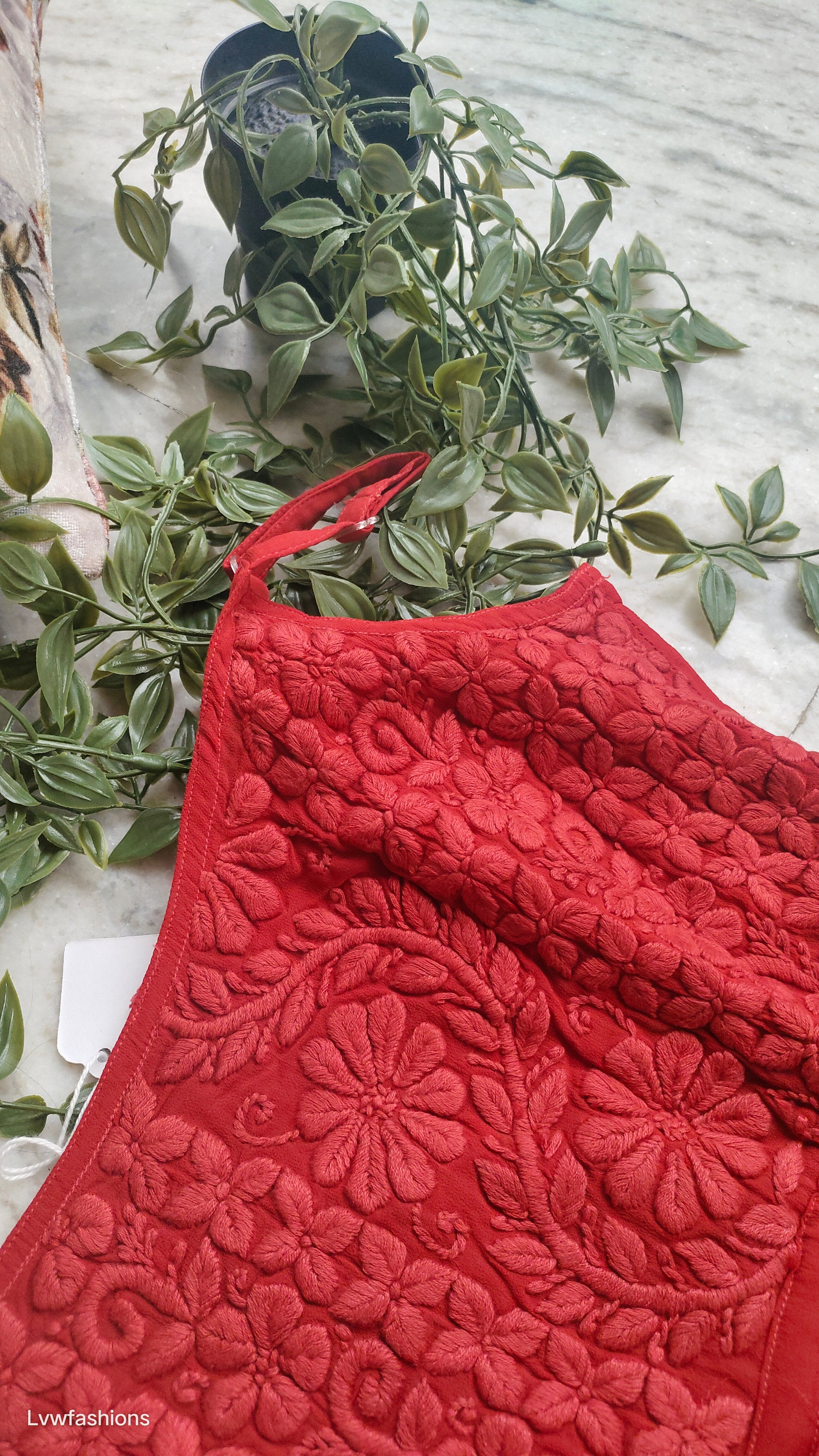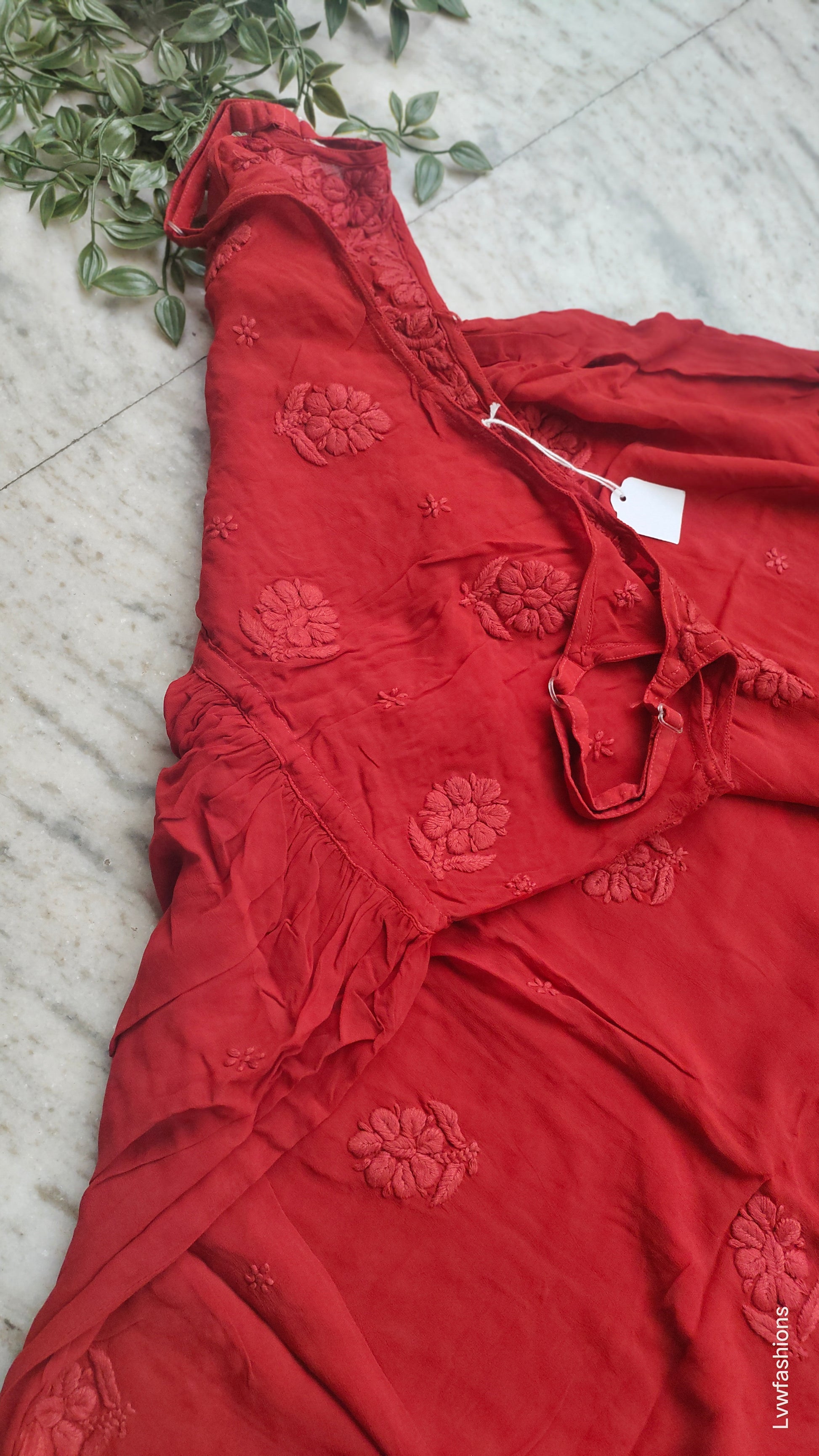 Introducing our Tulip cherry Red Premium Georgette Luxurious Look Tunic! This Chikankari kurti set for women features a beautifully crafted Lucknowi kurta, made with premium fabric and pure handmade details. Plus, enjoy the convenience of COD and free shipping within India, with worldwide shipping available. Elevate your style with our tunic set now!