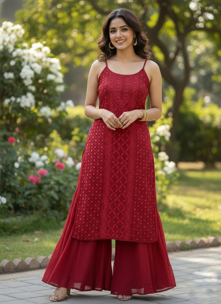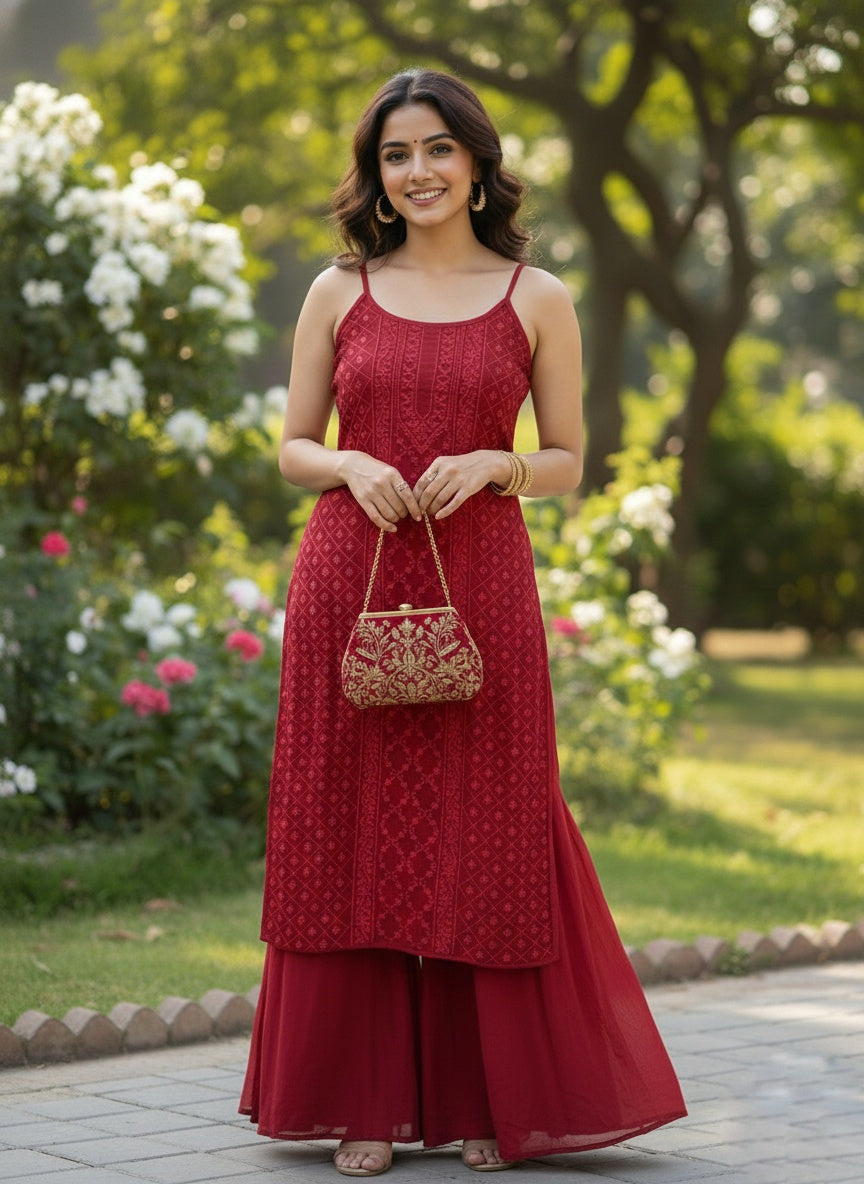 Tulip Straps Premium Georgette Pure Handcrafted Front Heavy Work Tunic