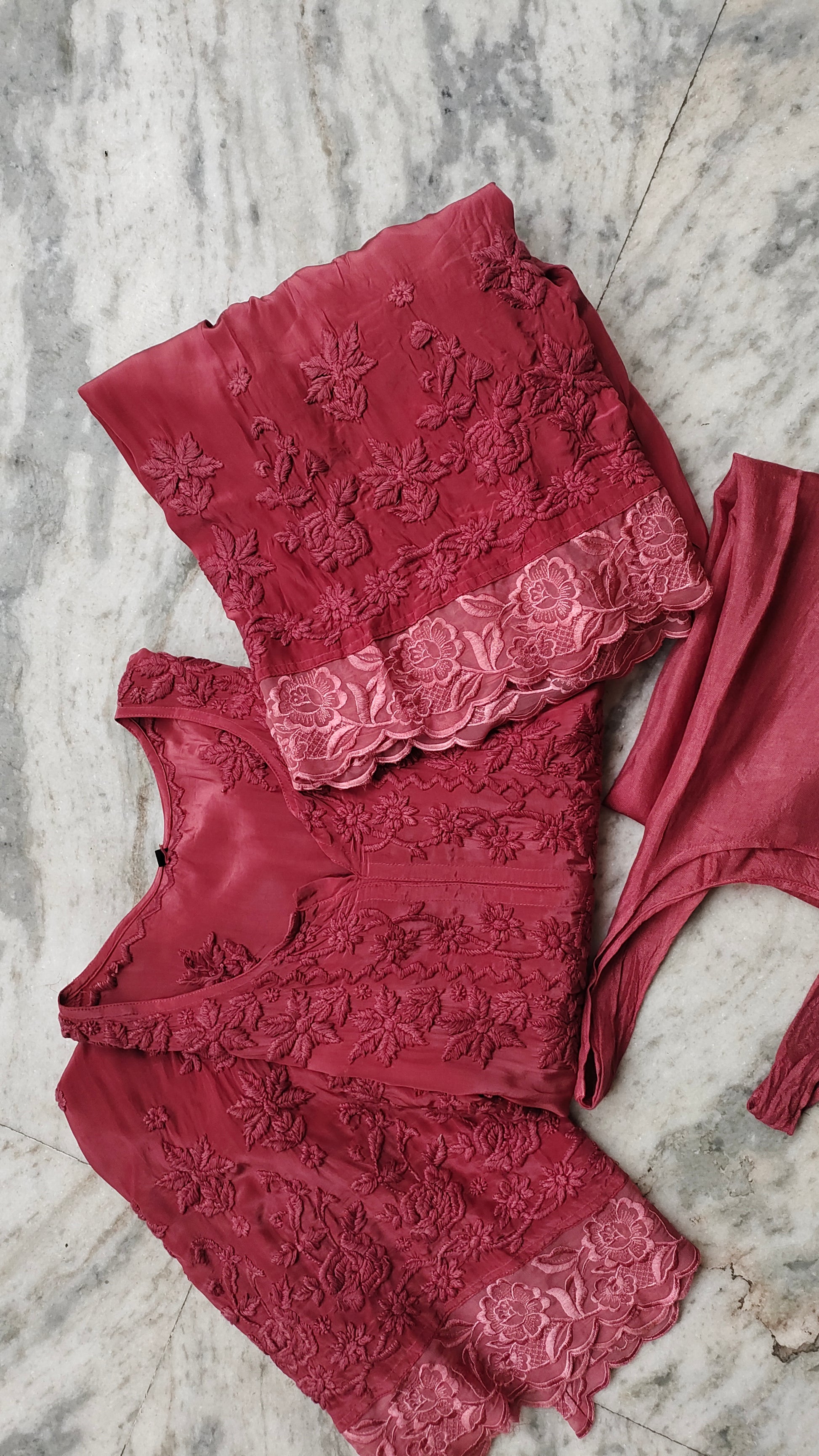 Elevate your special day with our Limited Edition Adaya Rose Wedding Luxurious Collection. Made from premium silk, this co-ord set is handcrafted with special rose embroidery and lace details for a truly luxurious and unique look. Own a piece of elegance with this must-have set.